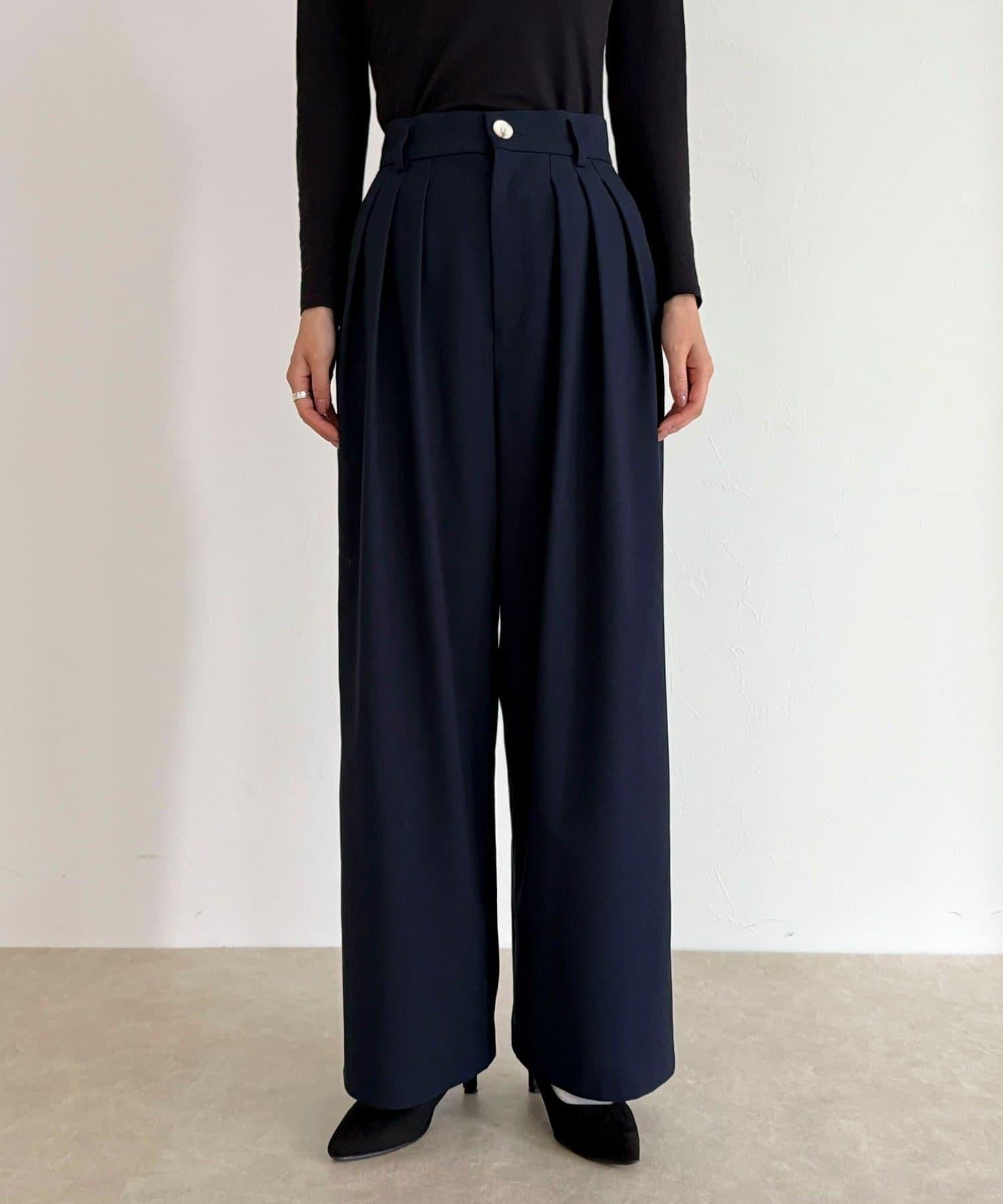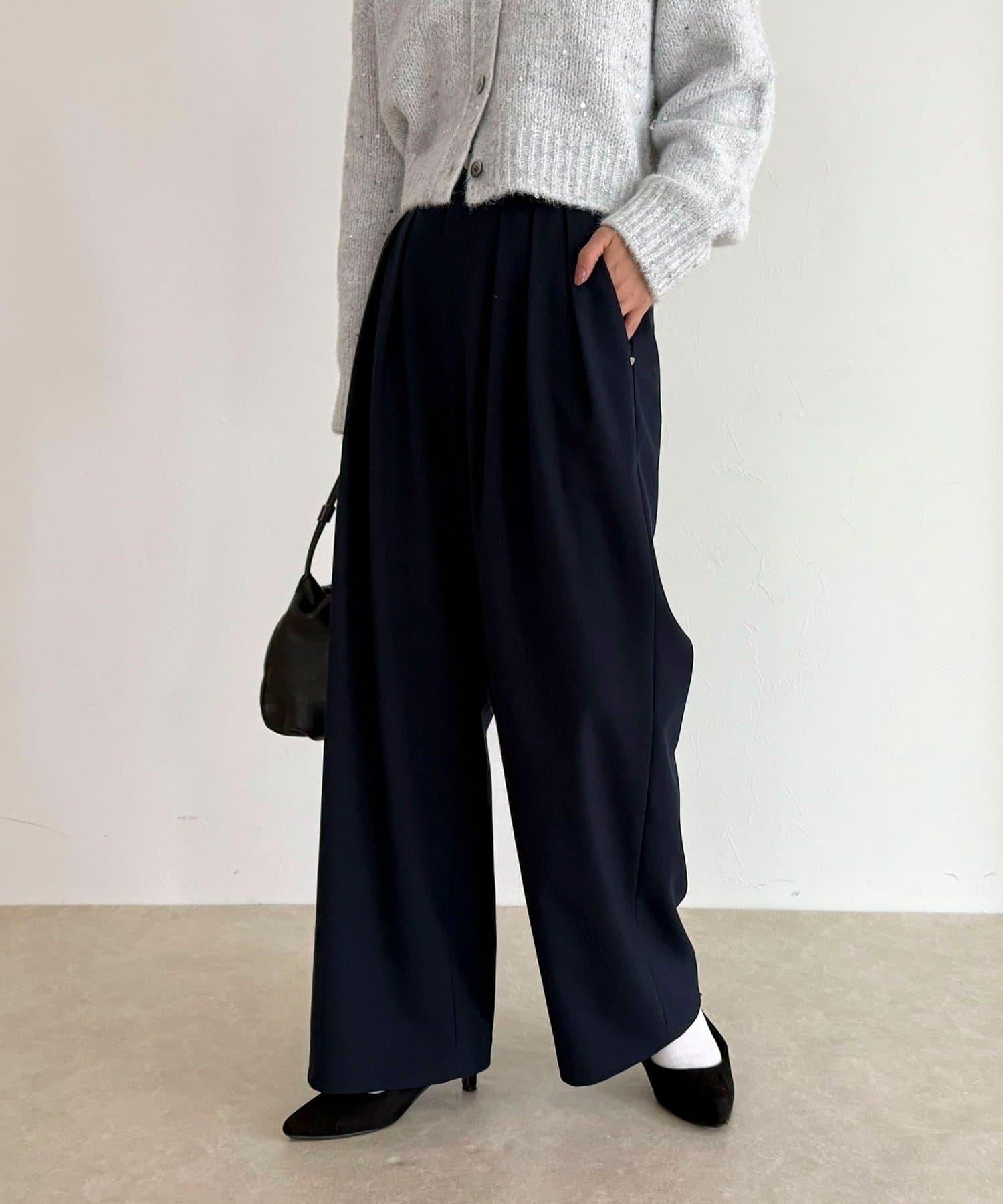 三個收腰設計讓腰部看起來很整潔,即使是寬大的褲子也給人一種優雅的印象,不會顯得慵懶。