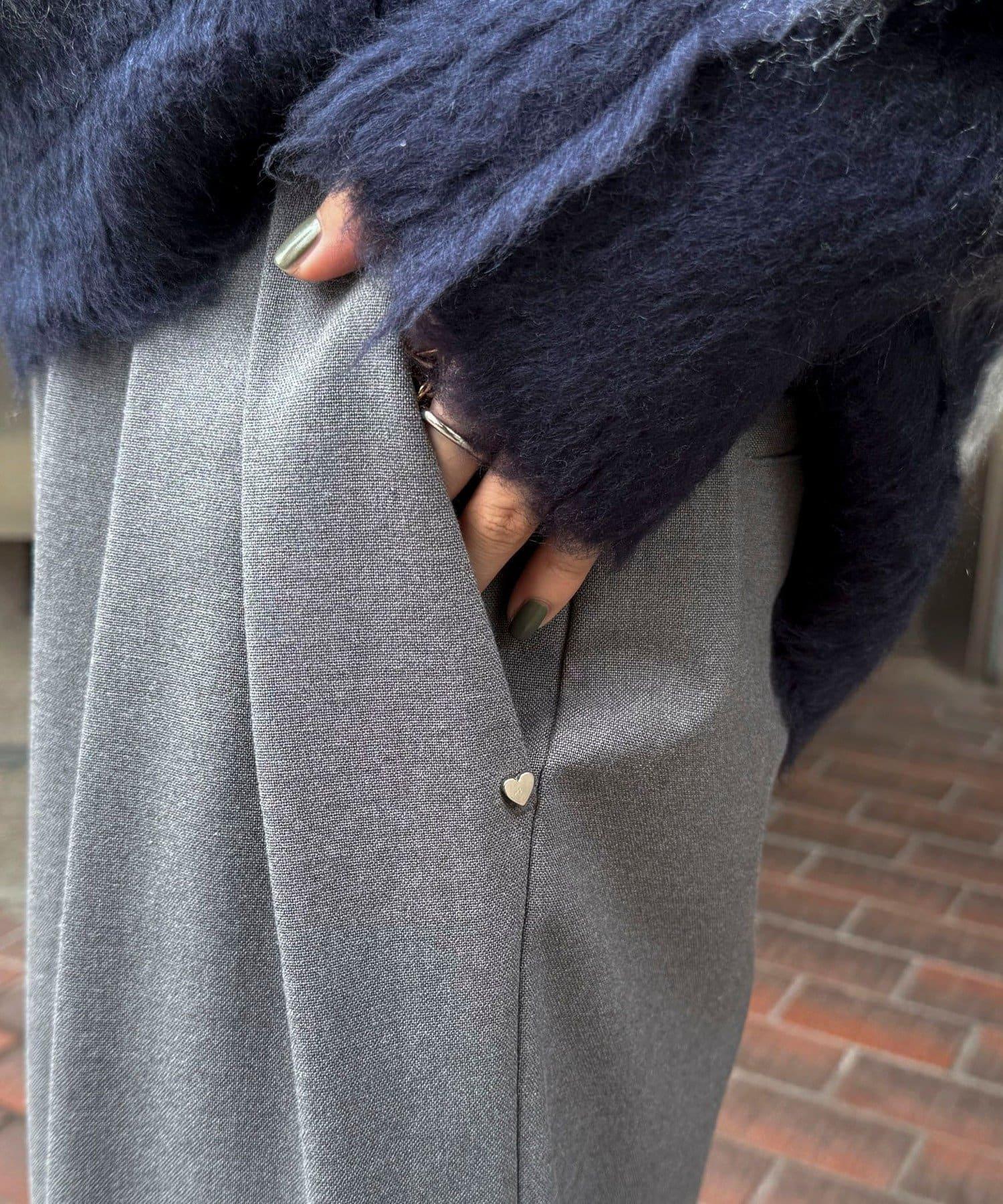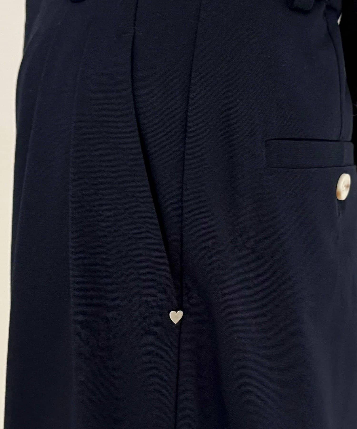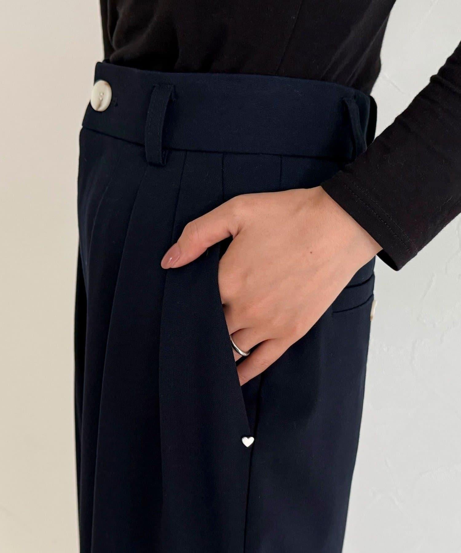 三襉寬鬆長褲,飾有精緻的心形鉚釘點。