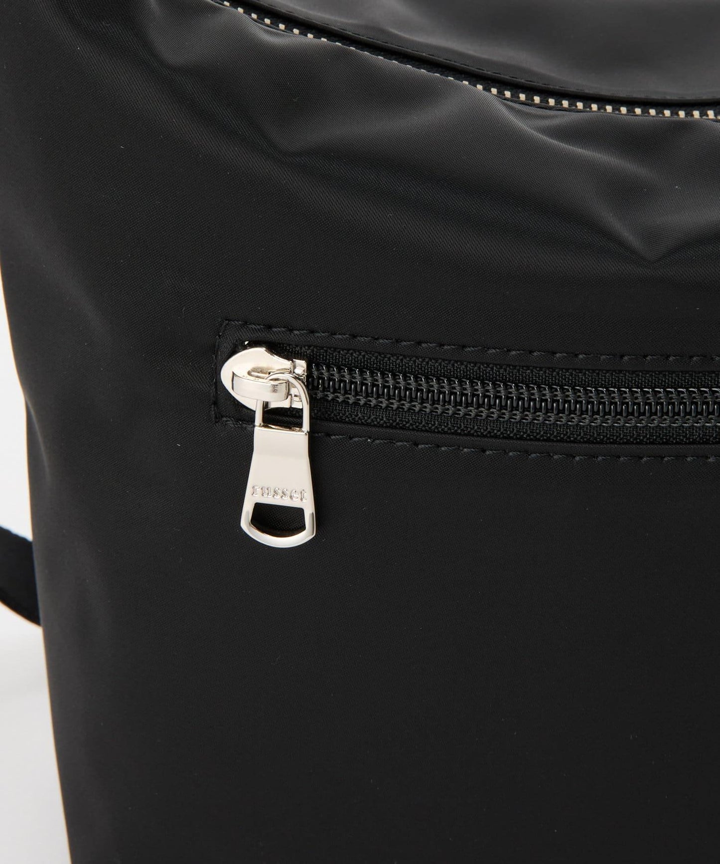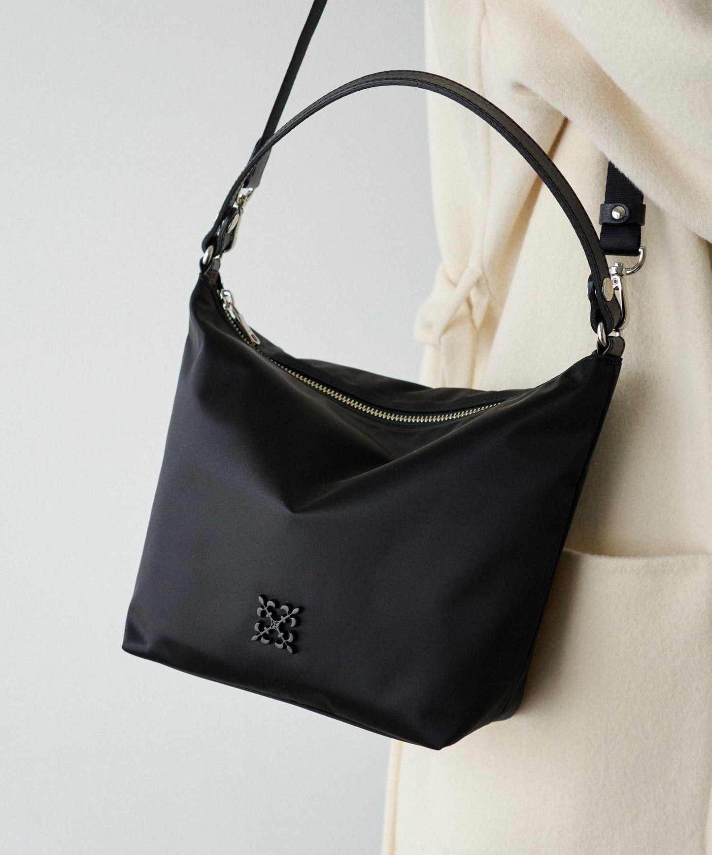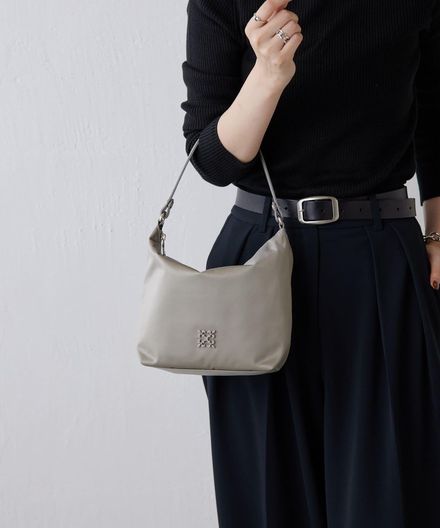 短皮質腰帶也可掛在肩上,即使背在肩上也能展現出整潔的輪廓。