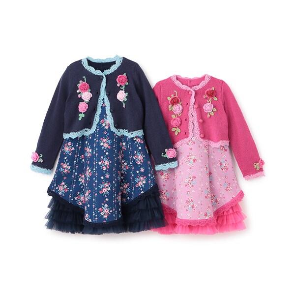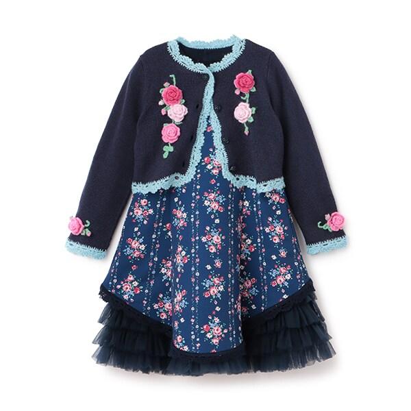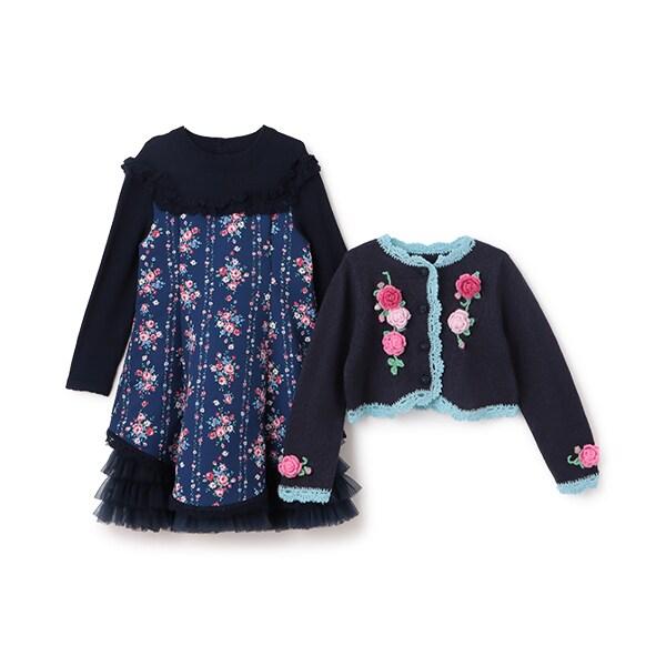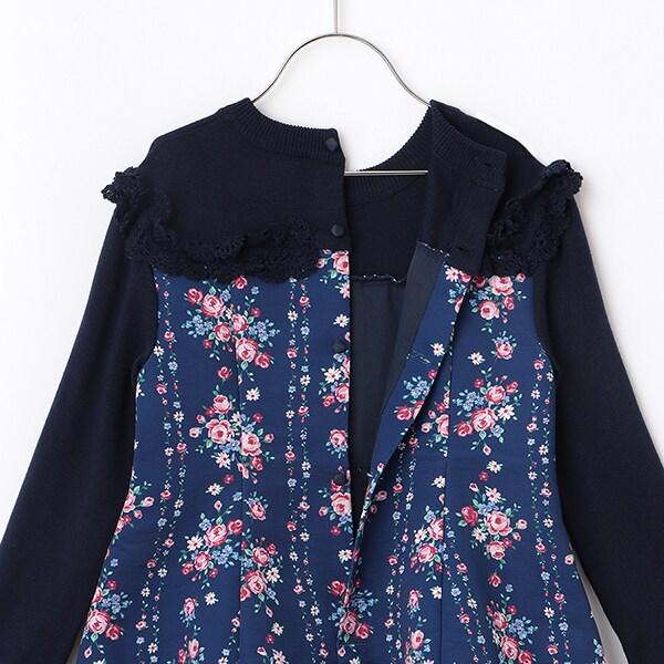 35週年玫瑰花紋拼接連衣裙&小外套套裝