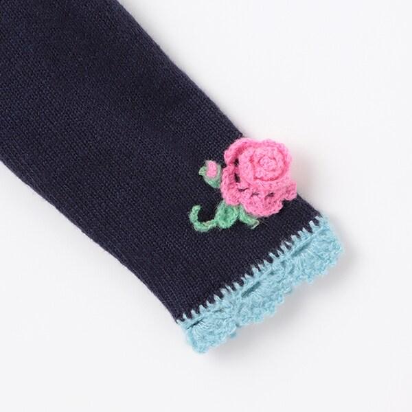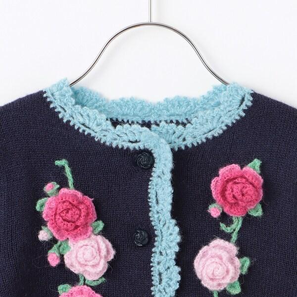 開襟羊毛衫上的立體玫瑰圖案別具一格,每朵玫瑰均由工匠手工編織而成。