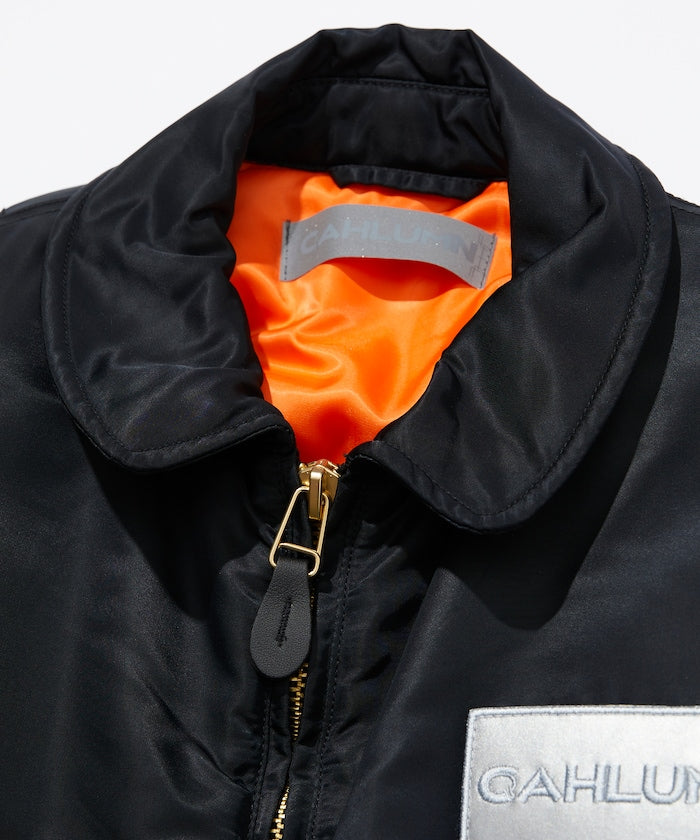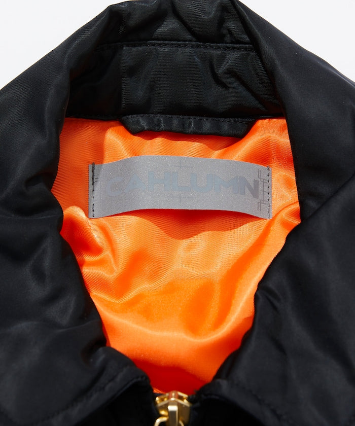 <CWU-45P特別版,帶有CAHLUMN標誌的反光貼,由<Laugh and Sunnyday>刺繡,採用3M反光帶材料製成,可在大入射角度下提供高反射率,經得起多次硬質清洗。它還能經受多次水洗。