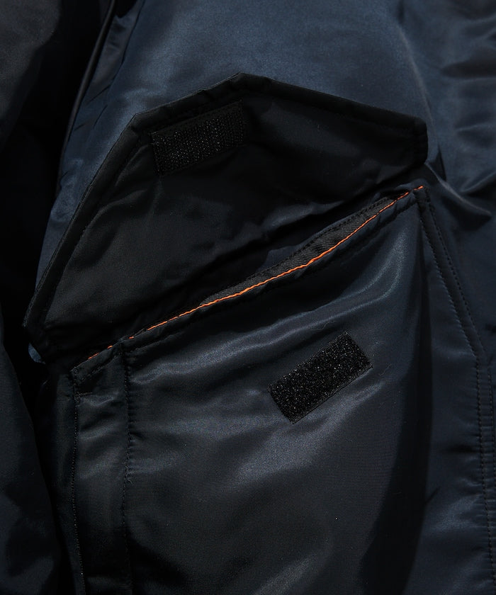 它與 MA-1 類似,但有領子。它的輪廓也比軍隊中使用的真品更大,更容易作為街頭服裝穿著。
