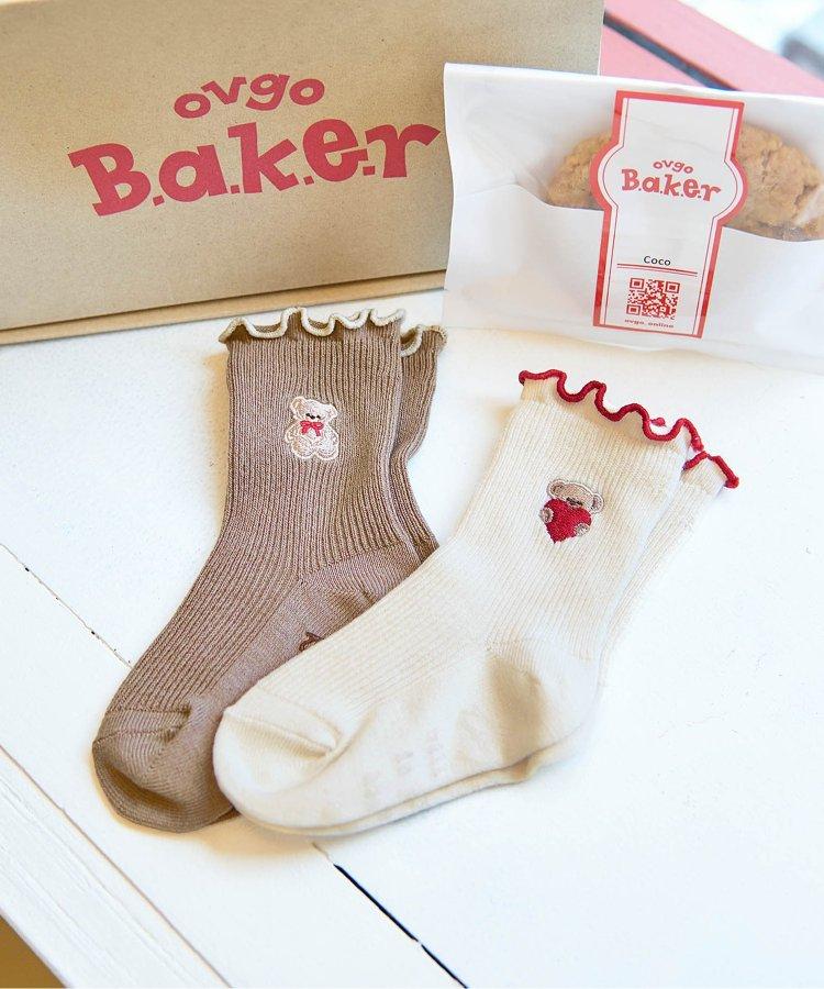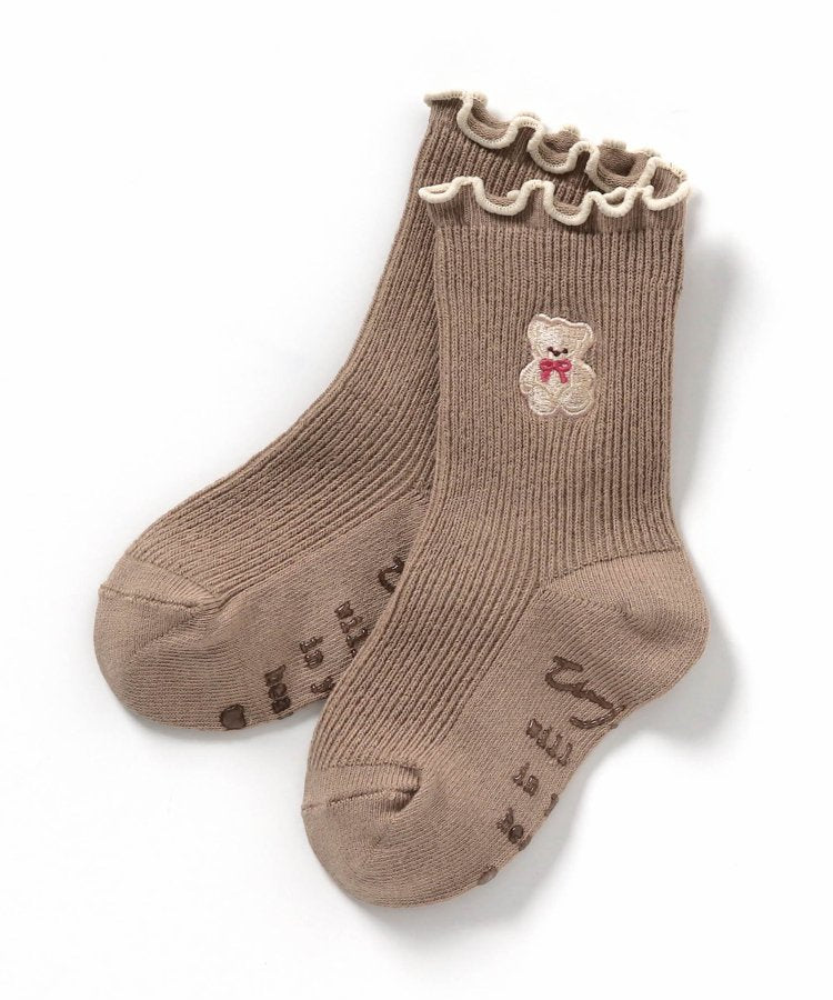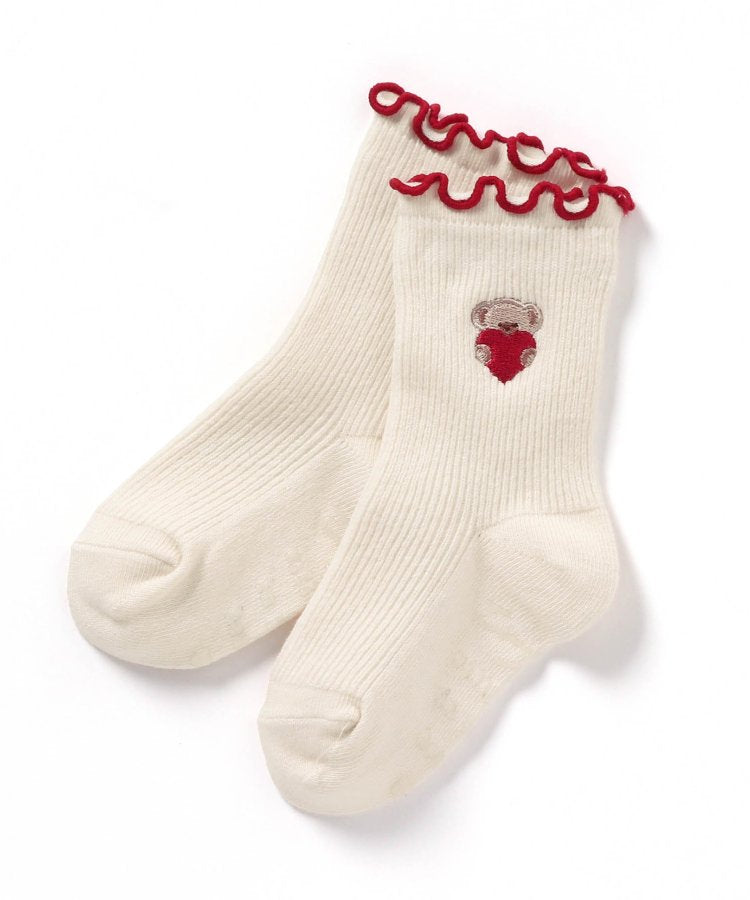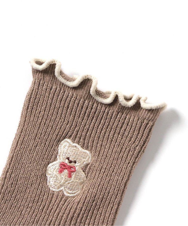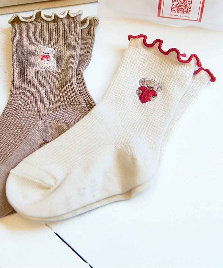 可愛的襪子上有流蘇設計和可愛的小熊刺繡。