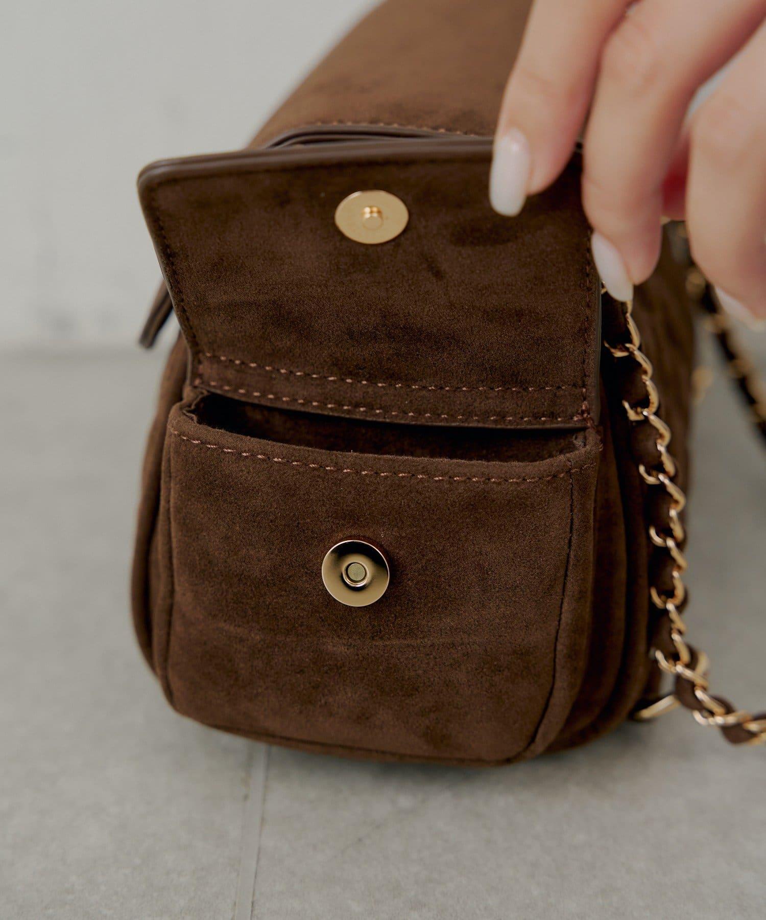 這款手袋採用優雅的絎縫設計,外形圓潤。