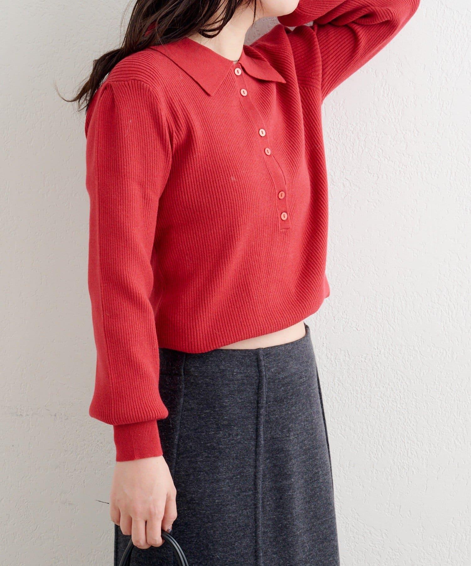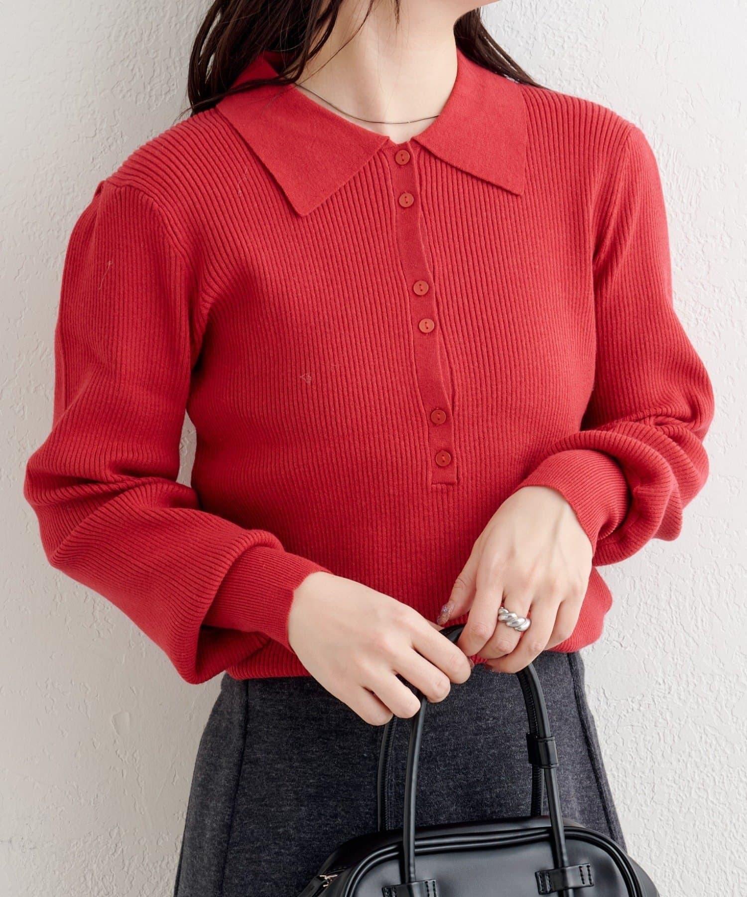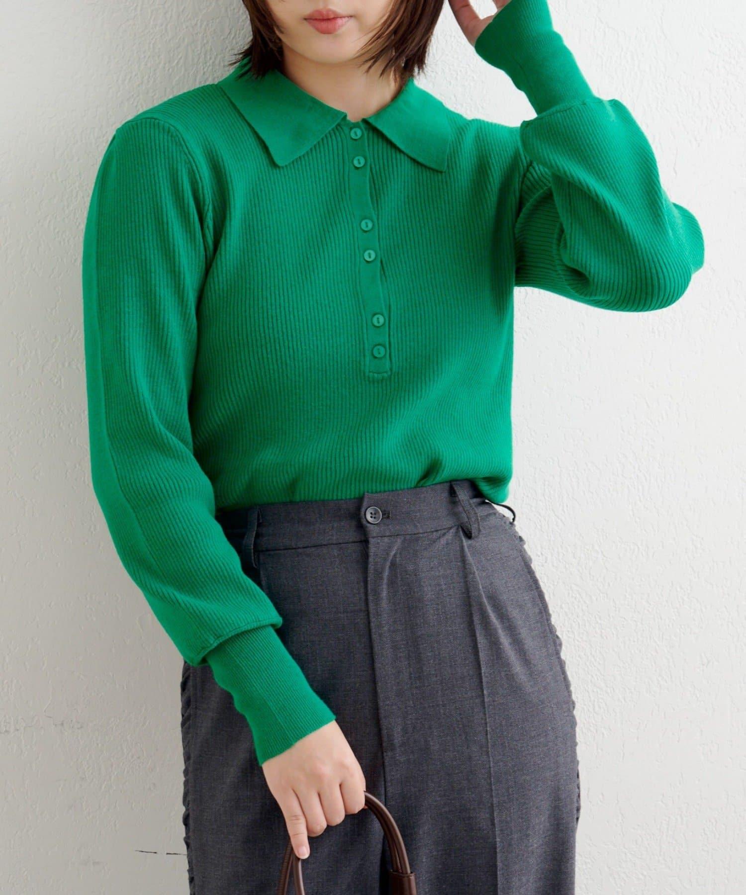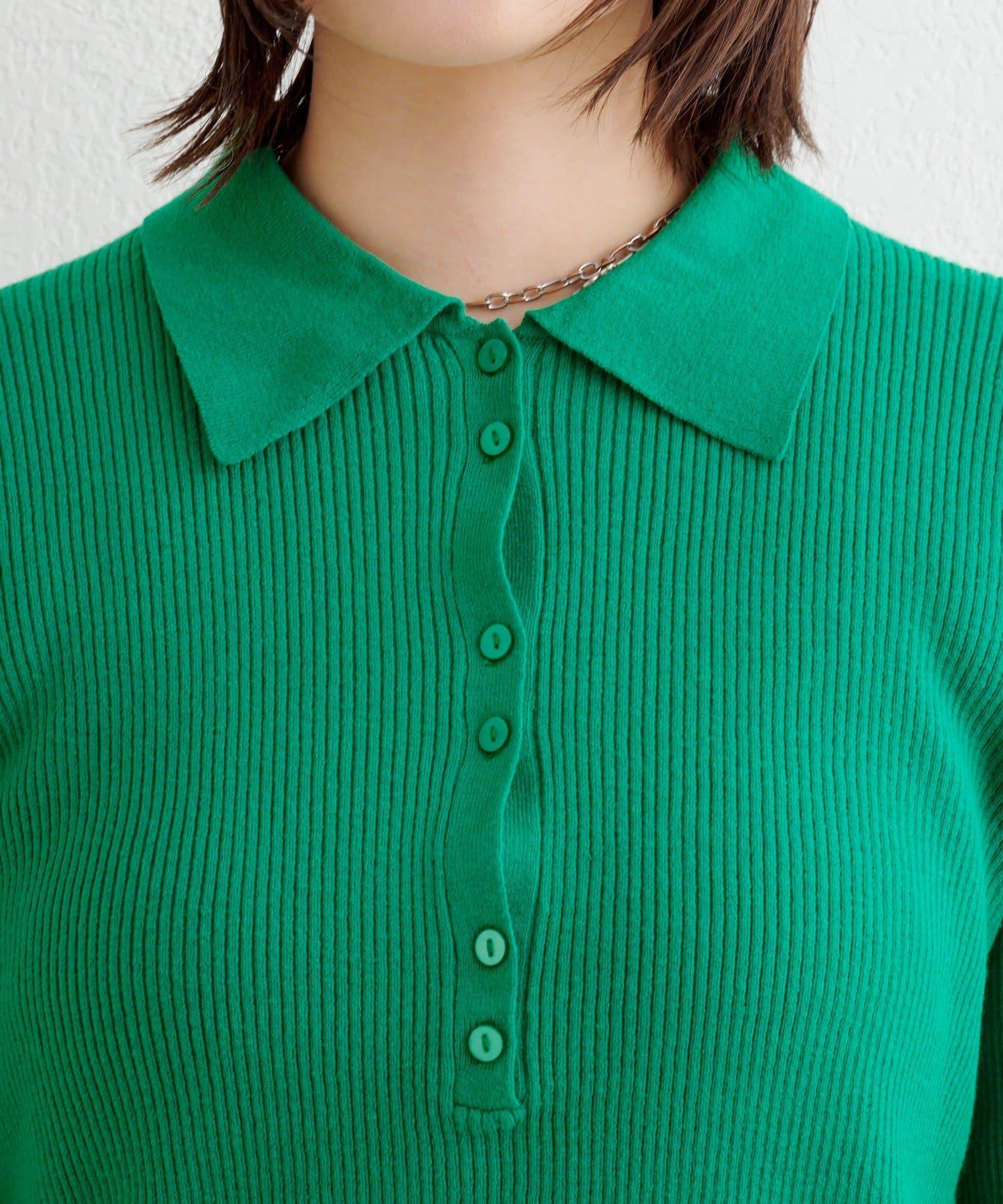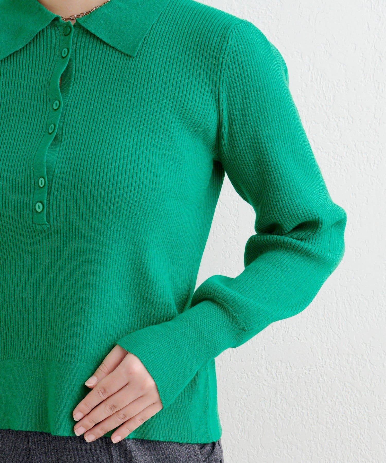 基本款羅紋針織 polo,優雅的衣領設計引人注目。