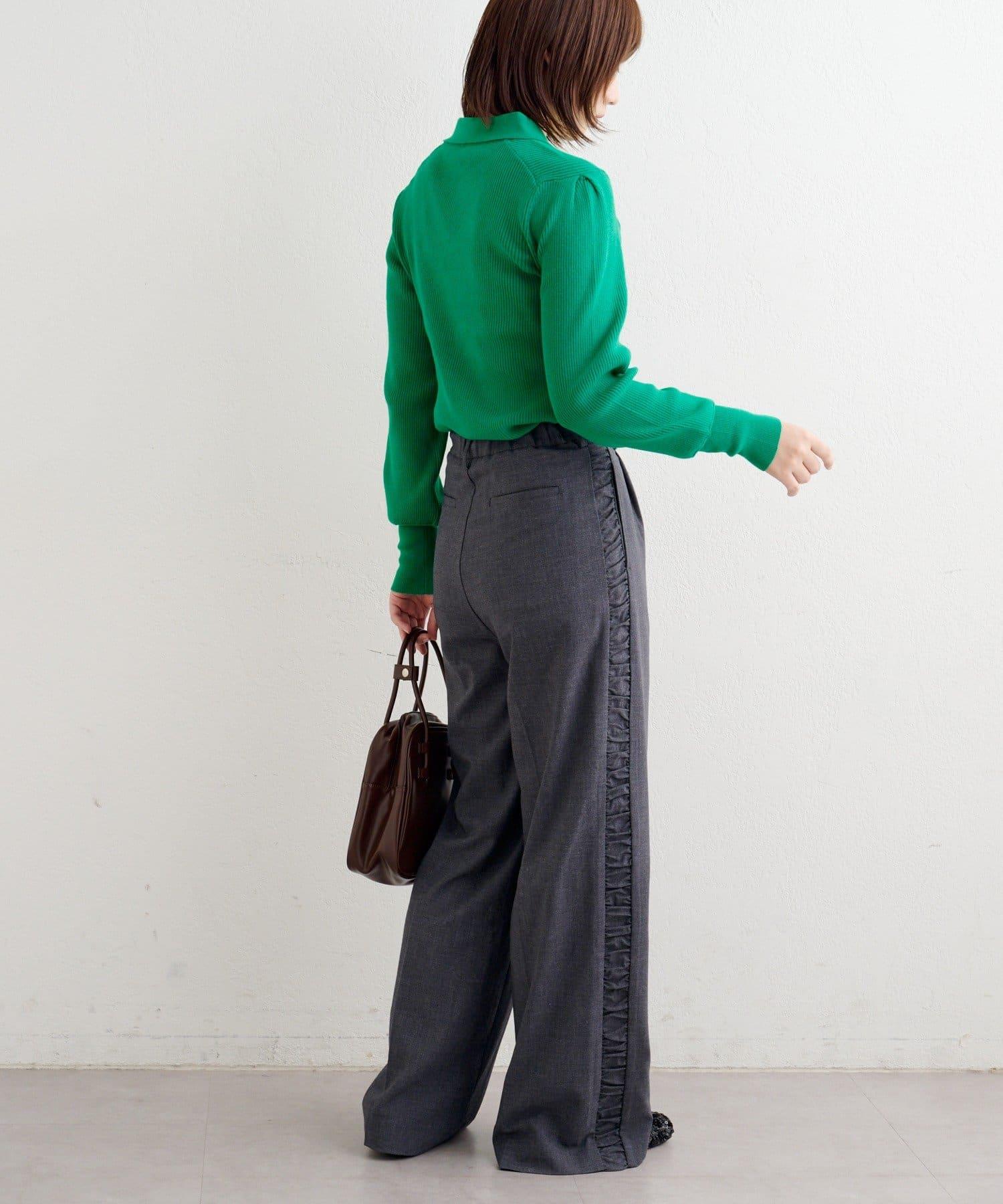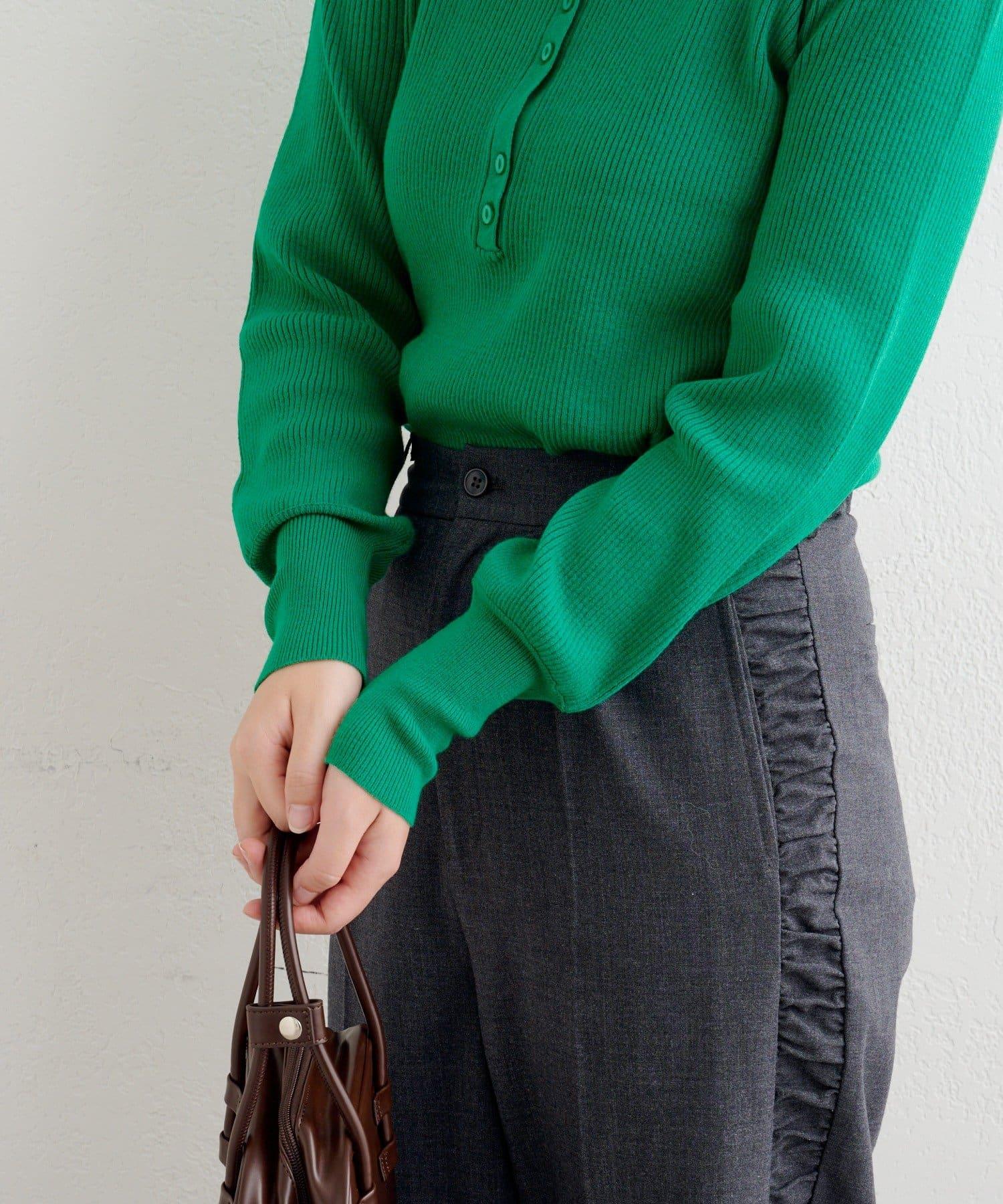 肩部隨意的收褶設計增添了女性的圓潤感和立體感。紐扣可扣在上部,打造整潔的外觀。