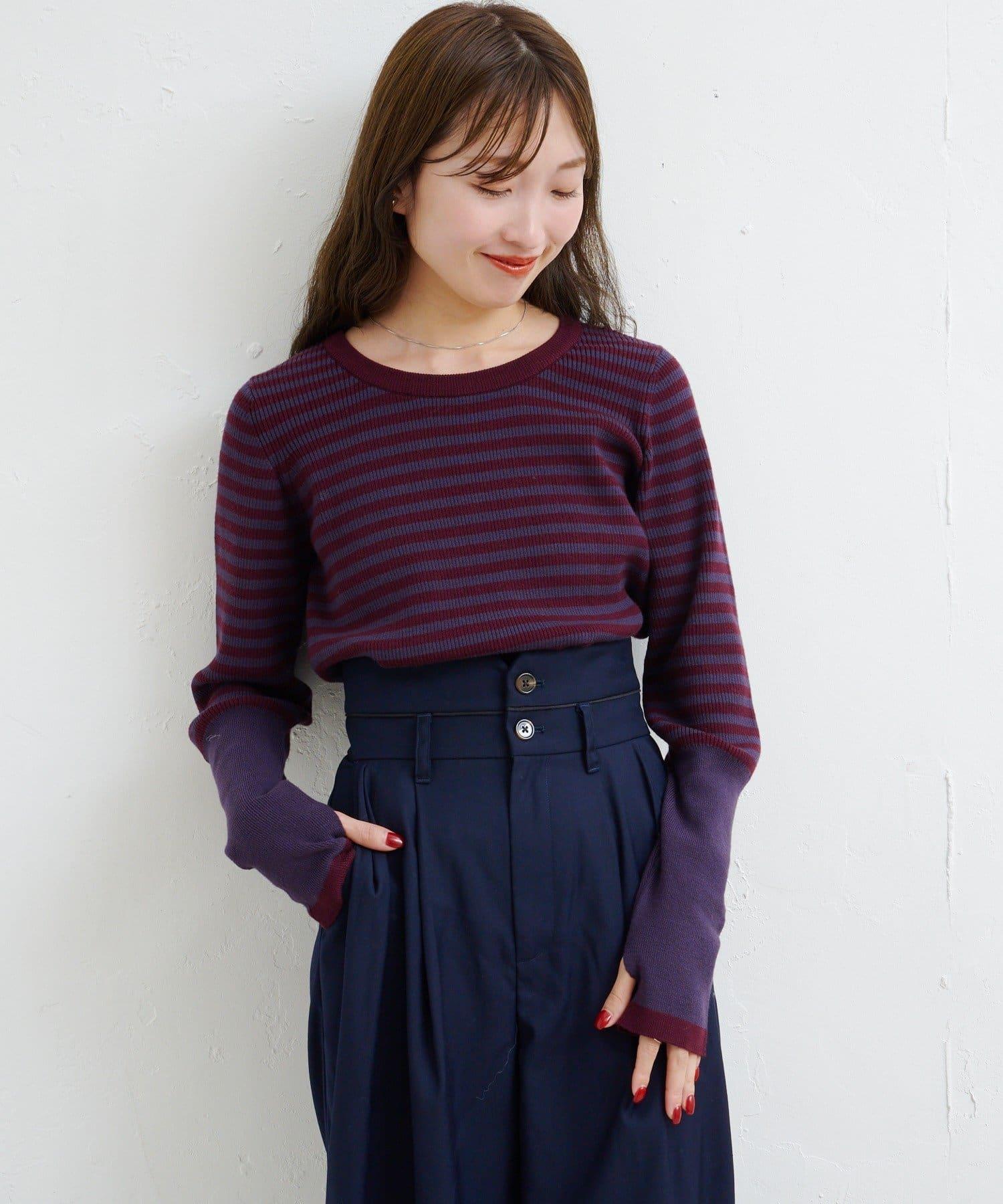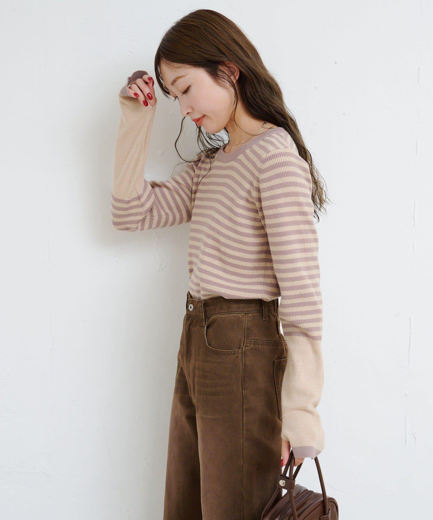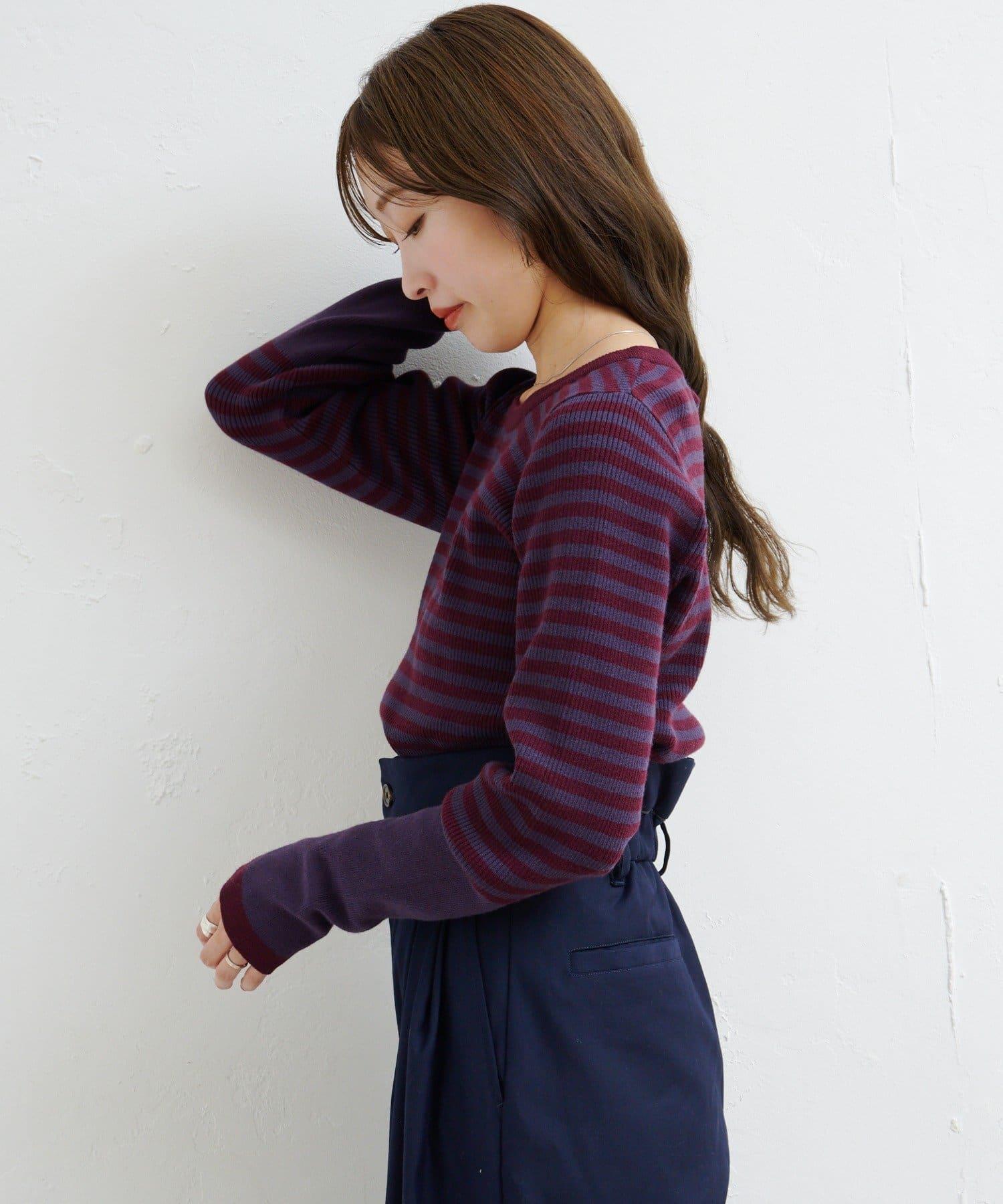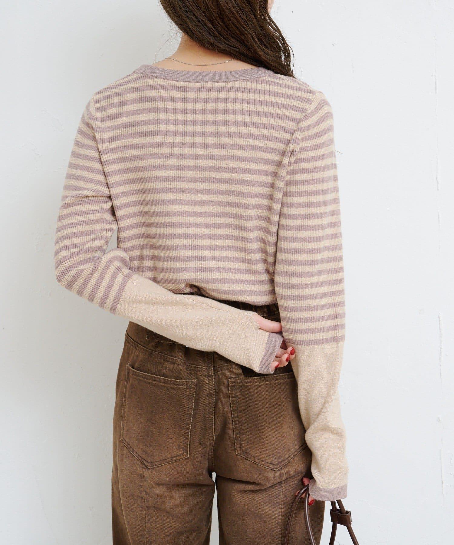 【4色可選】B 條紋指孔針織上衣