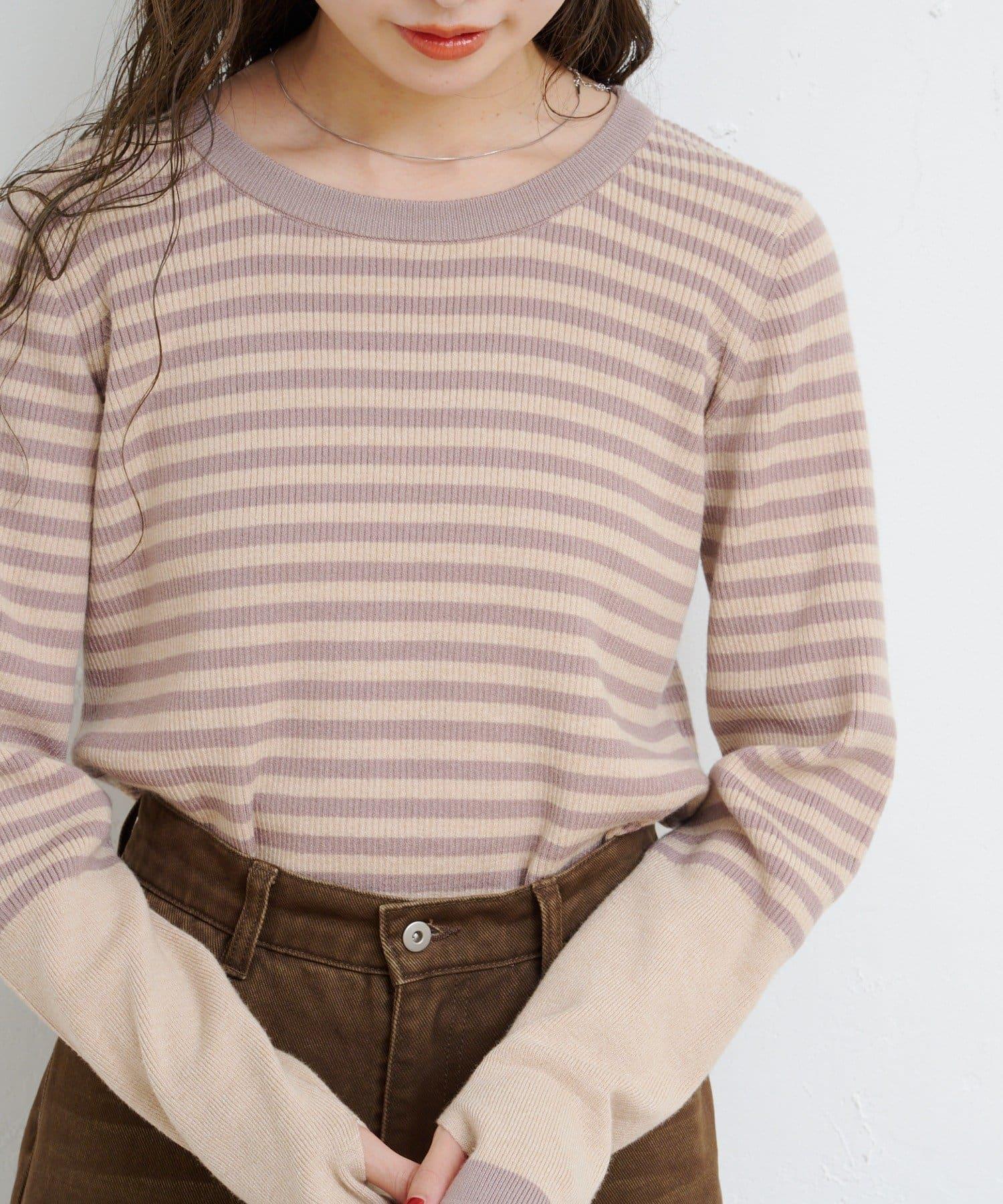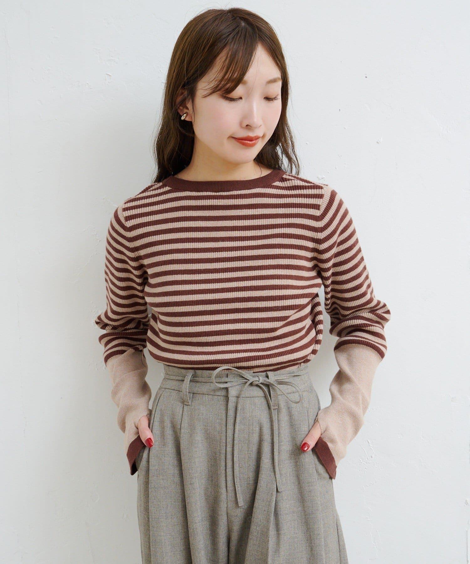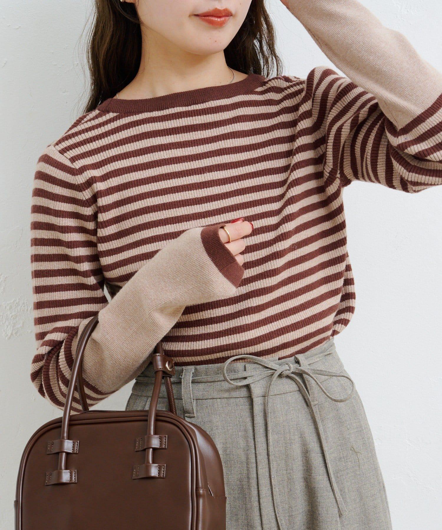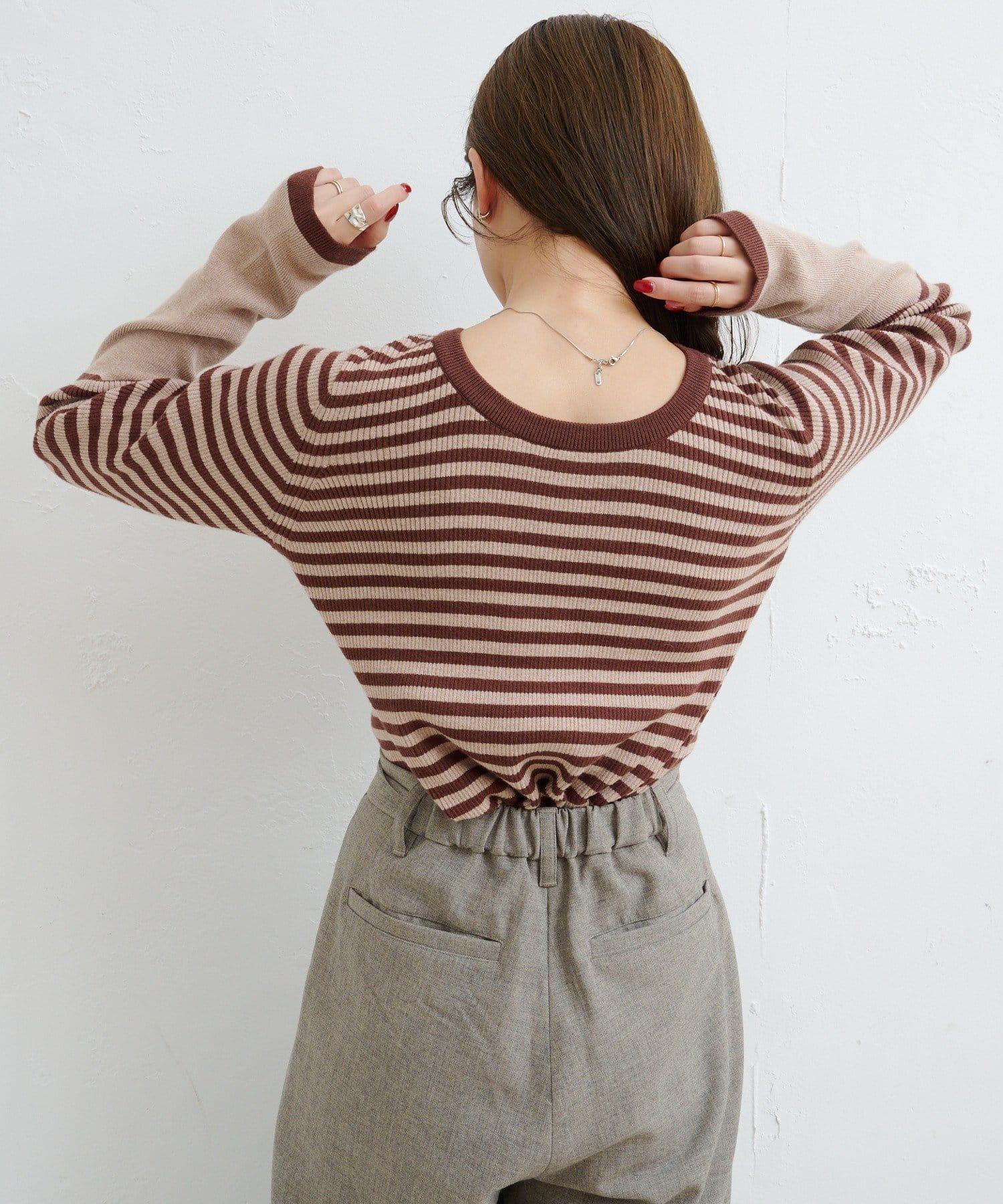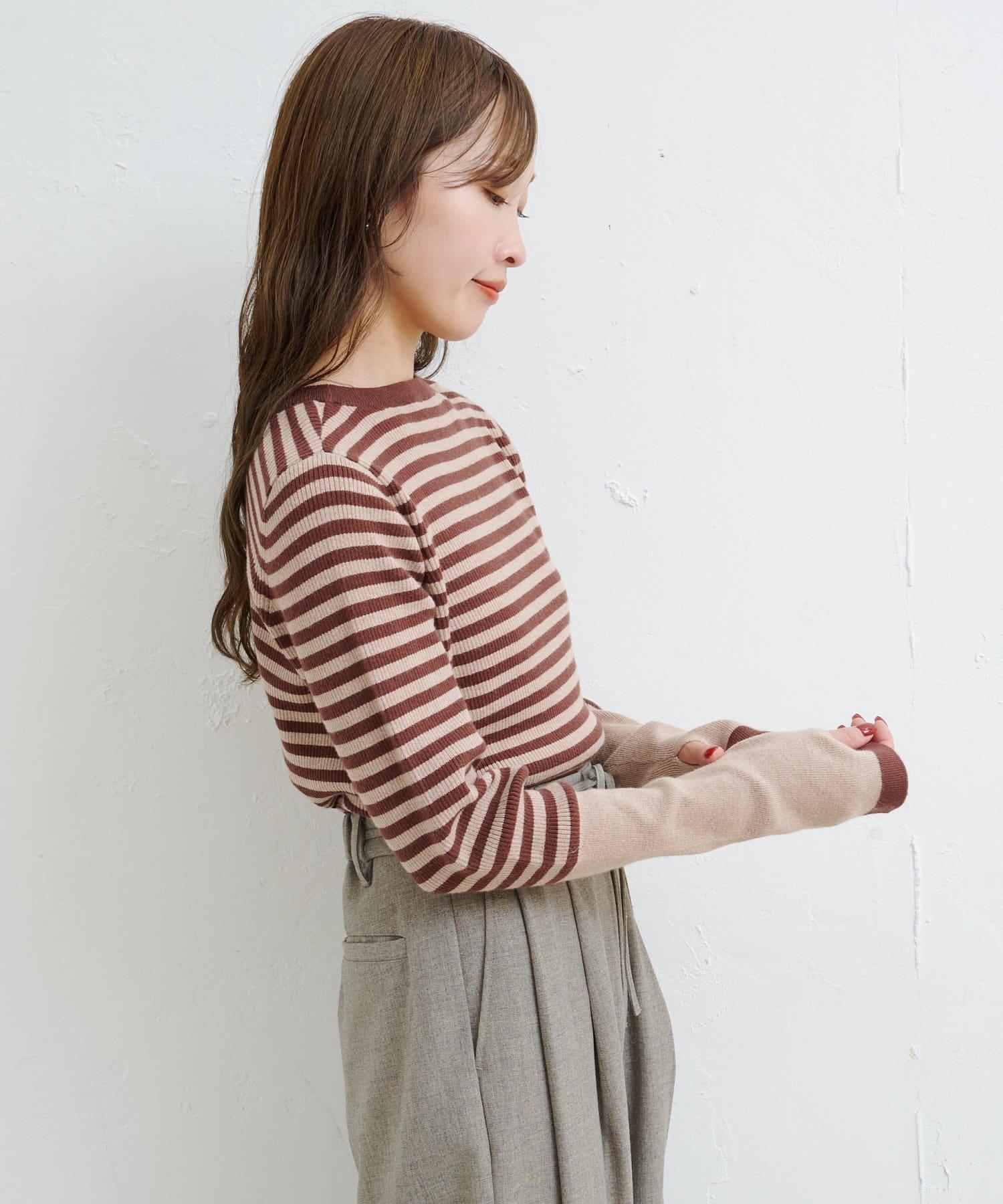 【4色可選】B 條紋指孔針織上衣