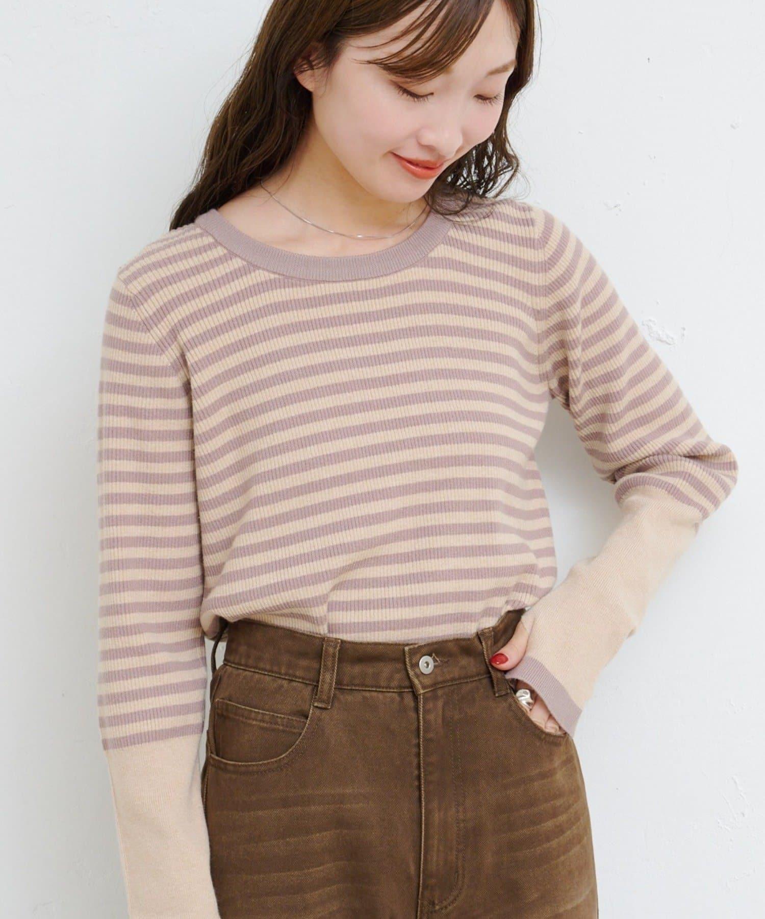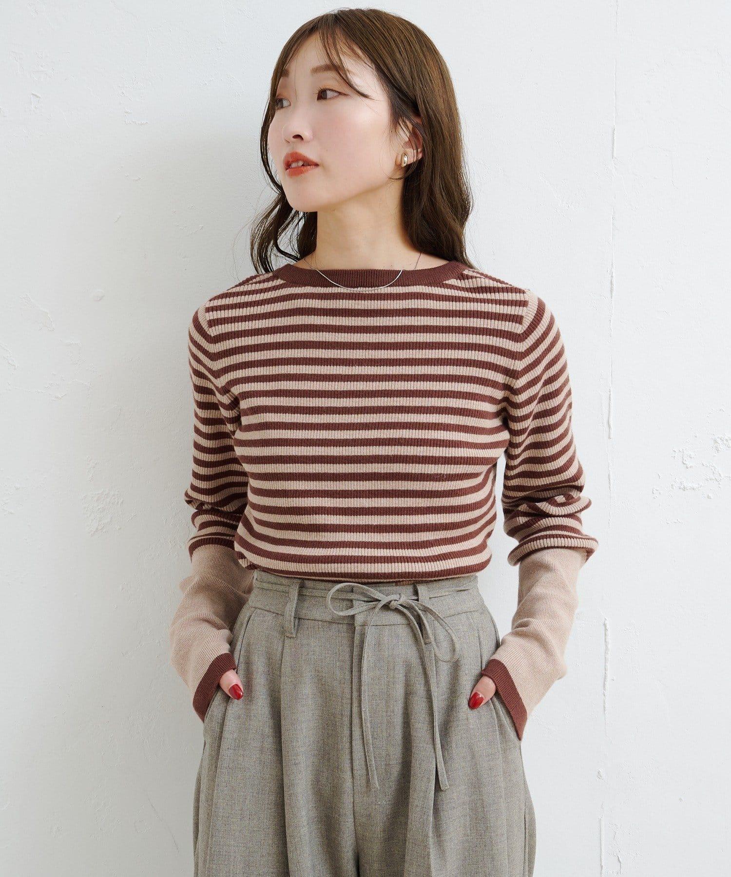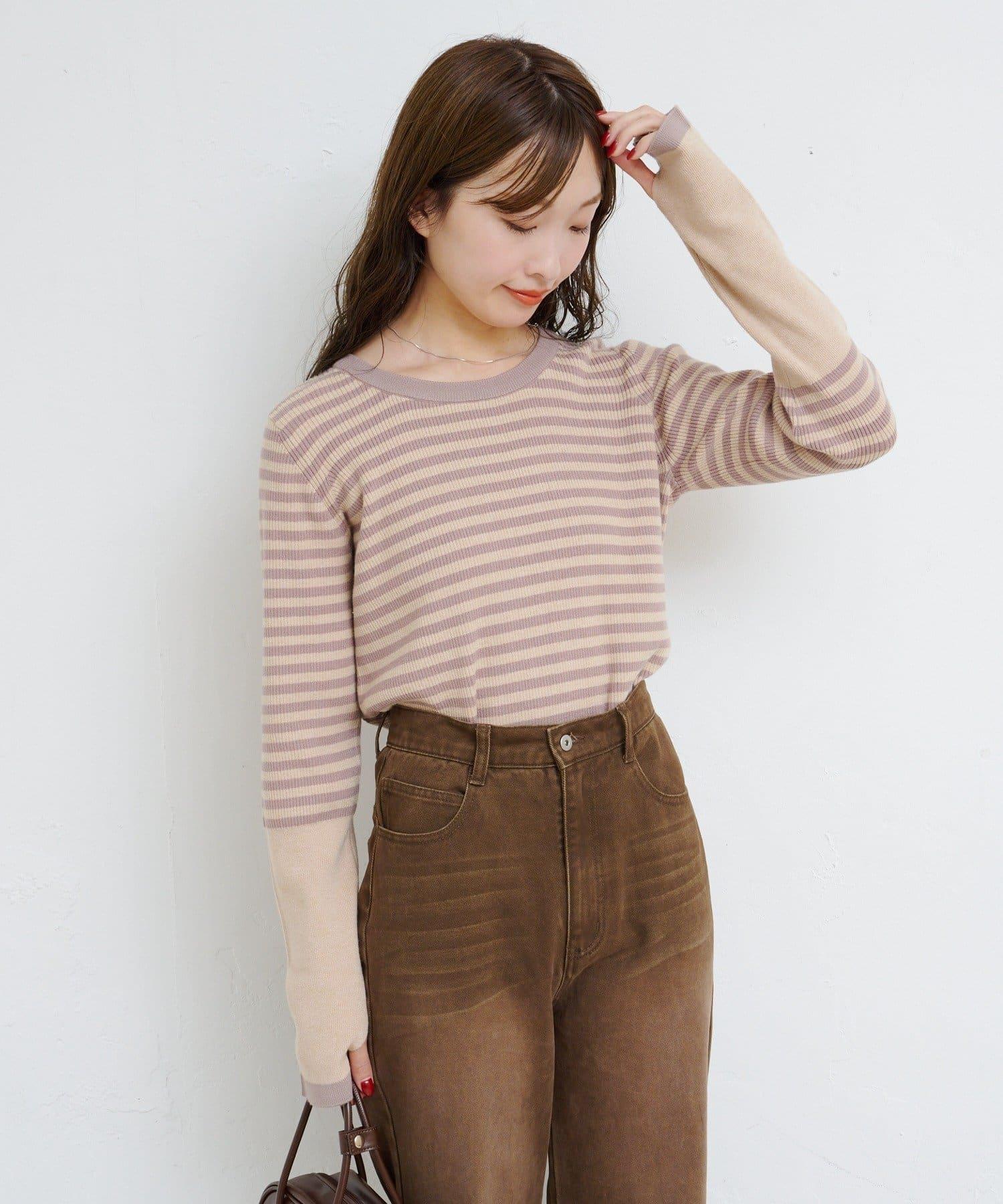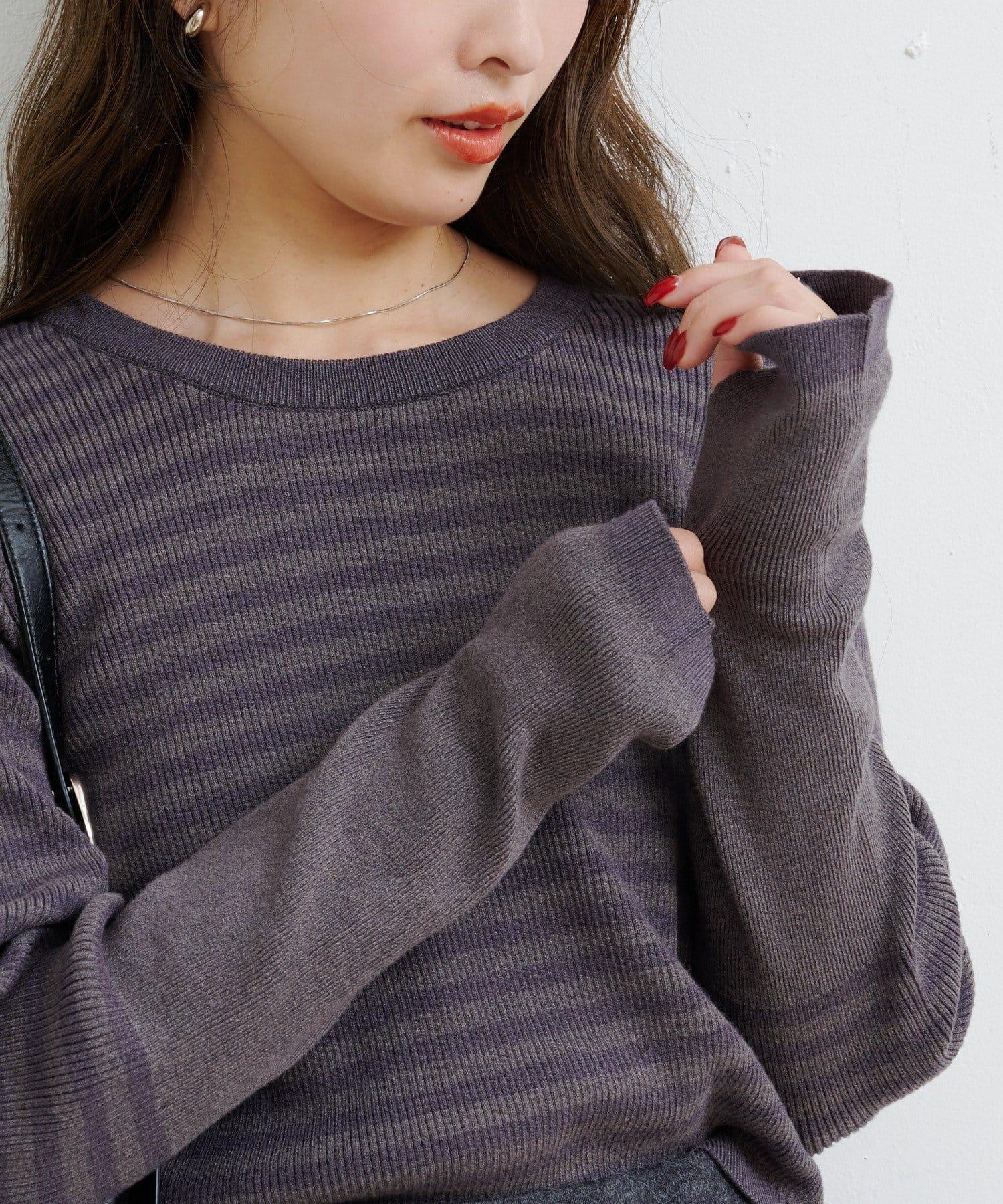 【4色可選】B 條紋指孔針織上衣