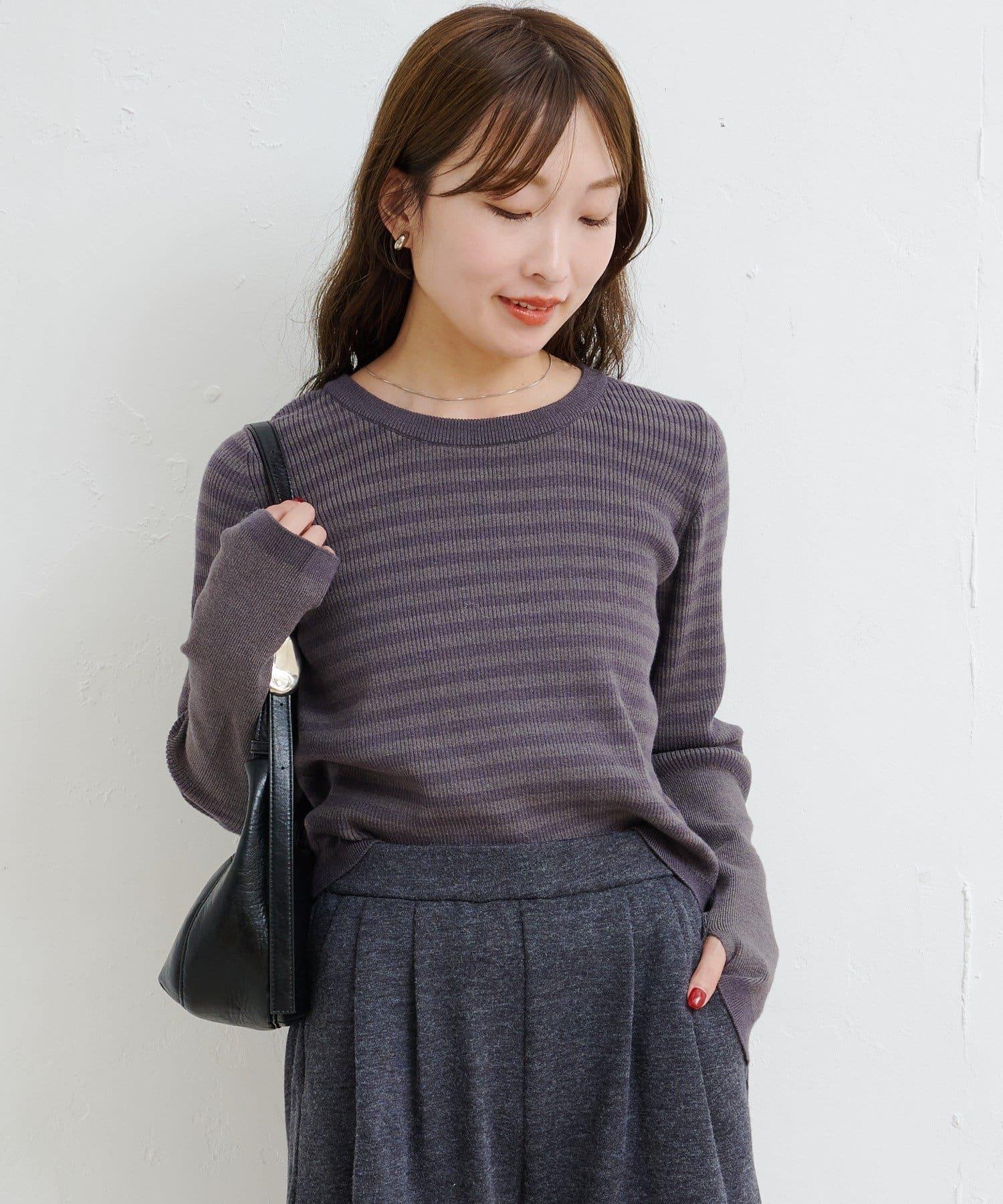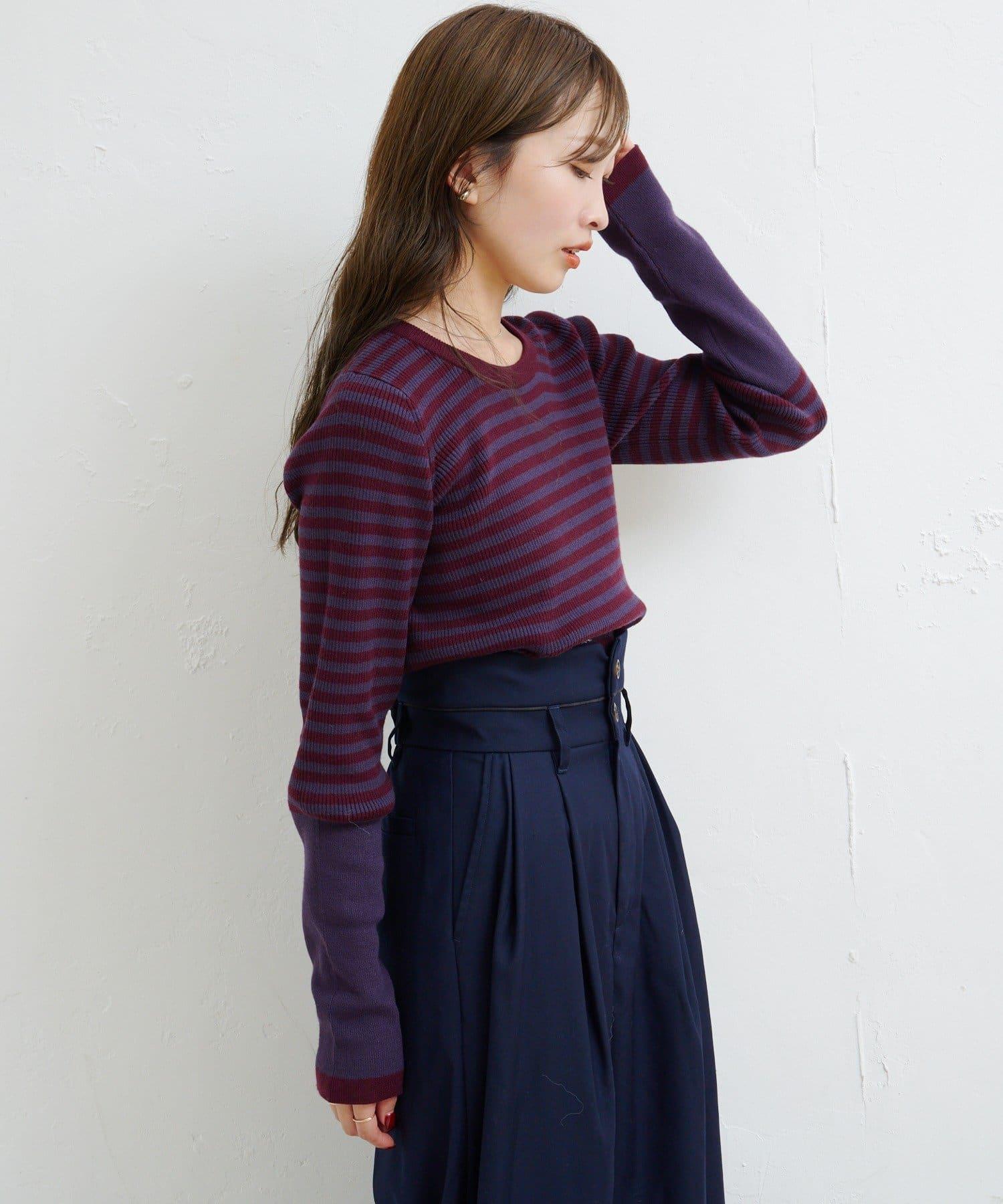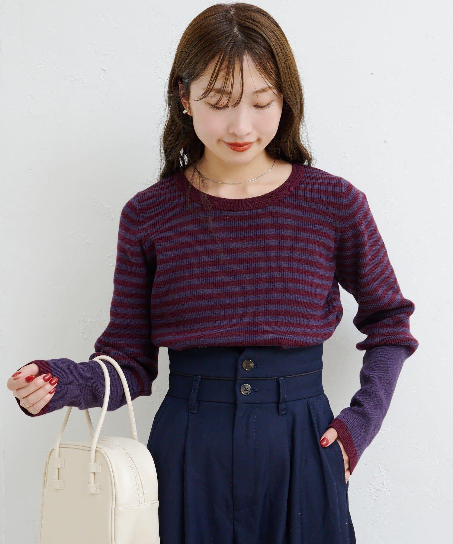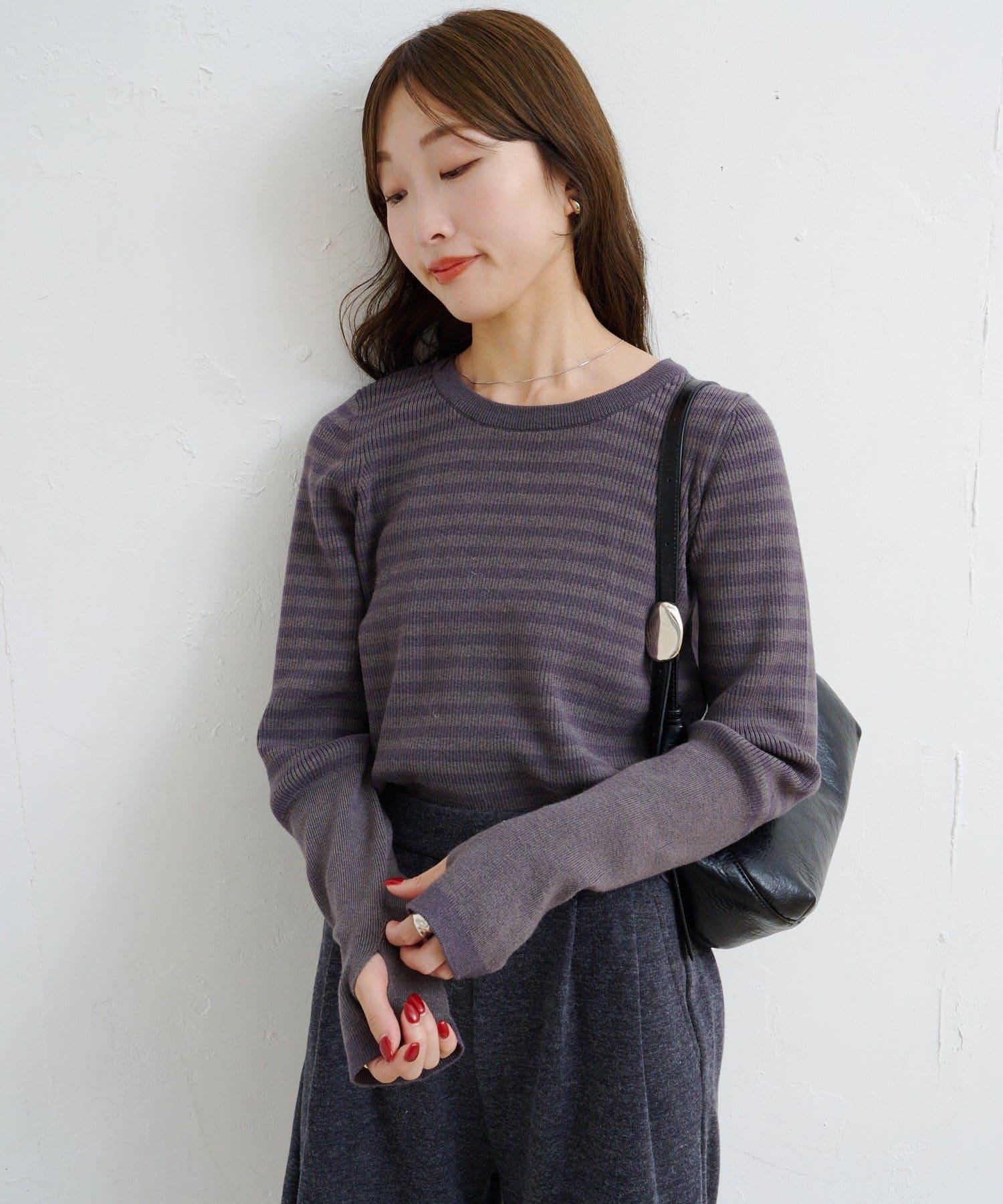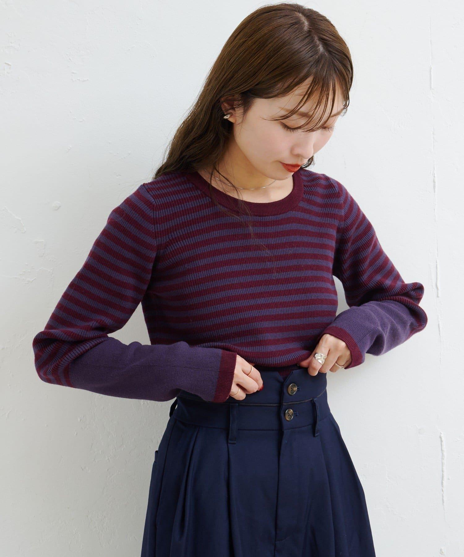 【4色可選】B 條紋指孔針織上衣