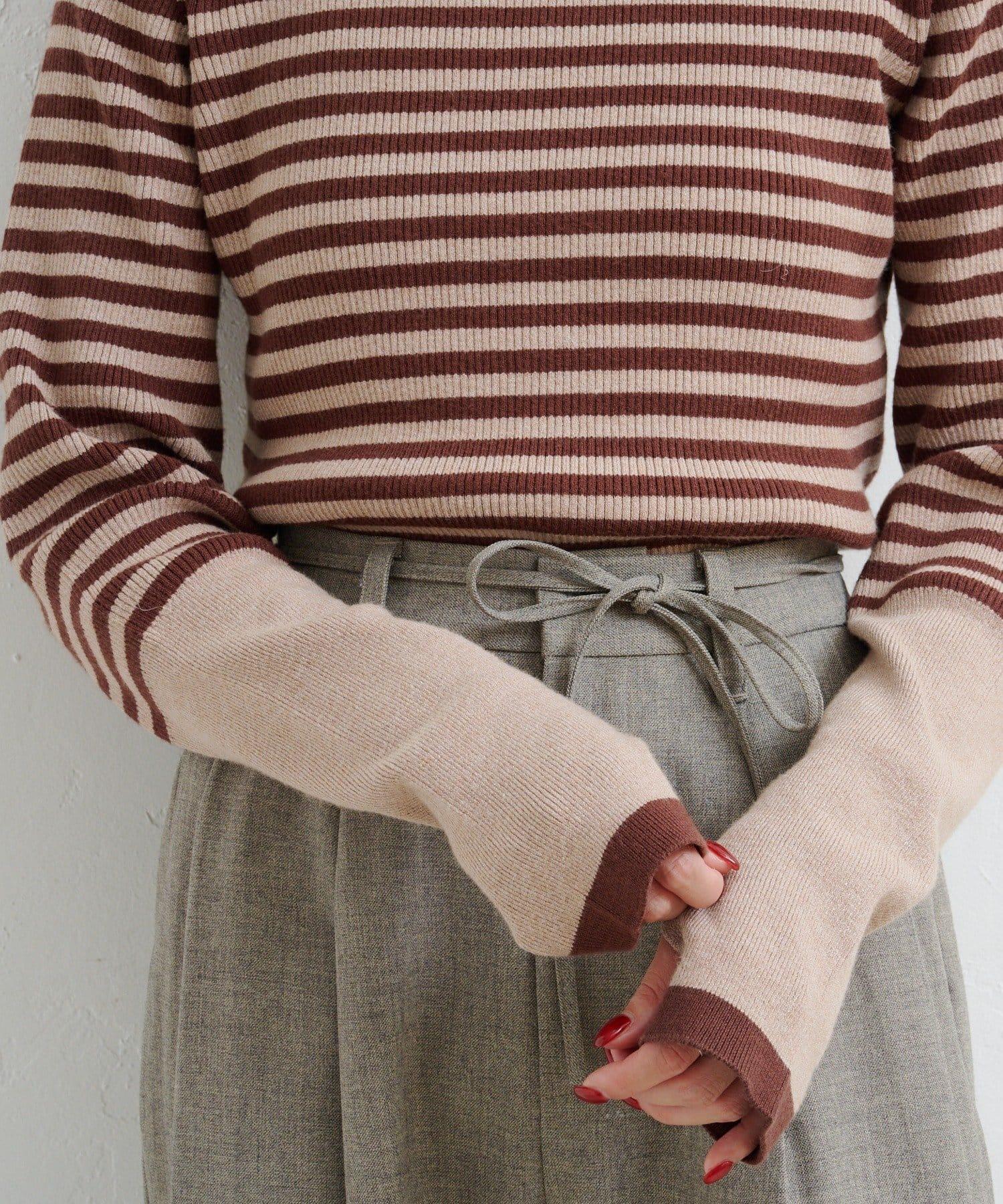 這款帶指孔的針織上衣採用細間距的邊框圖案,顯得成熟穩重。