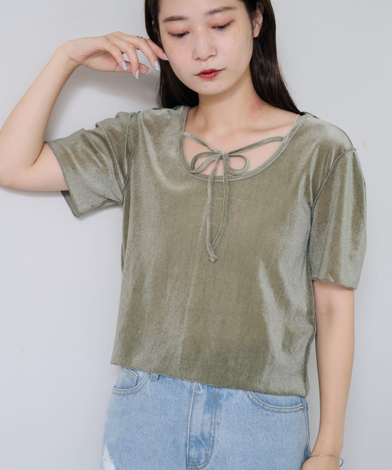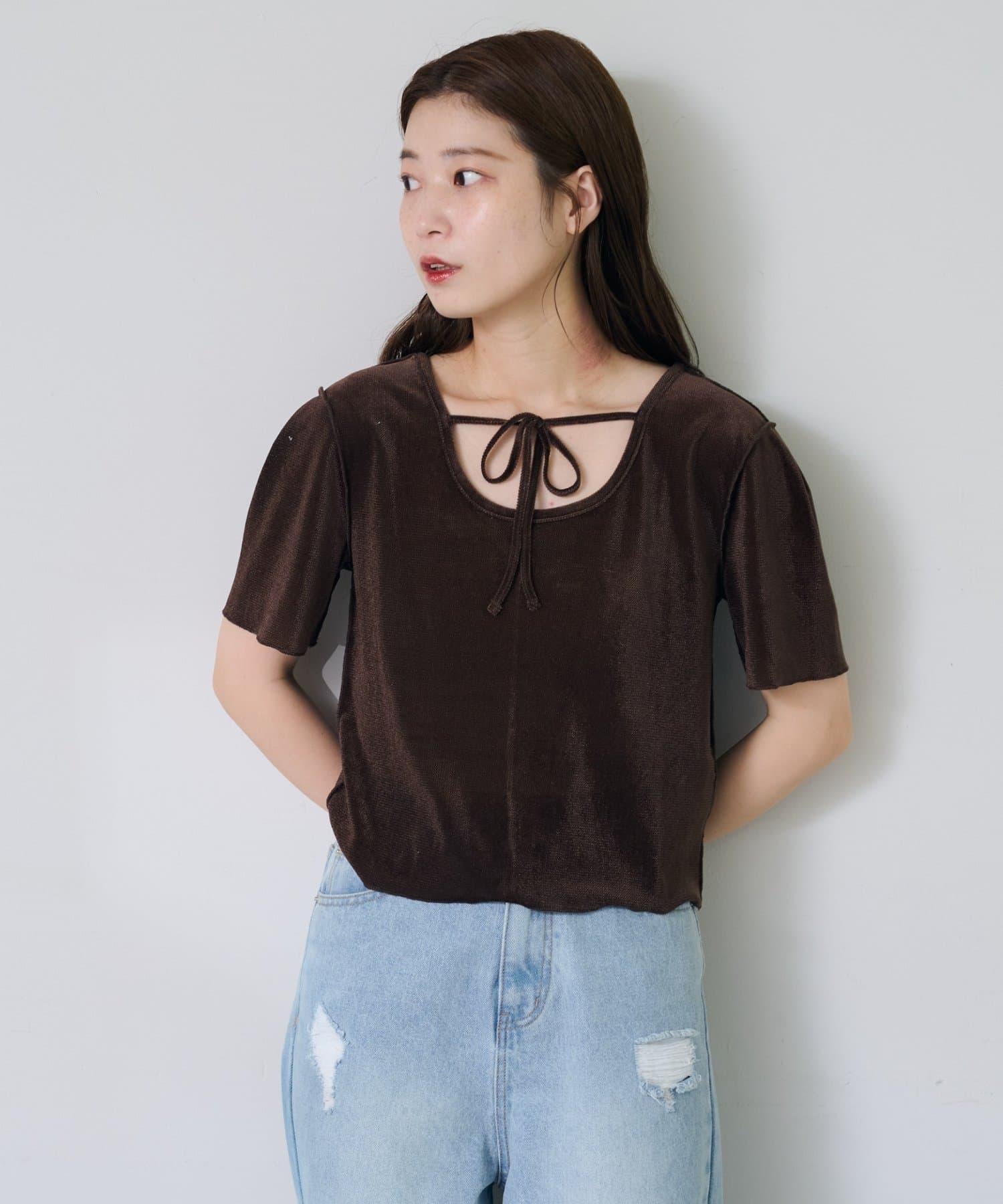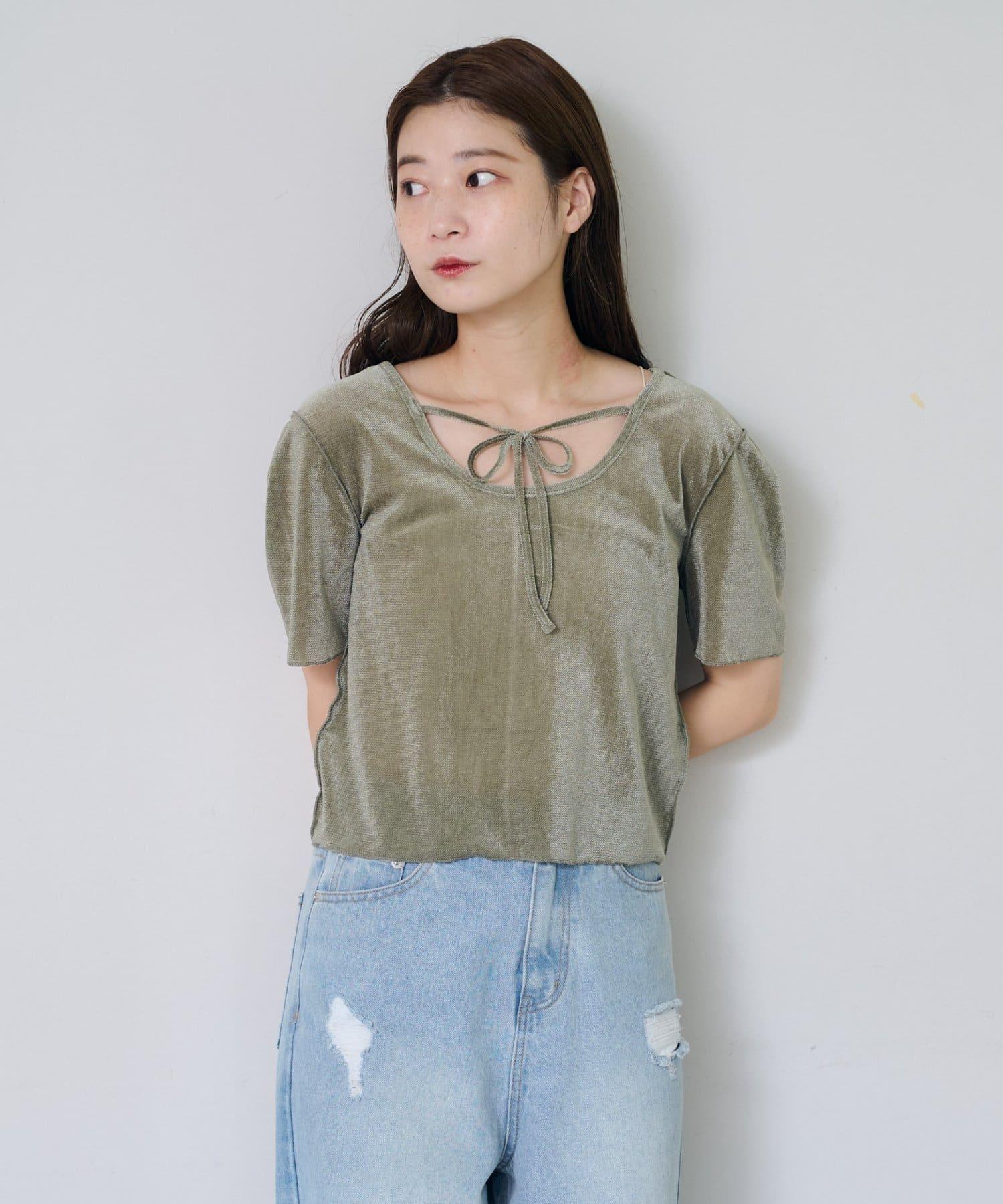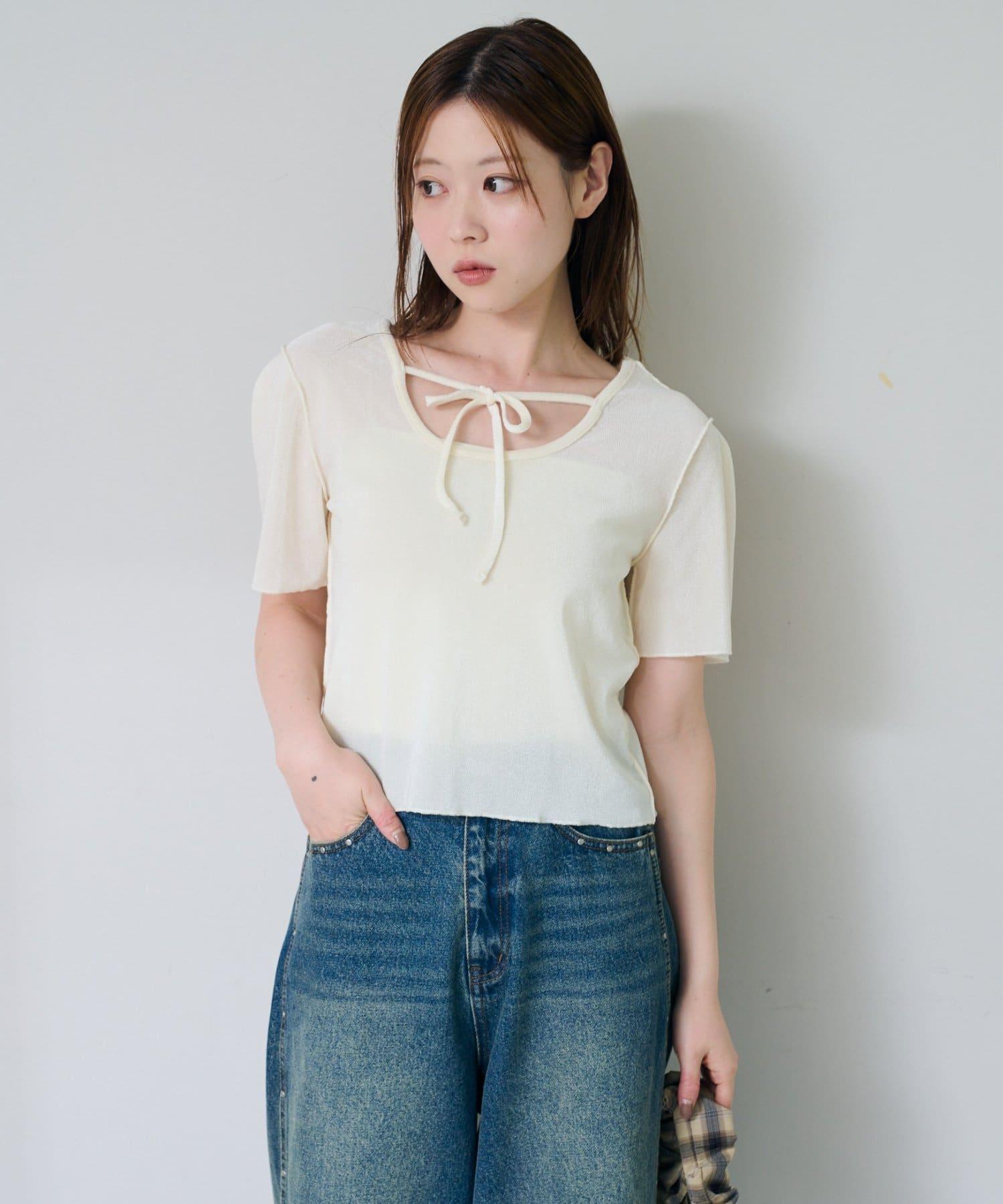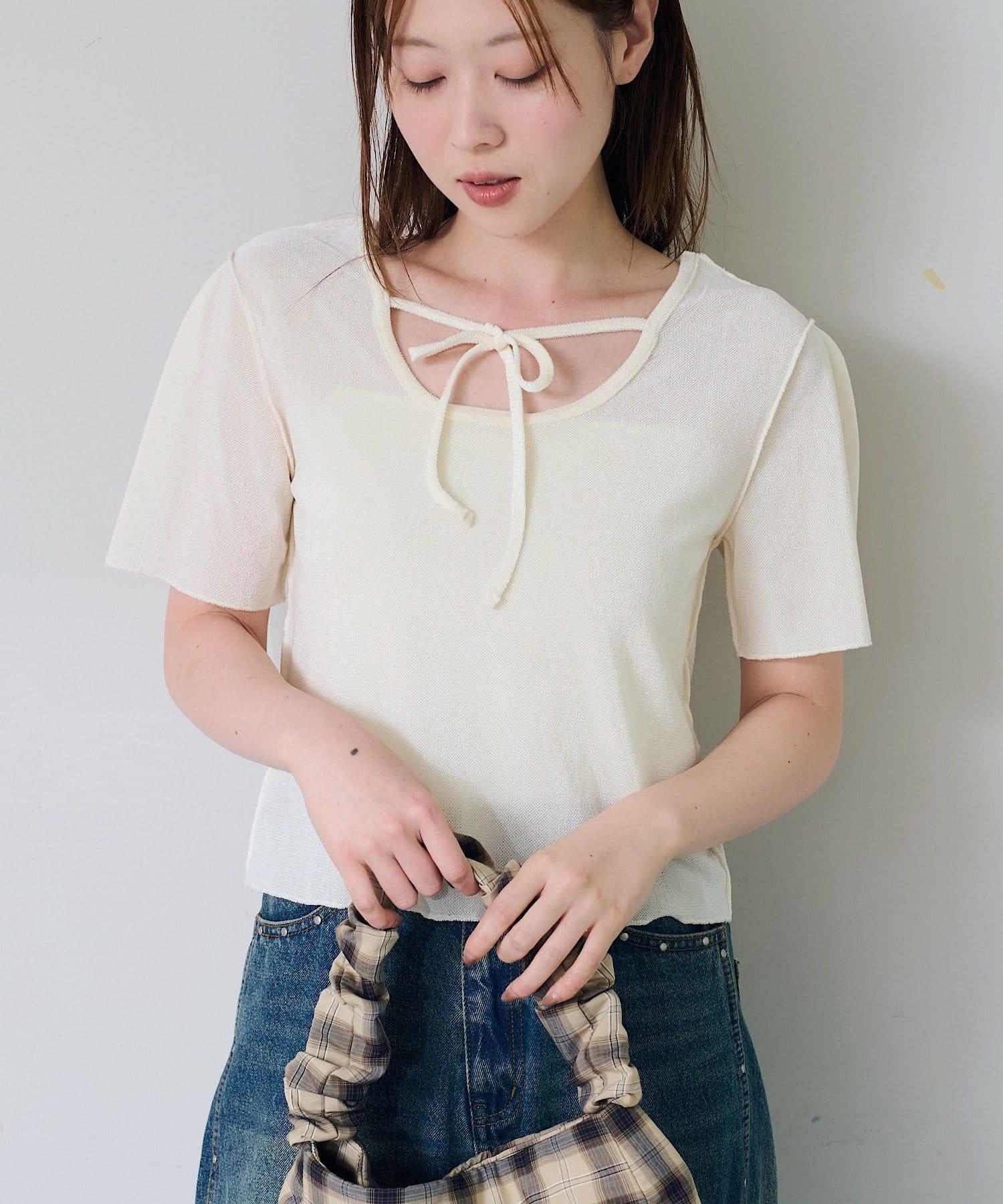 【4色展開/前後2WAY】後蝴蝶結開衩短袖T恤