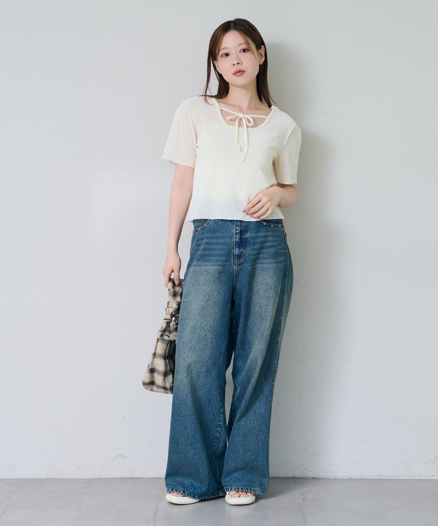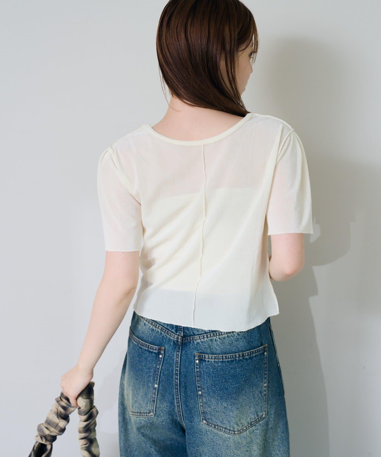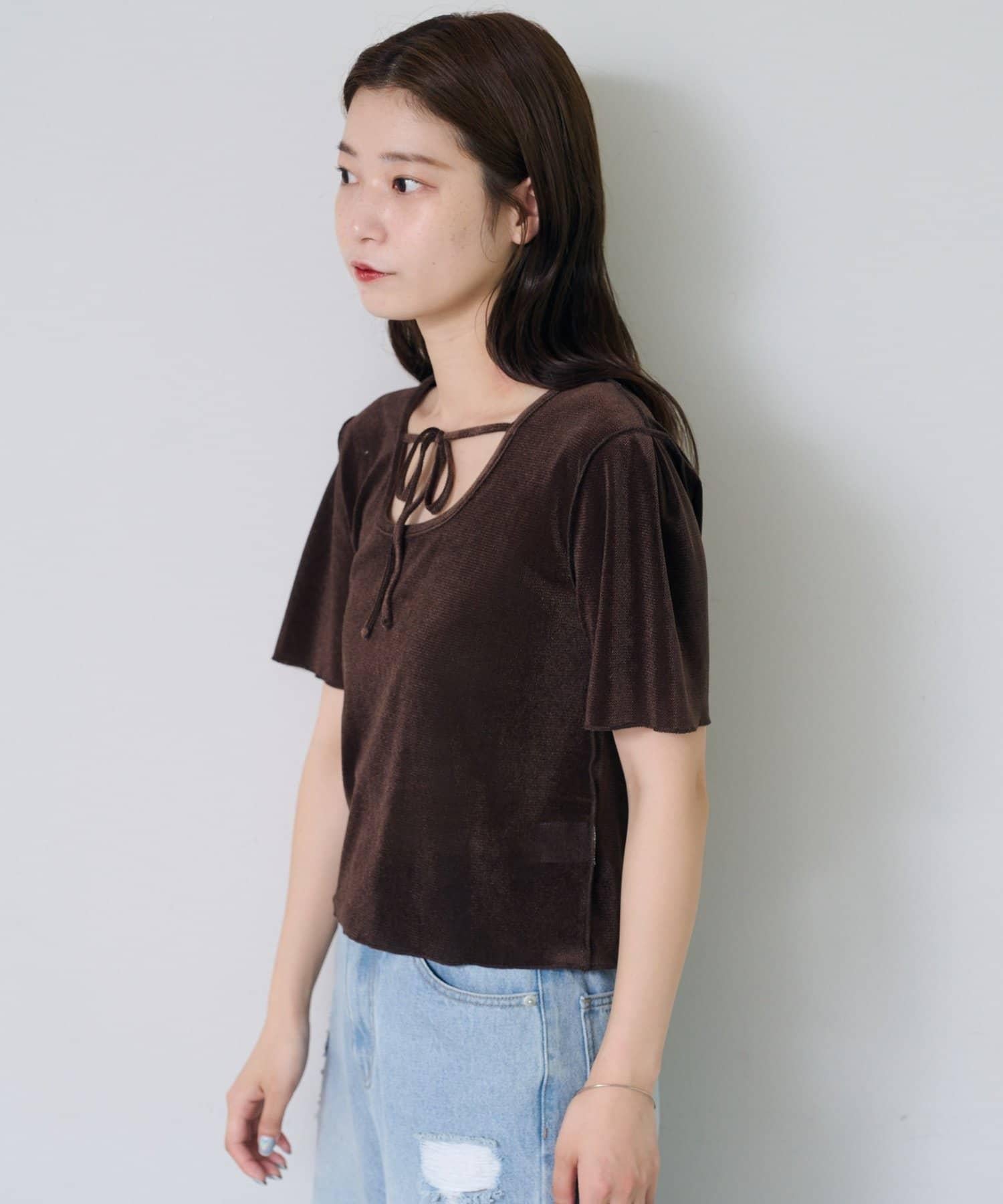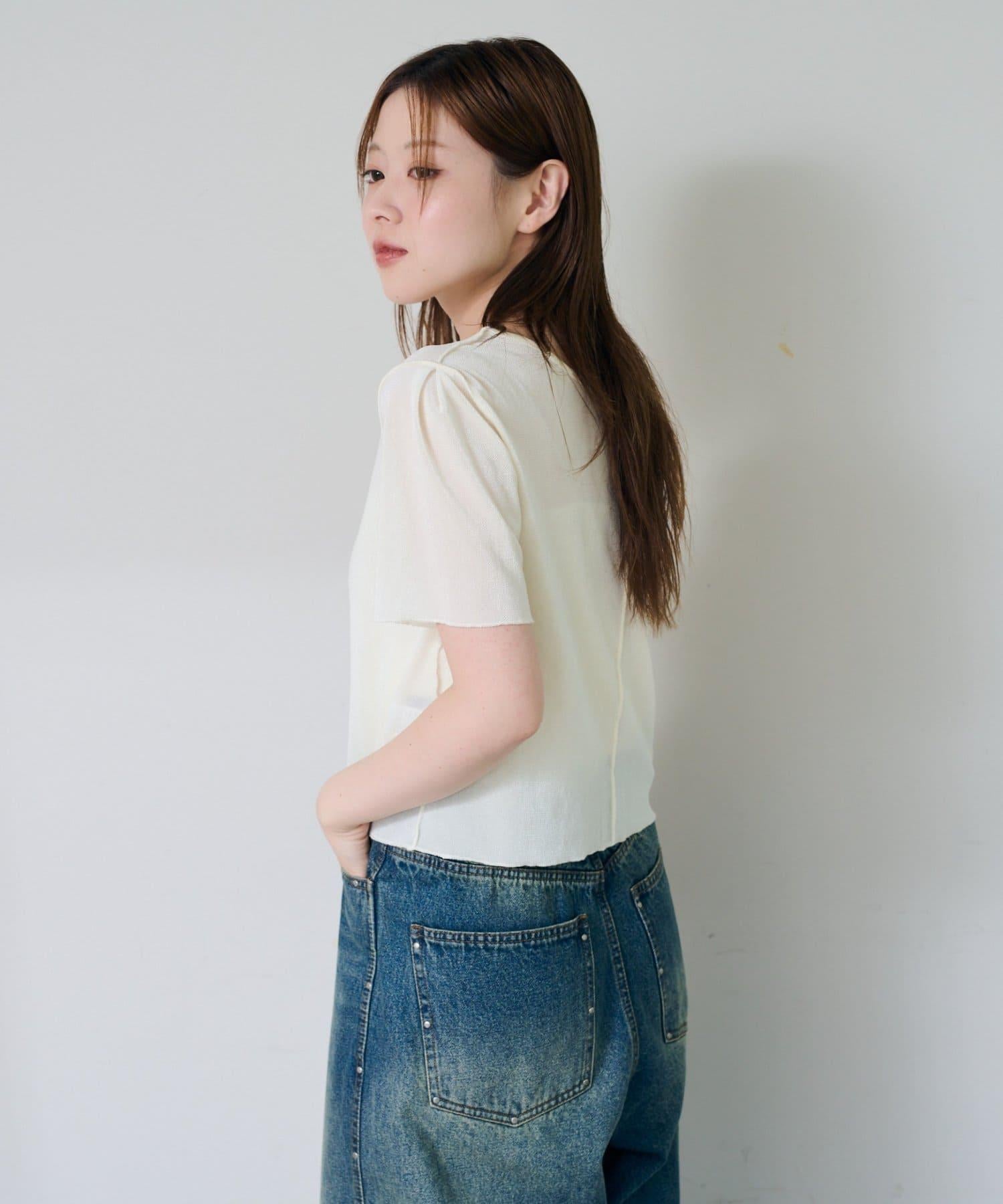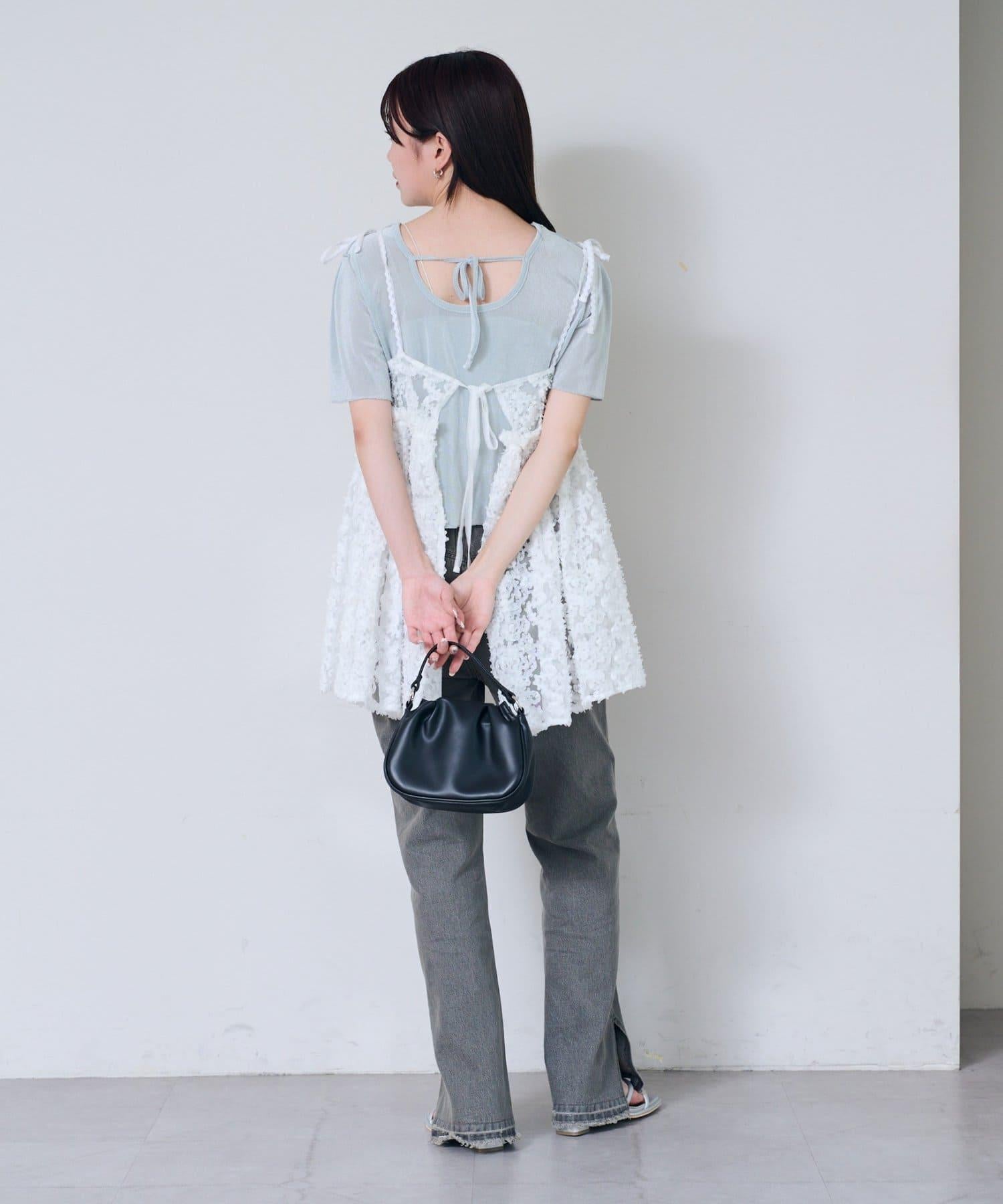 【4色展開/前後2WAY】後蝴蝶結開衩短袖T恤