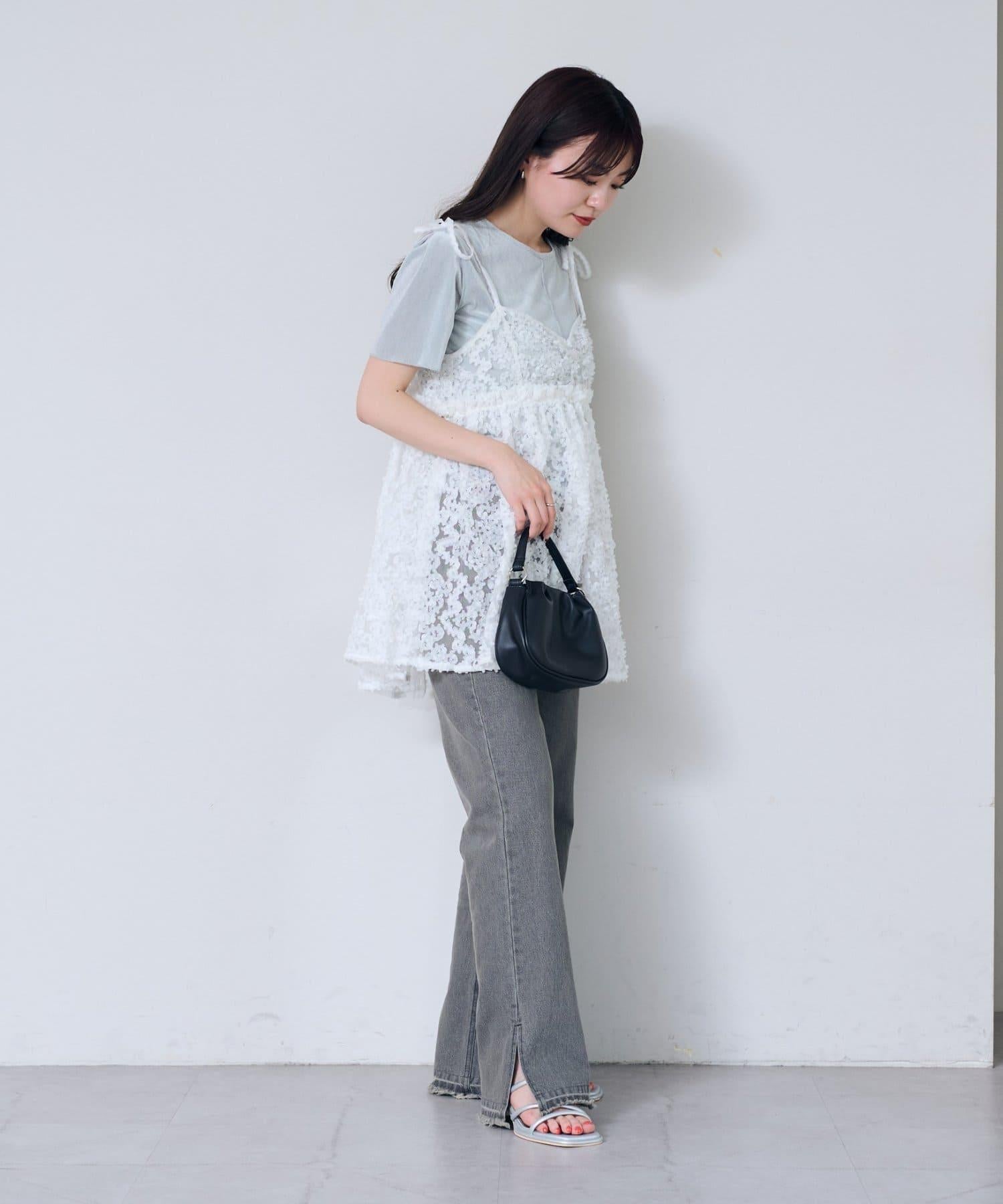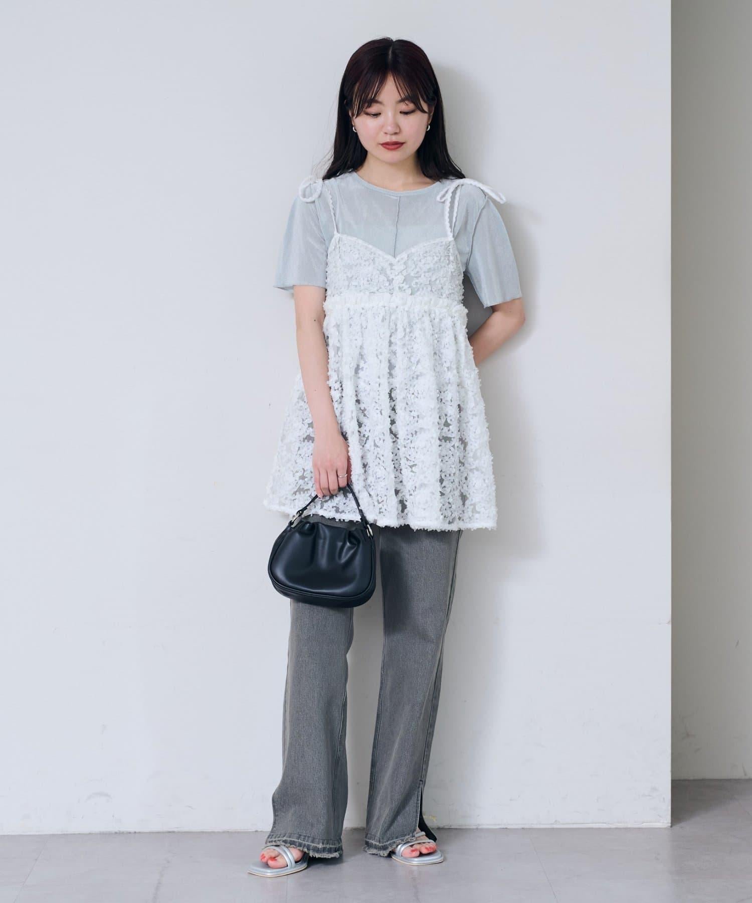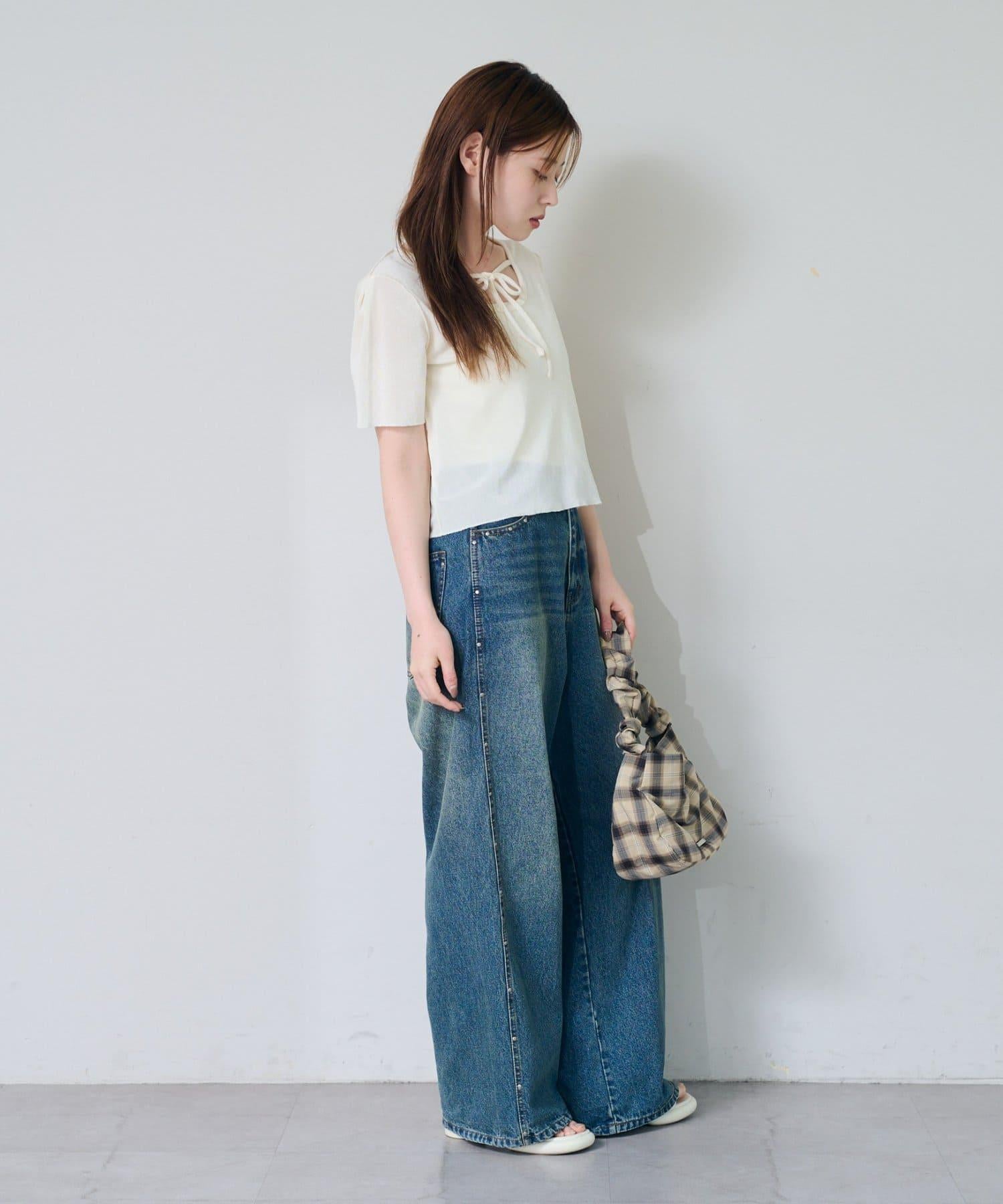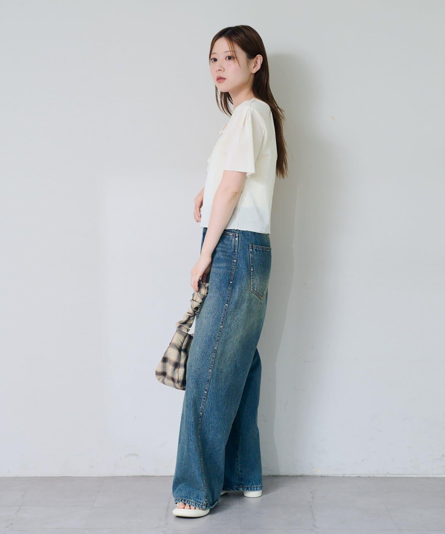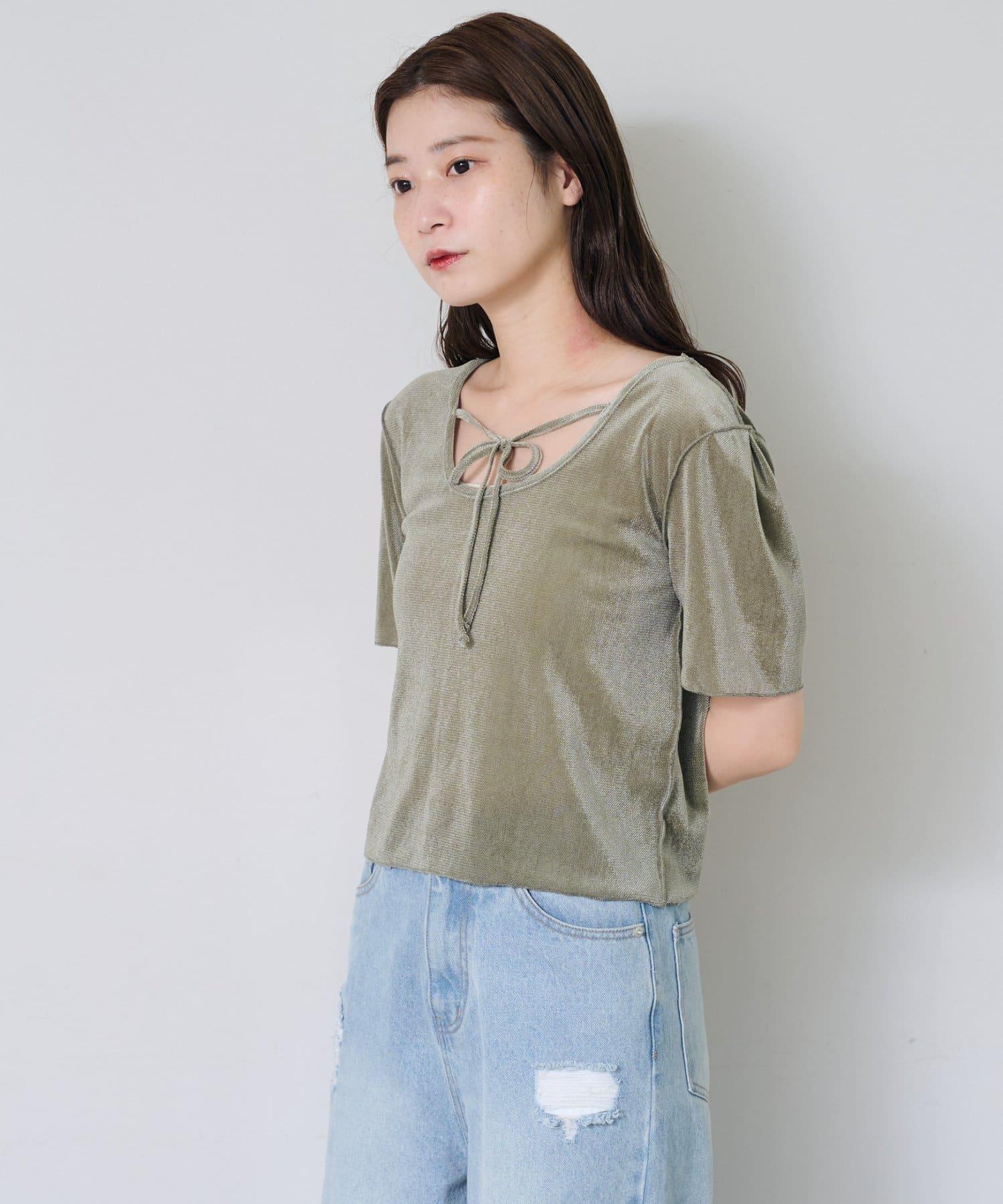 【4色展開/前後2WAY】後蝴蝶結開衩短袖T恤