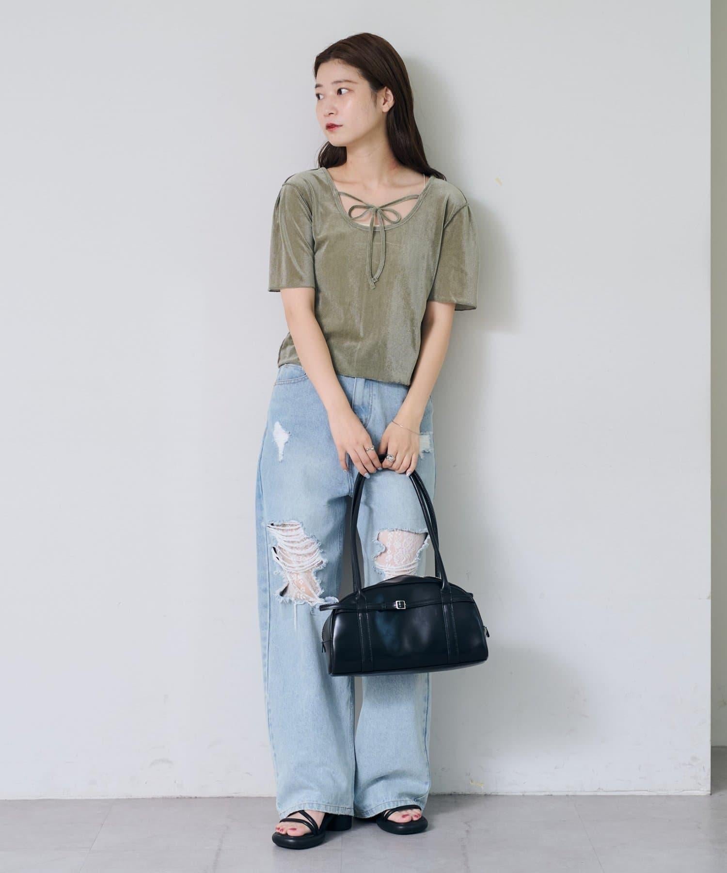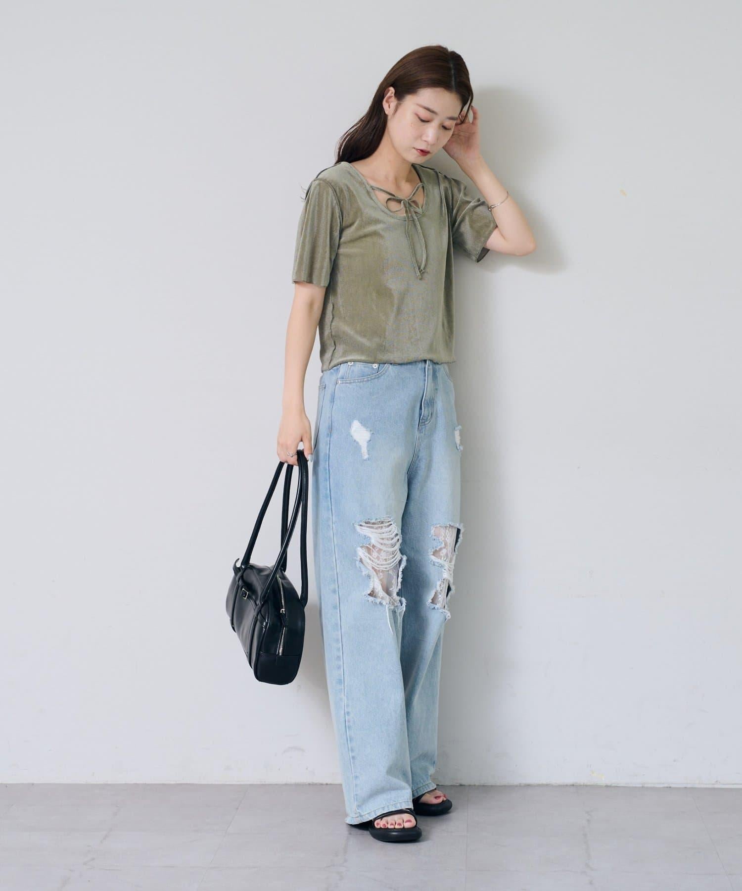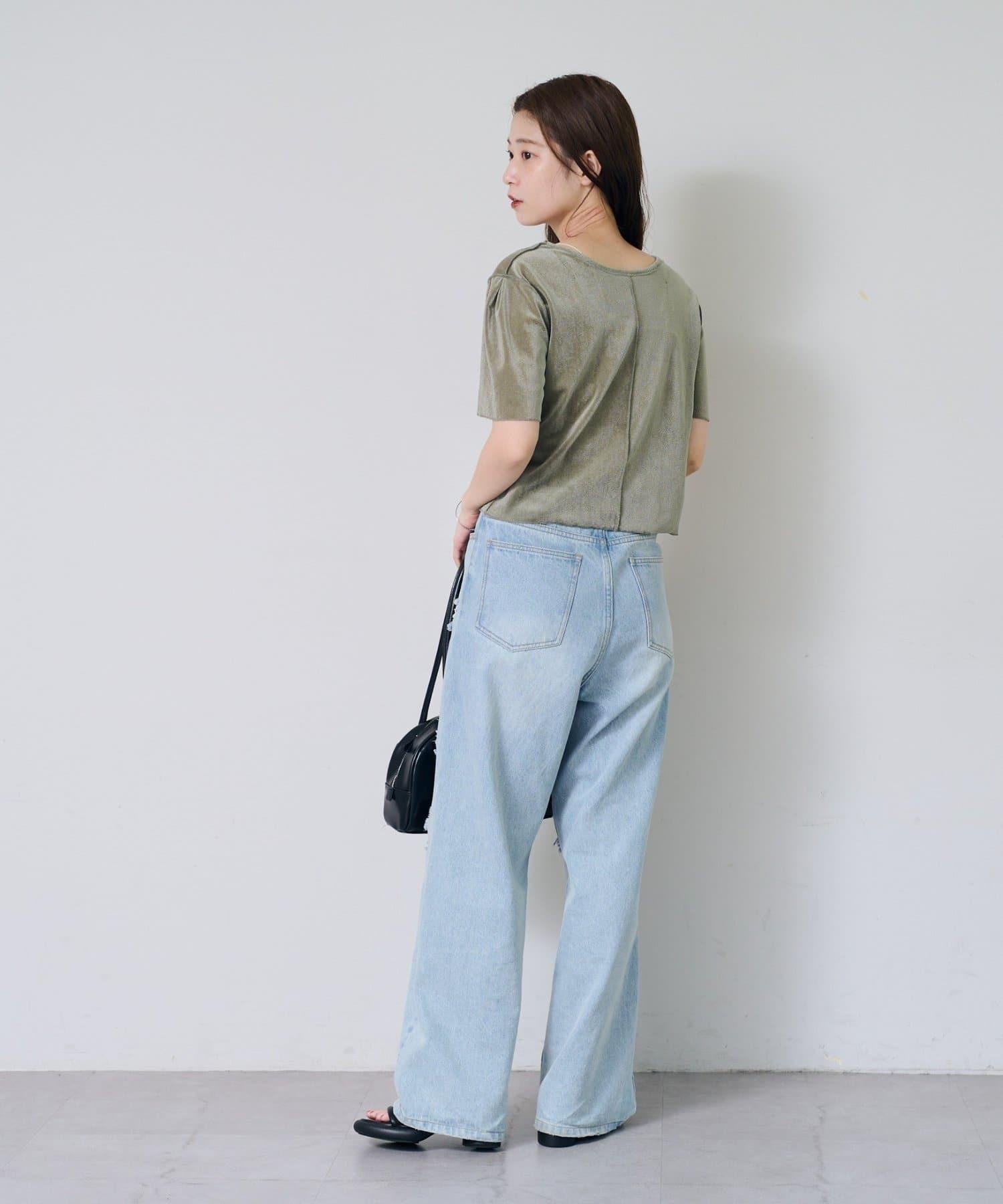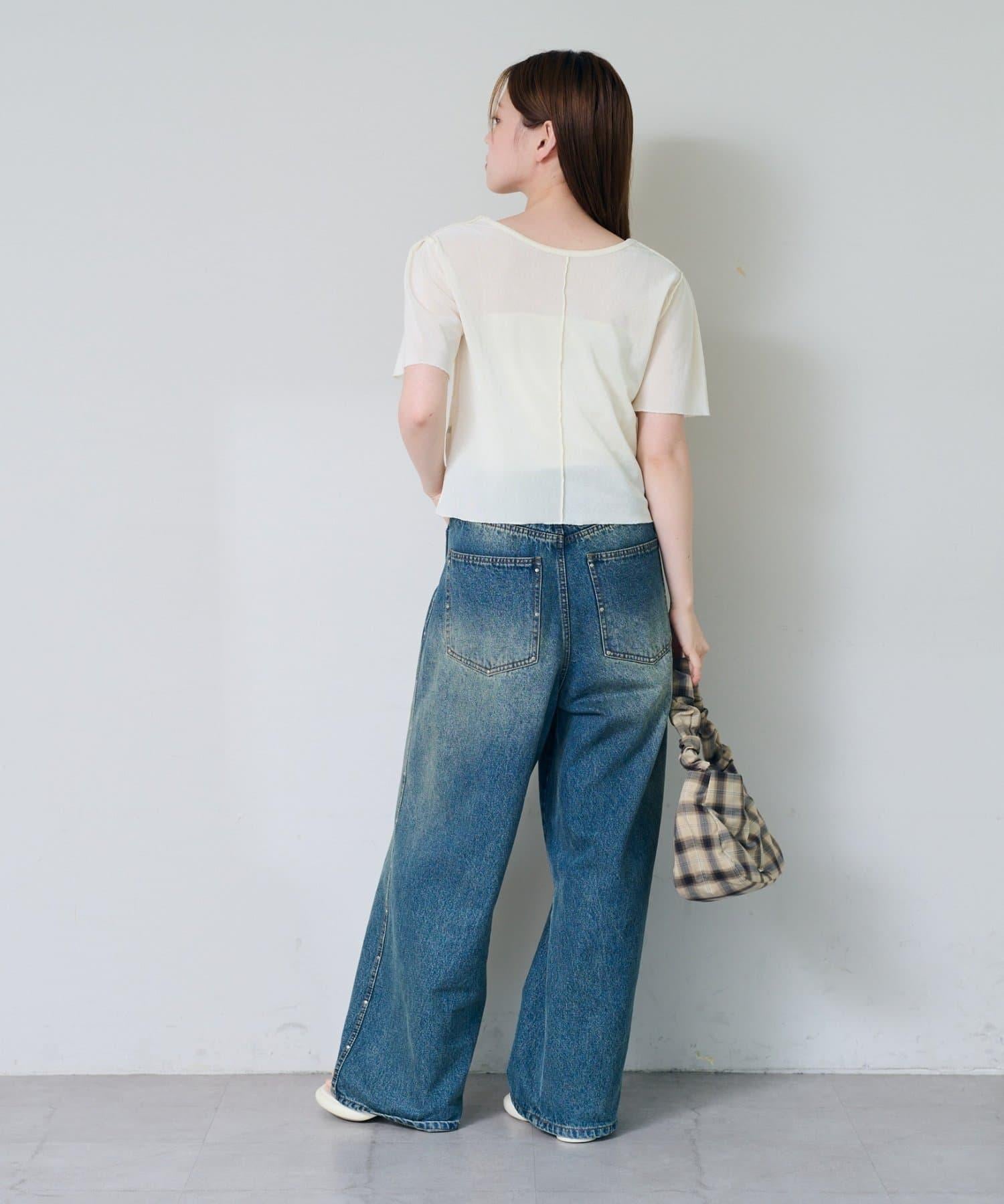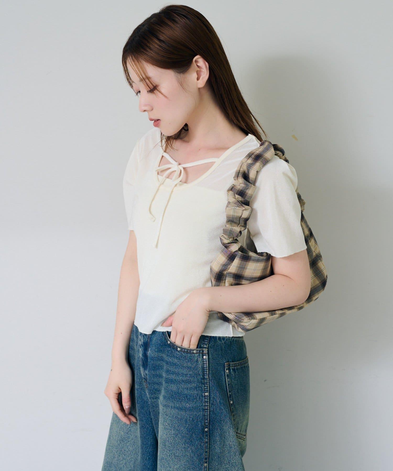 【4色展開/前後2WAY】後蝴蝶結開衩短袖T恤