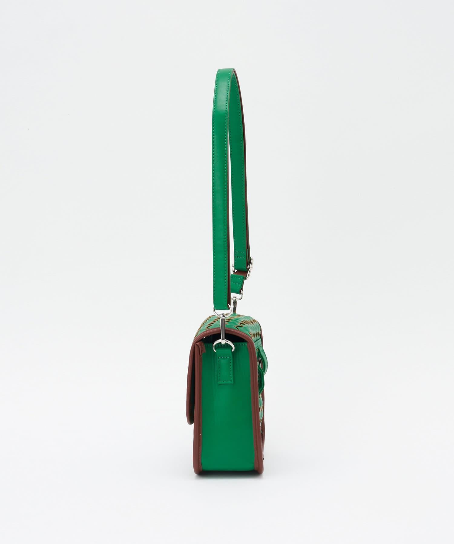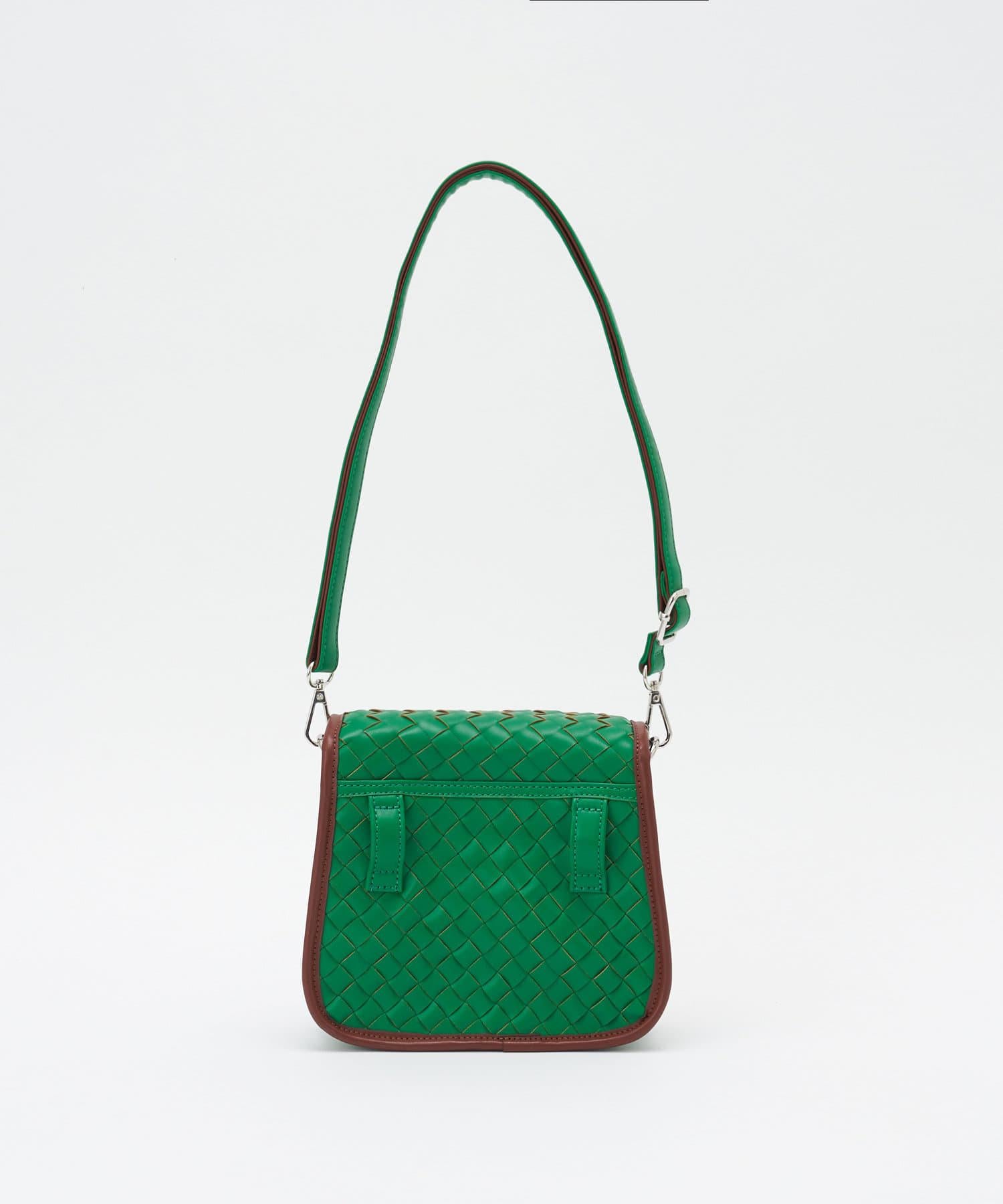 肩包採用優雅的編織設計,引人注目。
