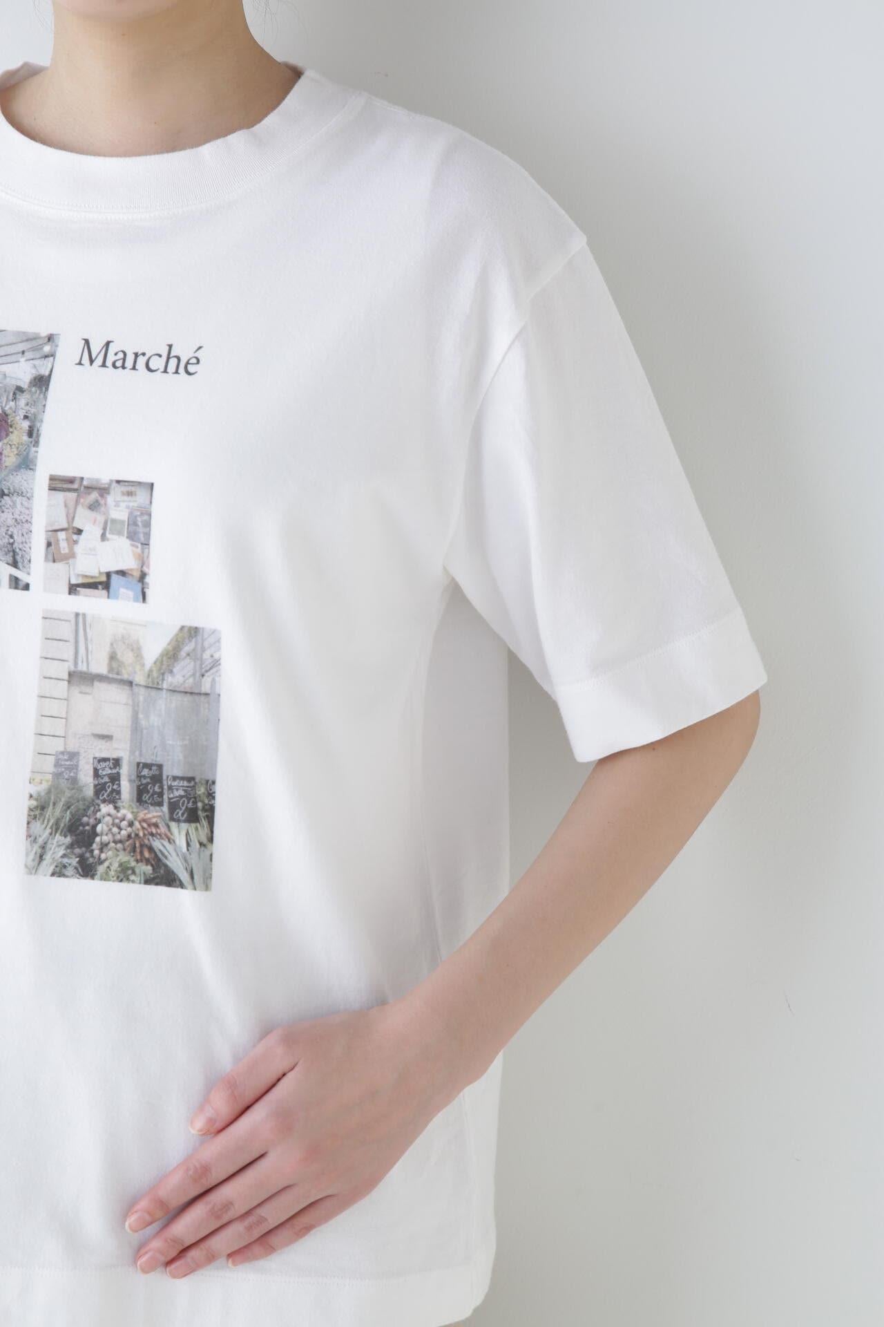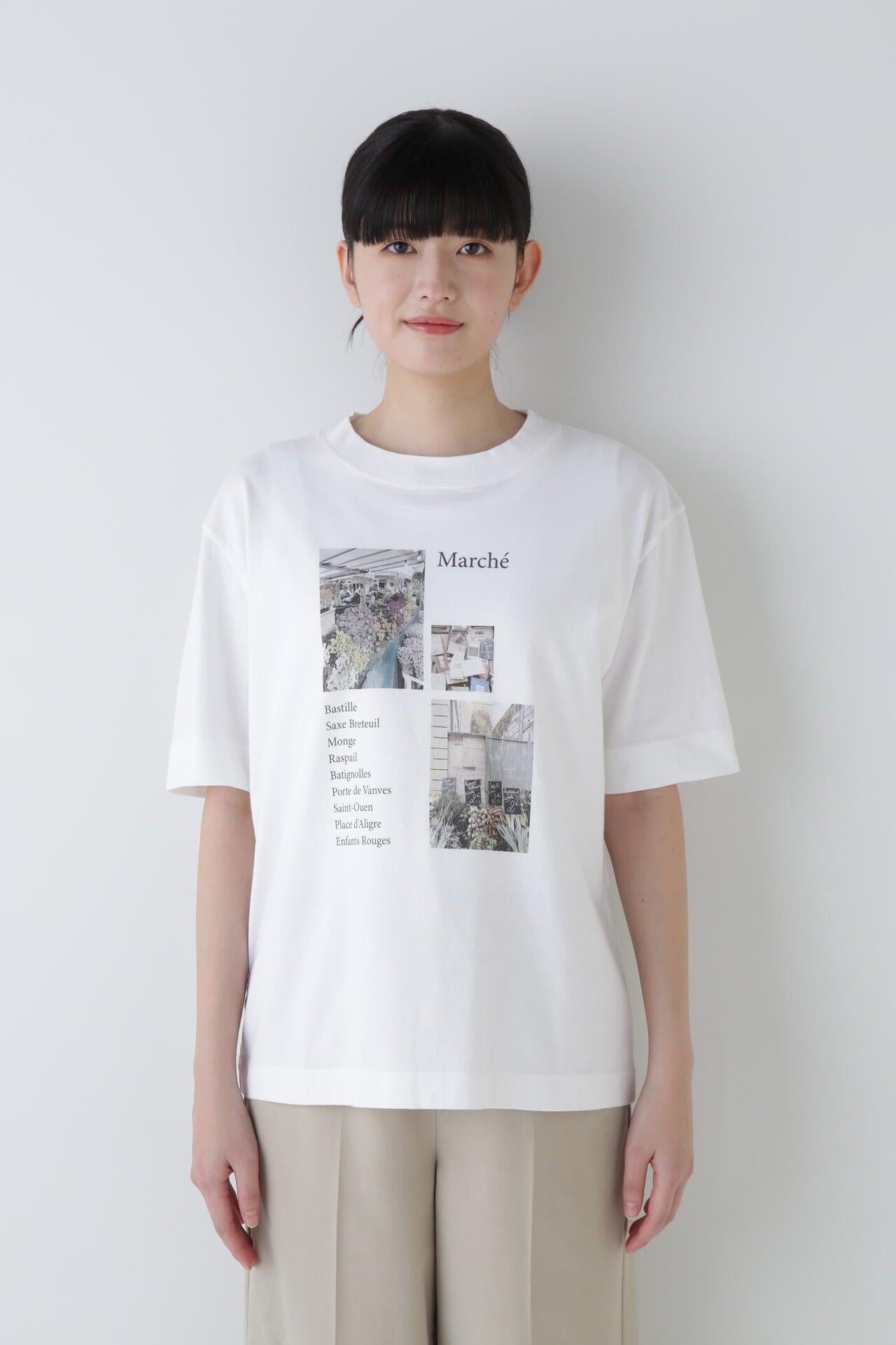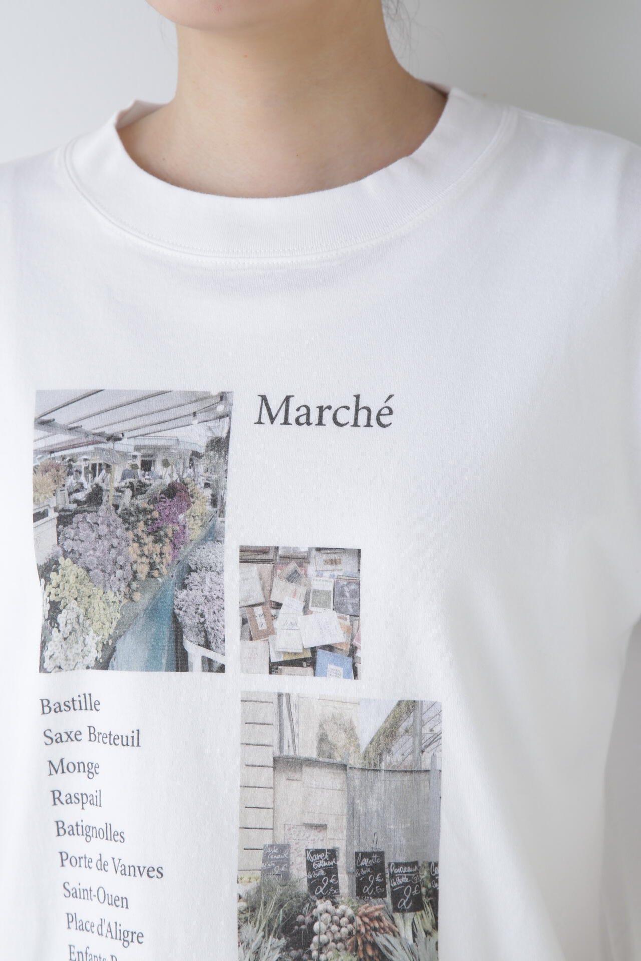 基本款寬鬆 T 恤上印有設計師拍攝的巴黎城市照片。咖啡館的照片上寫著 "歡迎光臨 Bienvenue"!在 "Marche "的照片上,印有巴黎一家👍商店的名稱作為標誌。