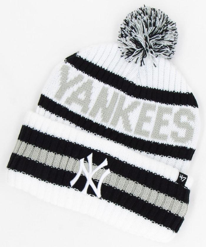 帶有 MLB 隊徽的季節性絨球小帽。