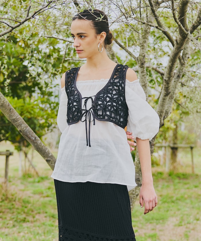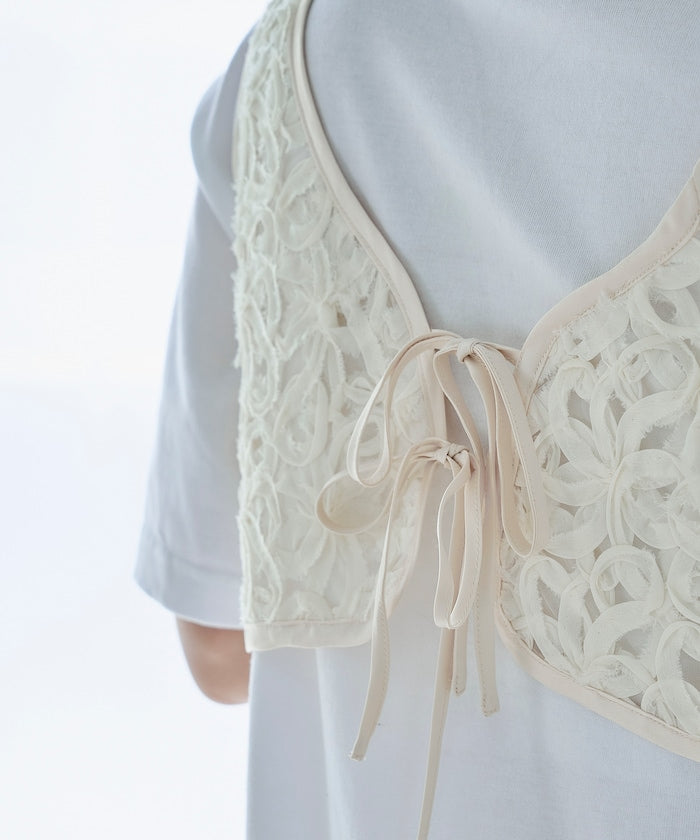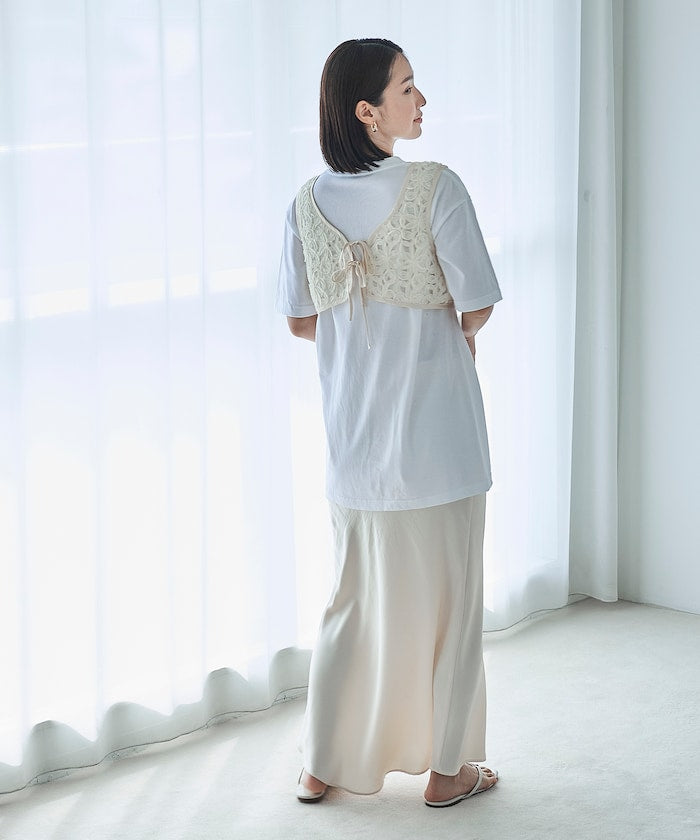 設計有前後兩種穿法。當作為上衣穿著時,背後還有一個蝴蝶結。