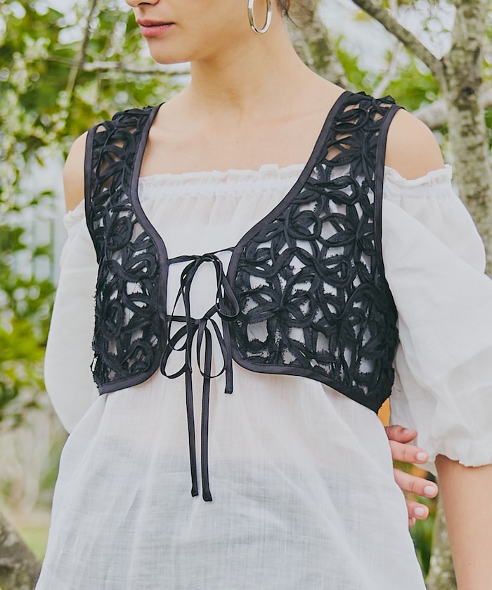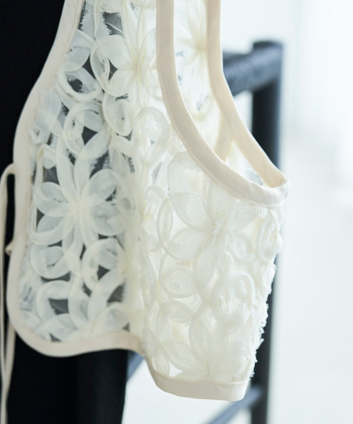 採用條紋蕾絲面料,帶有獨特的立體起伏帶。