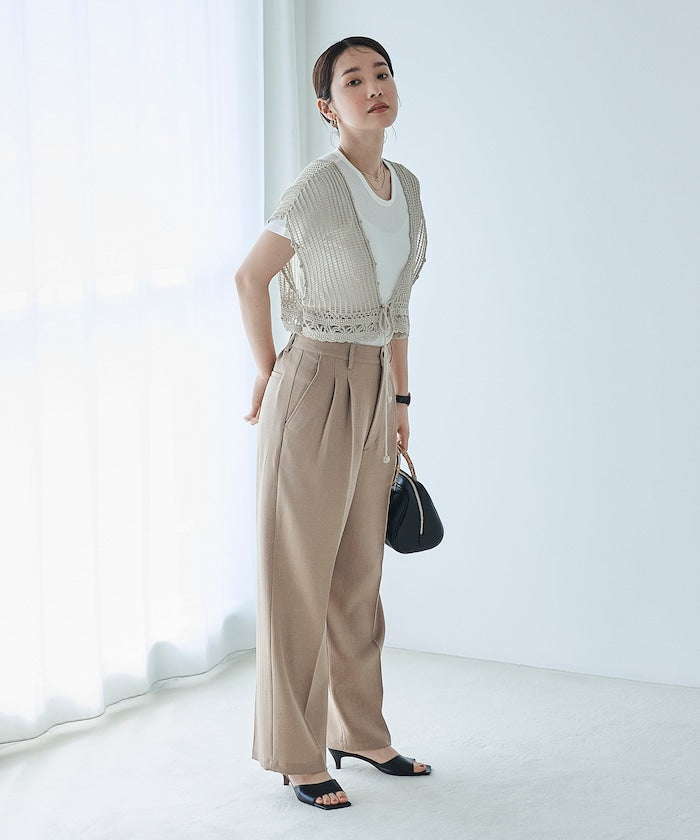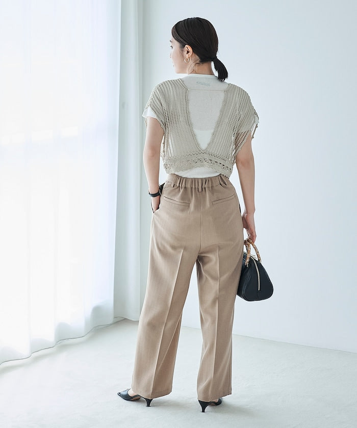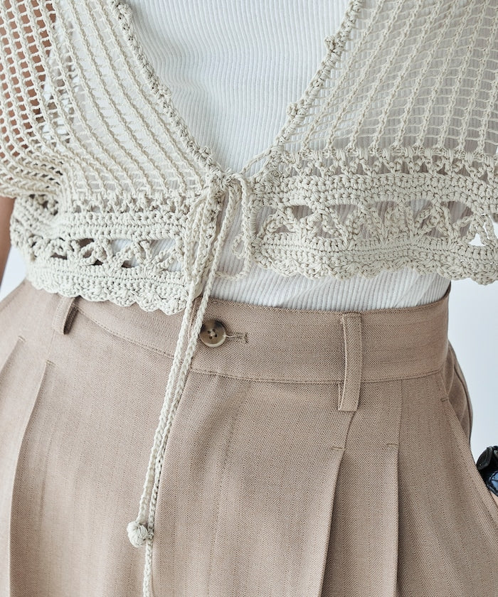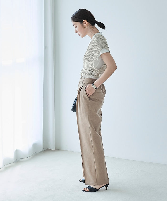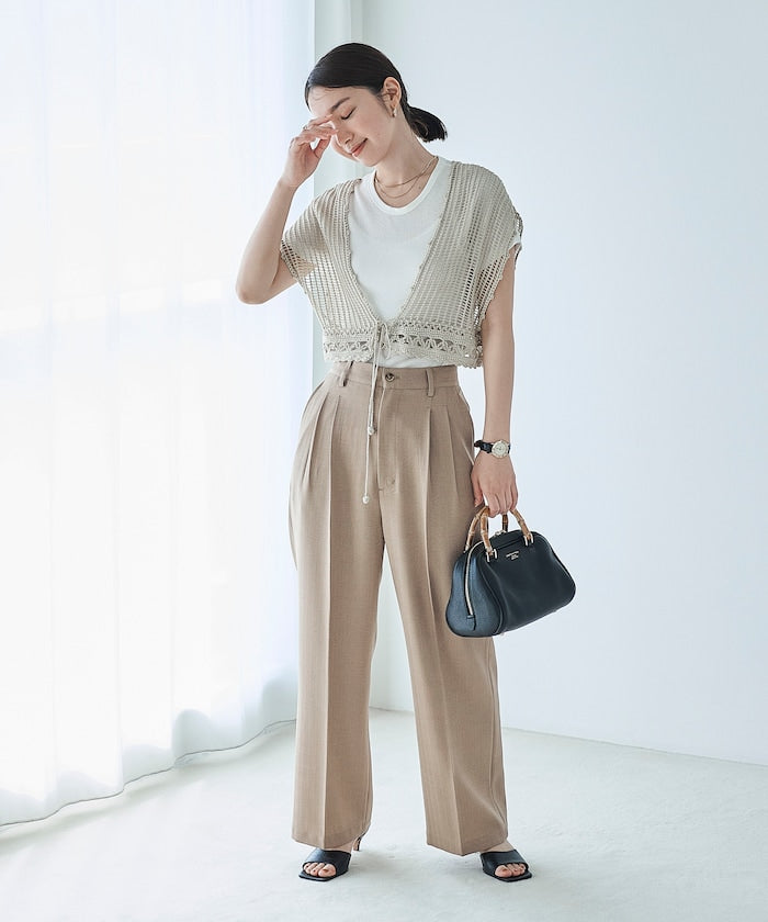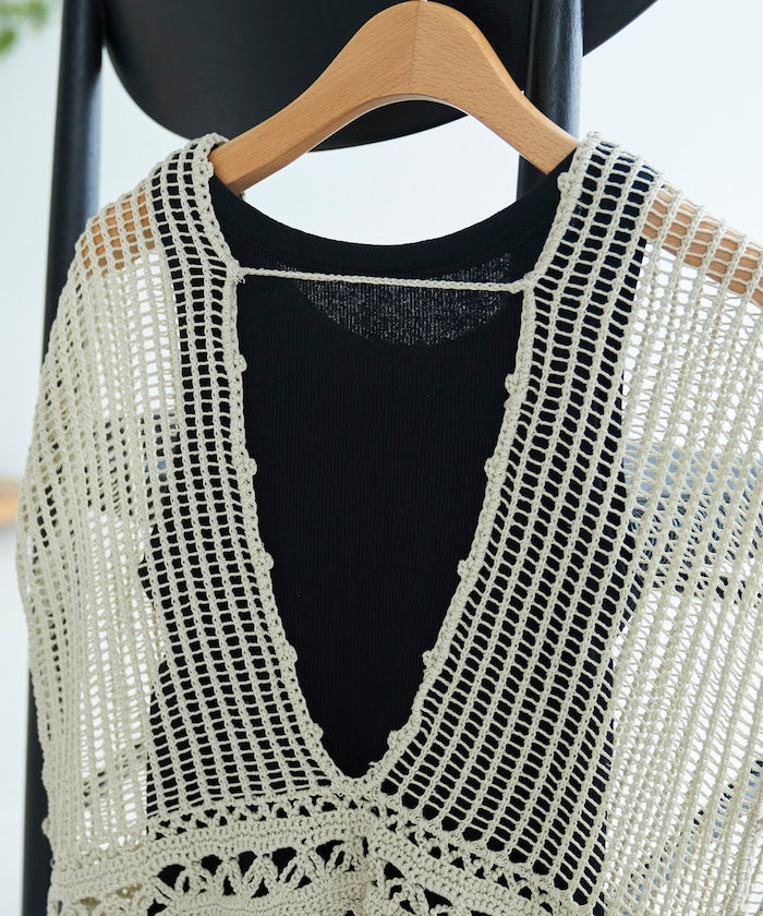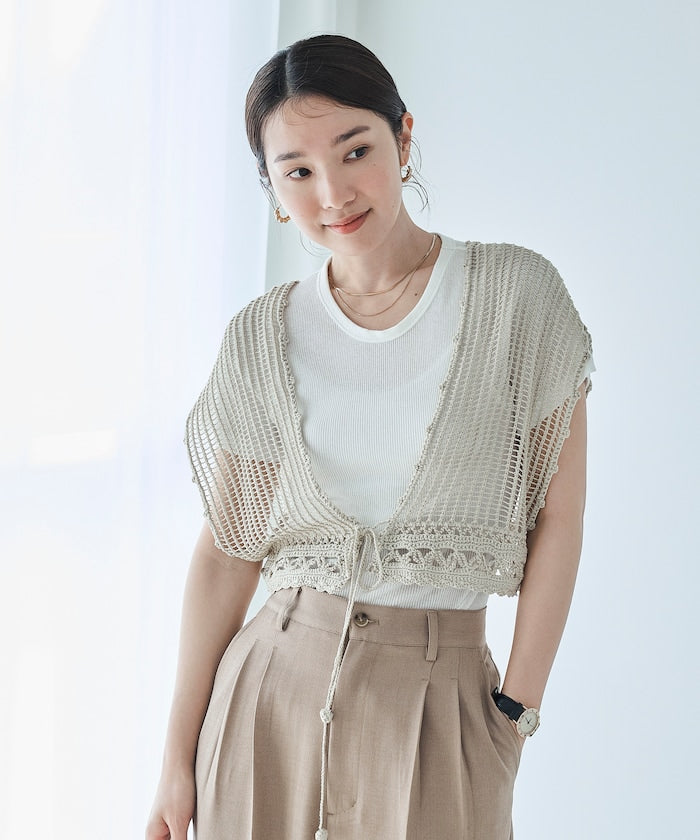 這款馬甲採用清爽的亞麻混紡紗線,並結合了多種針織面料。
