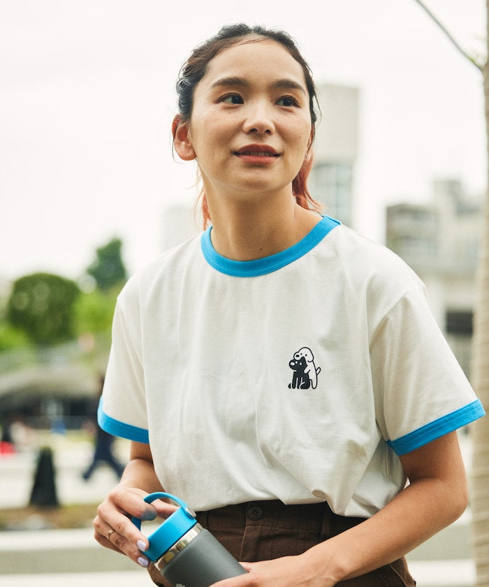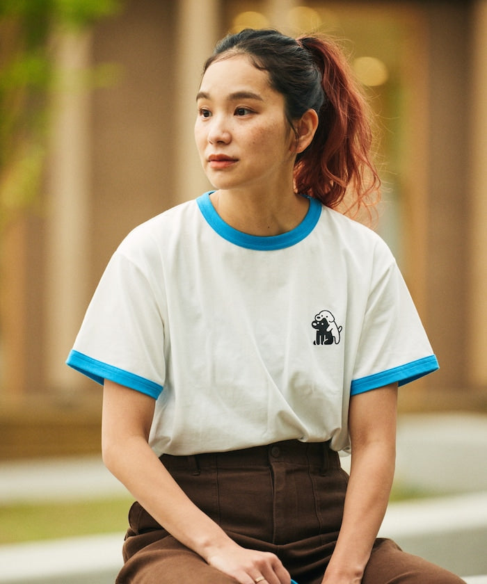 可愛的小狗靠牆設計是 "YOSHO "T恤的典範!這是一款單點 T 恤,可愛的狗狗靠牆設計。