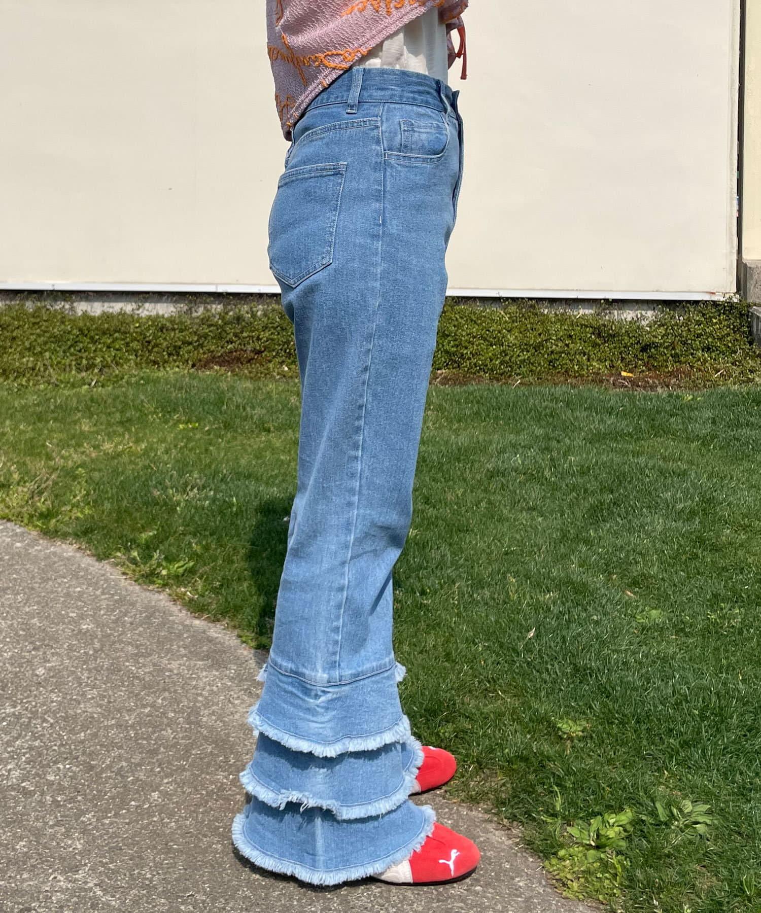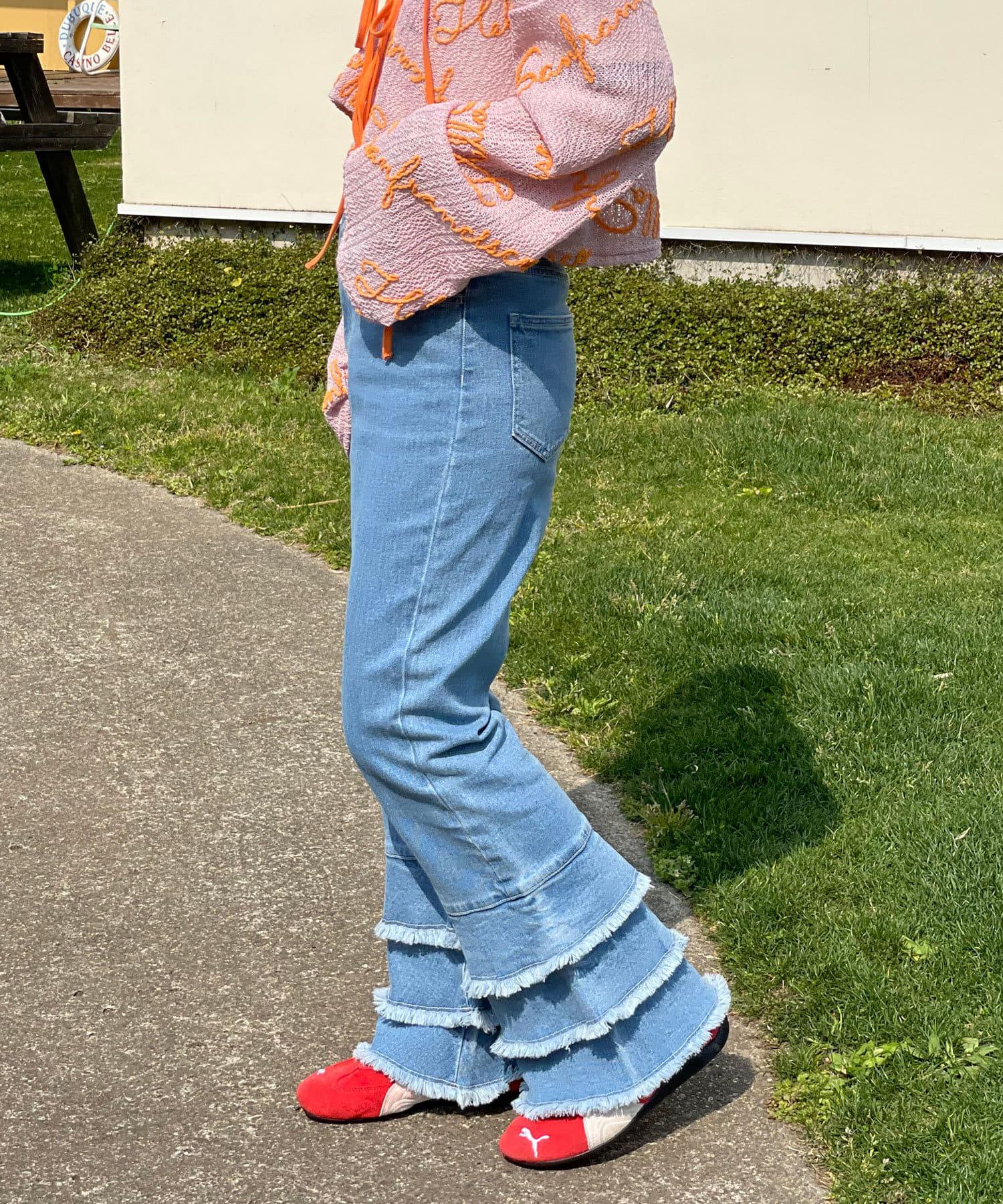 5/1(星期四)10:00開始【HELLO.SANFRANCISCO/你好,舊金山】下襬荷葉邊喇叭牛仔褲