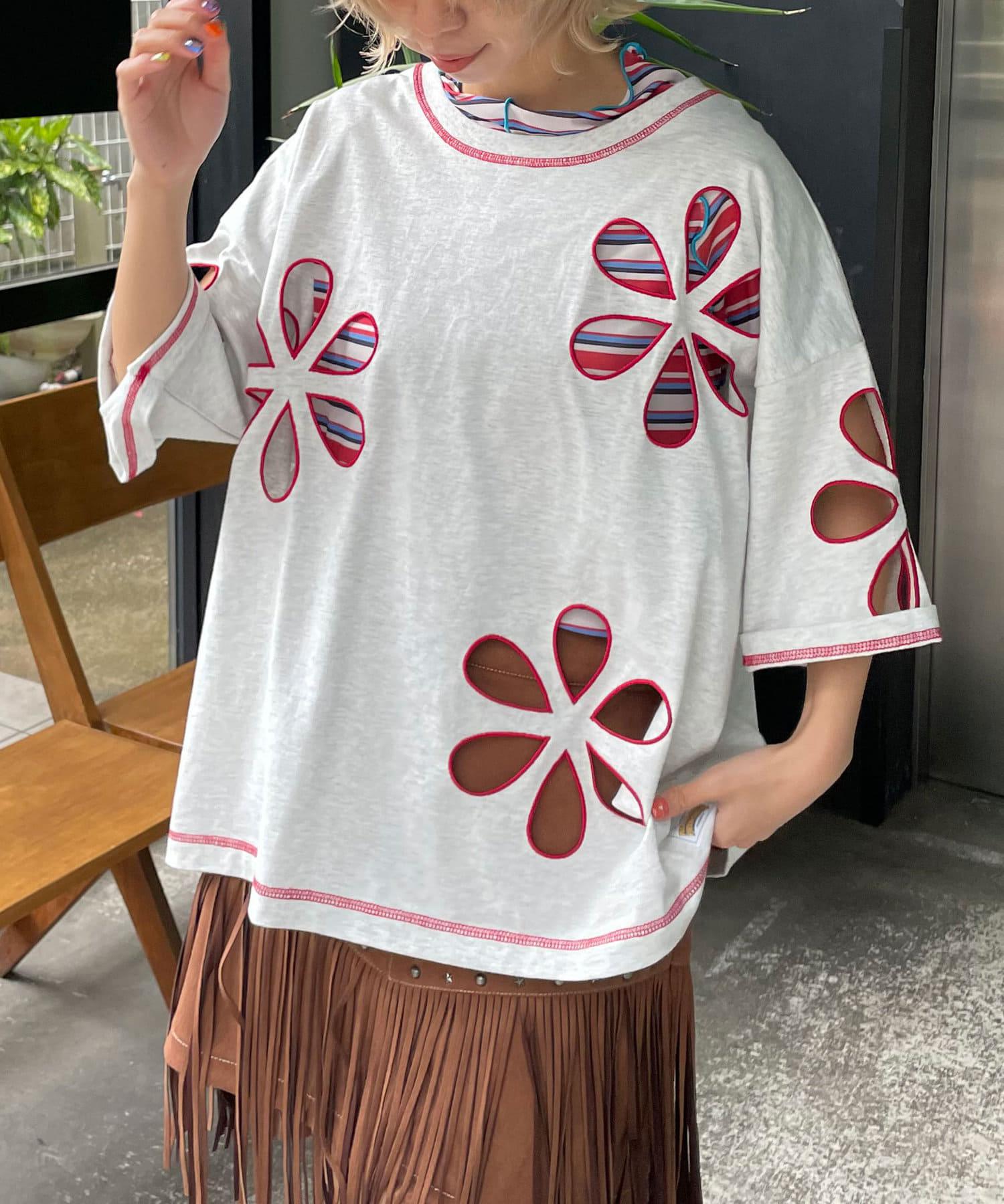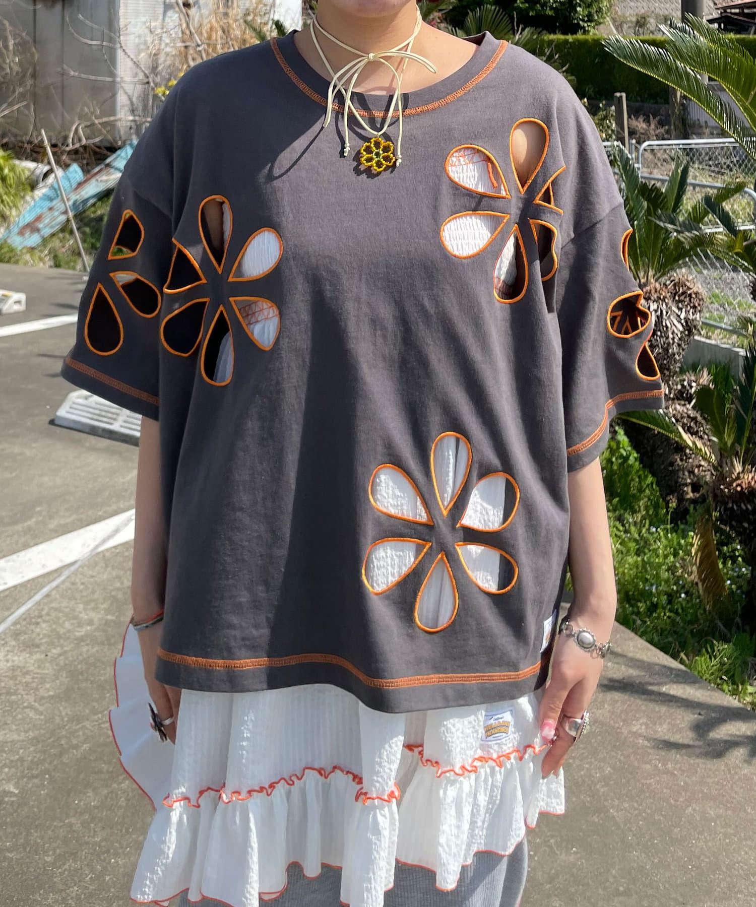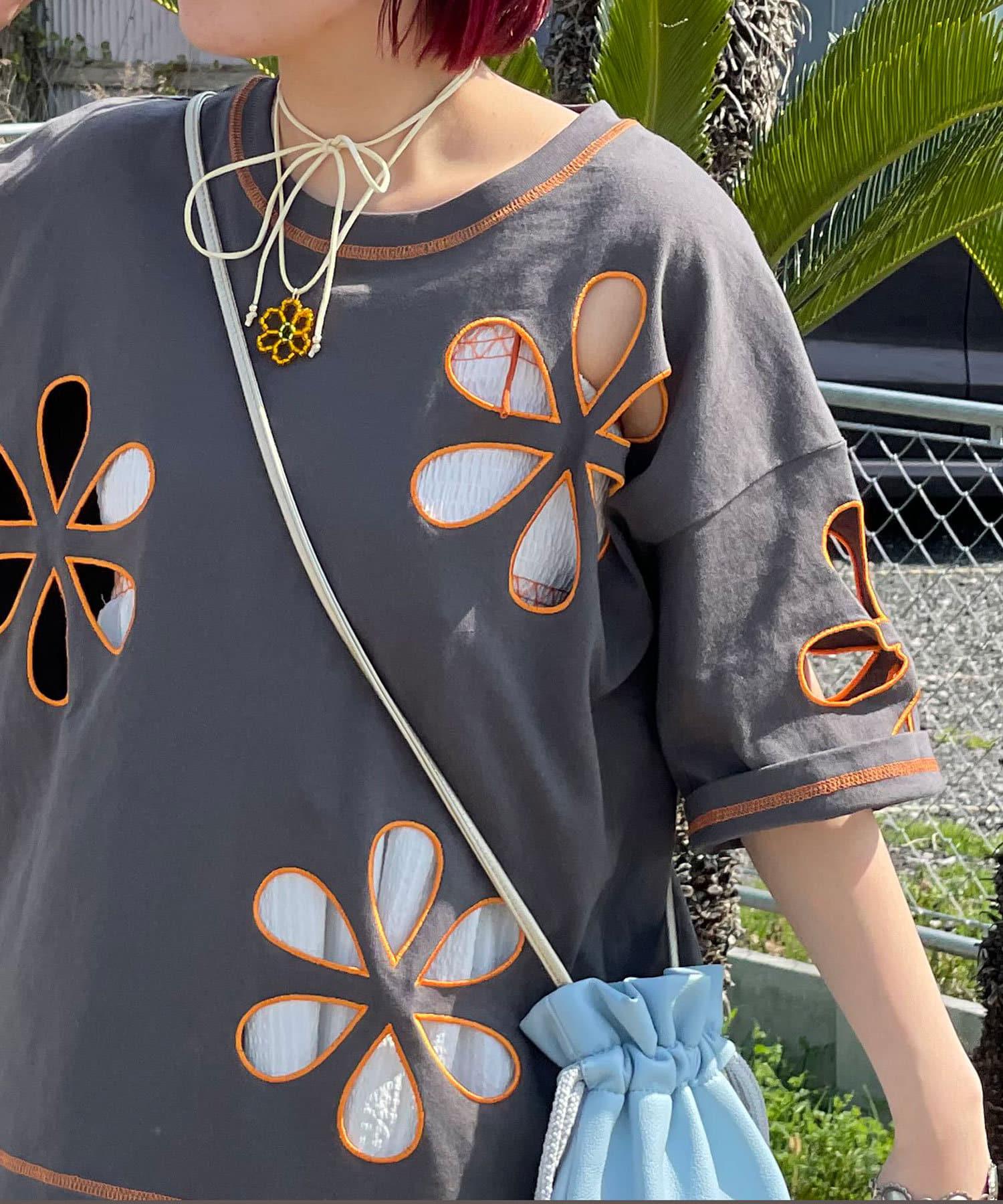 設計 T 恤,通身花卉鏤空,氣場十足。