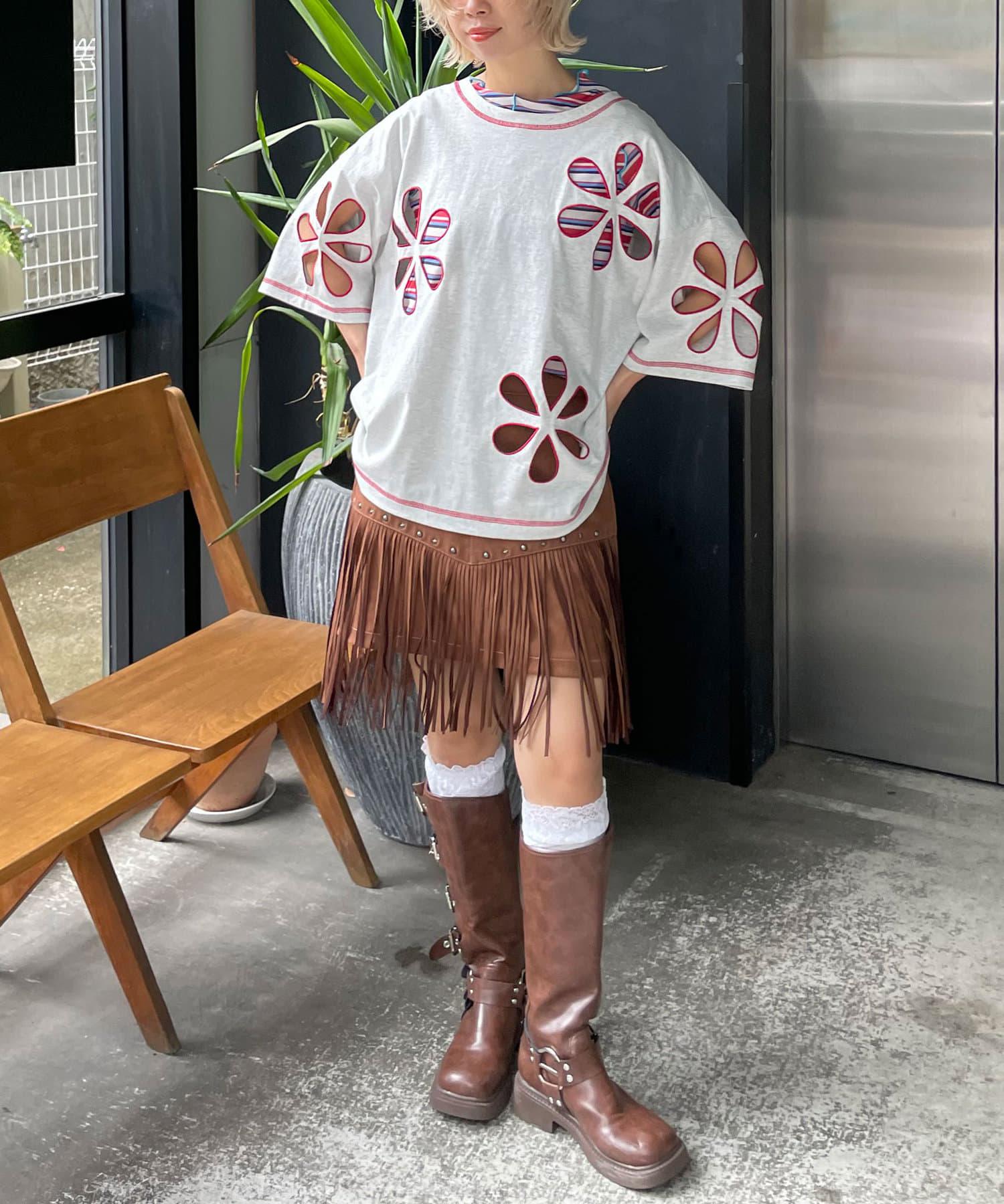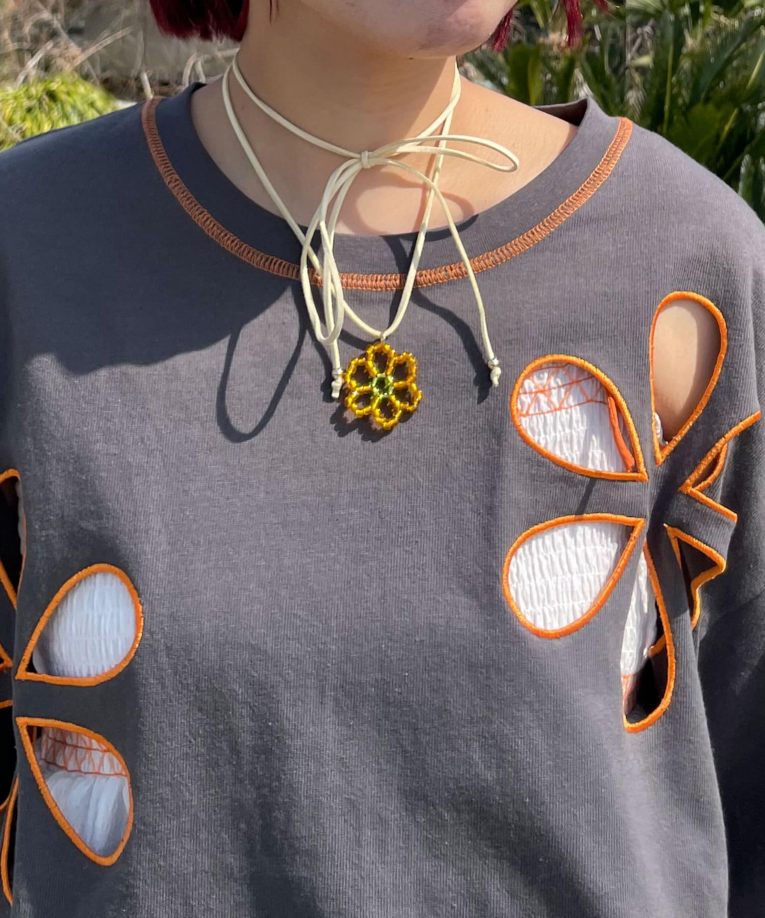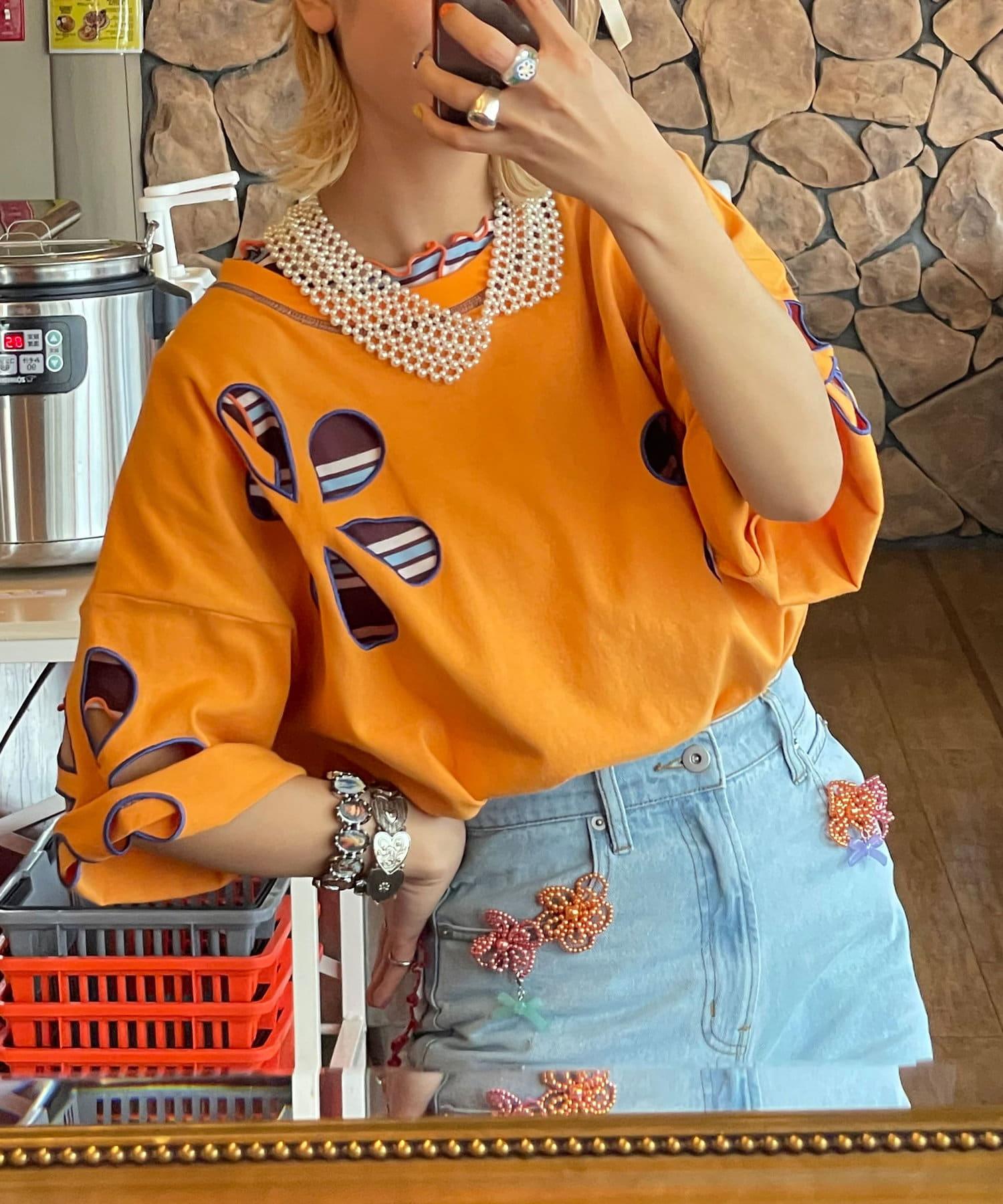 設計 T 恤,通身花卉鏤空,氣場十足。