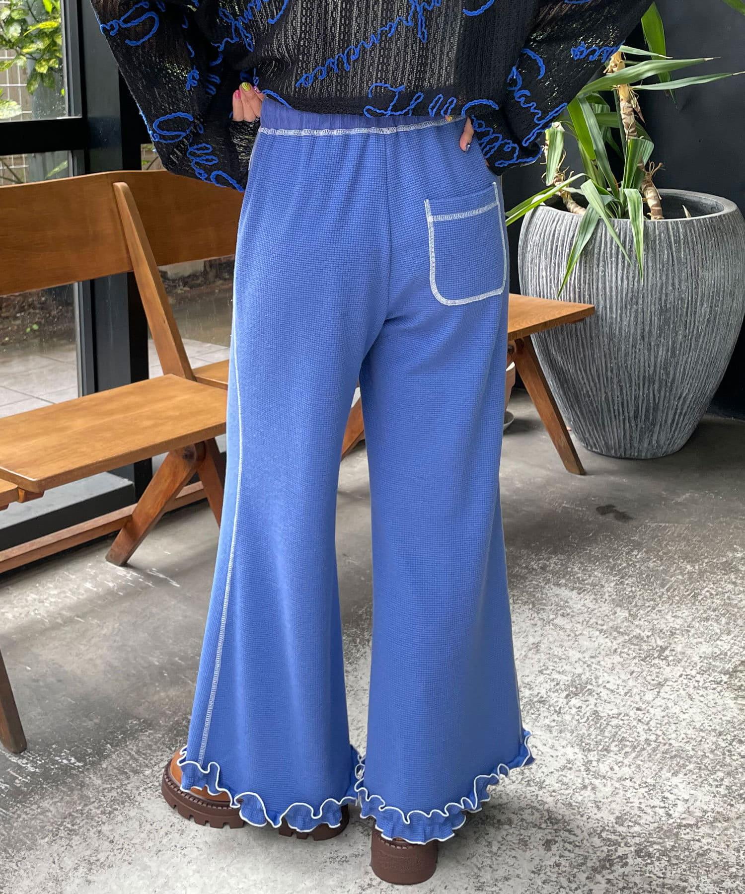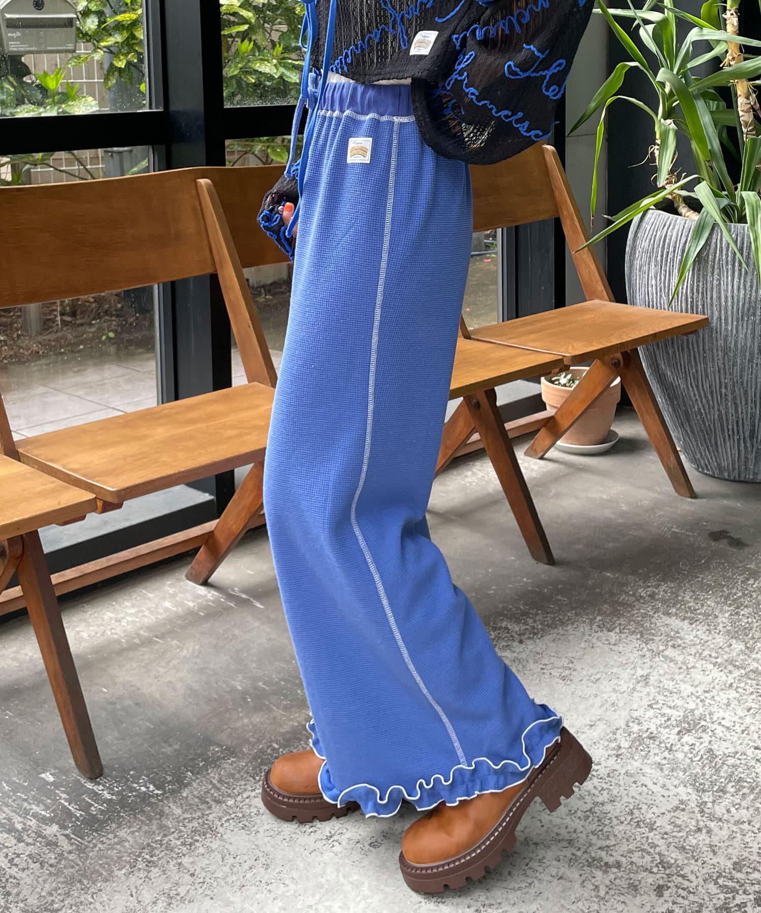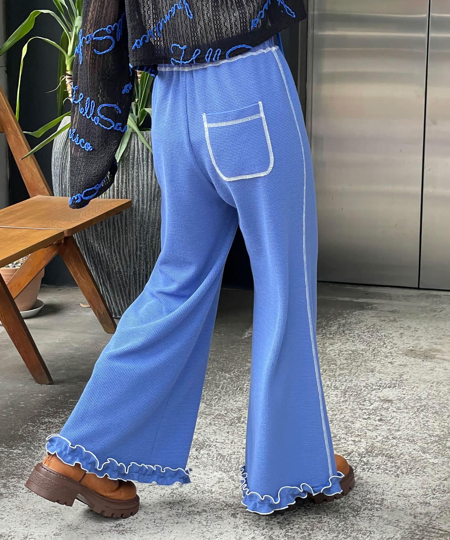 華夫格面料喇叭褲,既輕鬆又時尚,讓人每天都想穿。