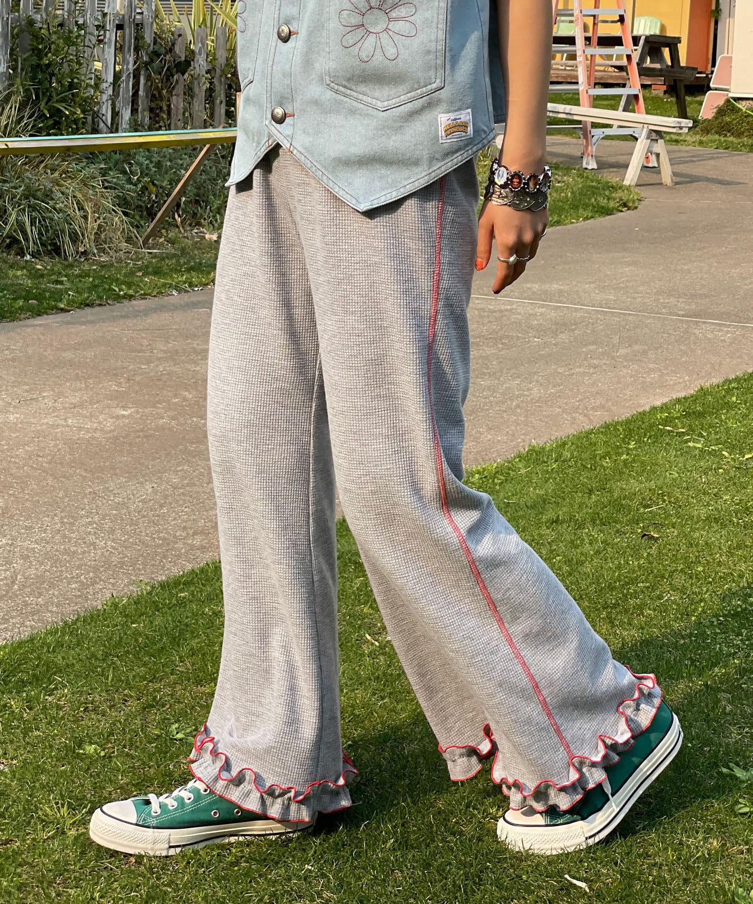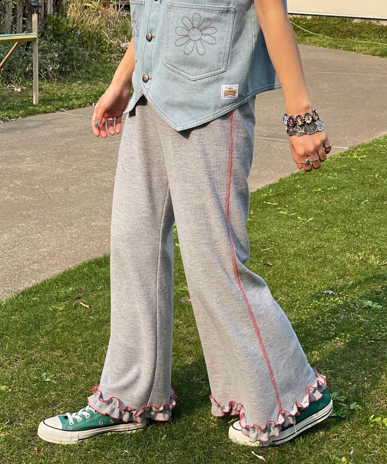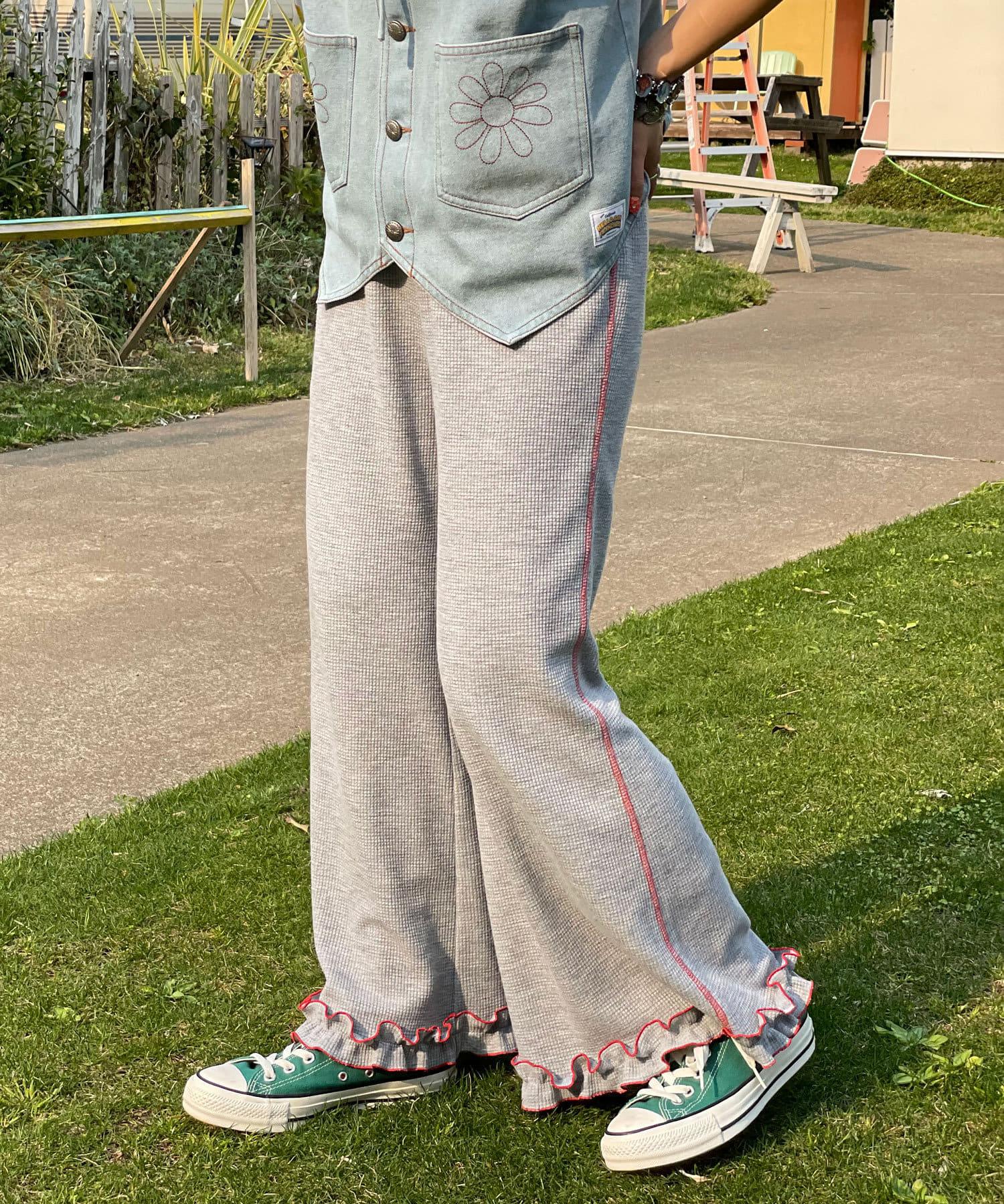 華夫格面料喇叭褲,既輕鬆又時尚,讓人每天都想穿。