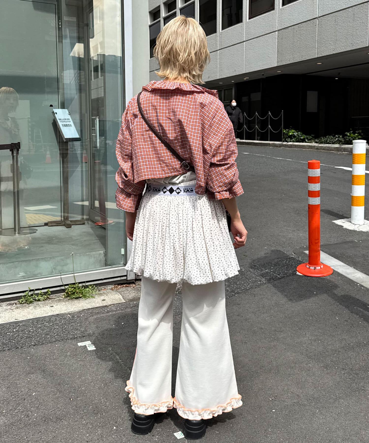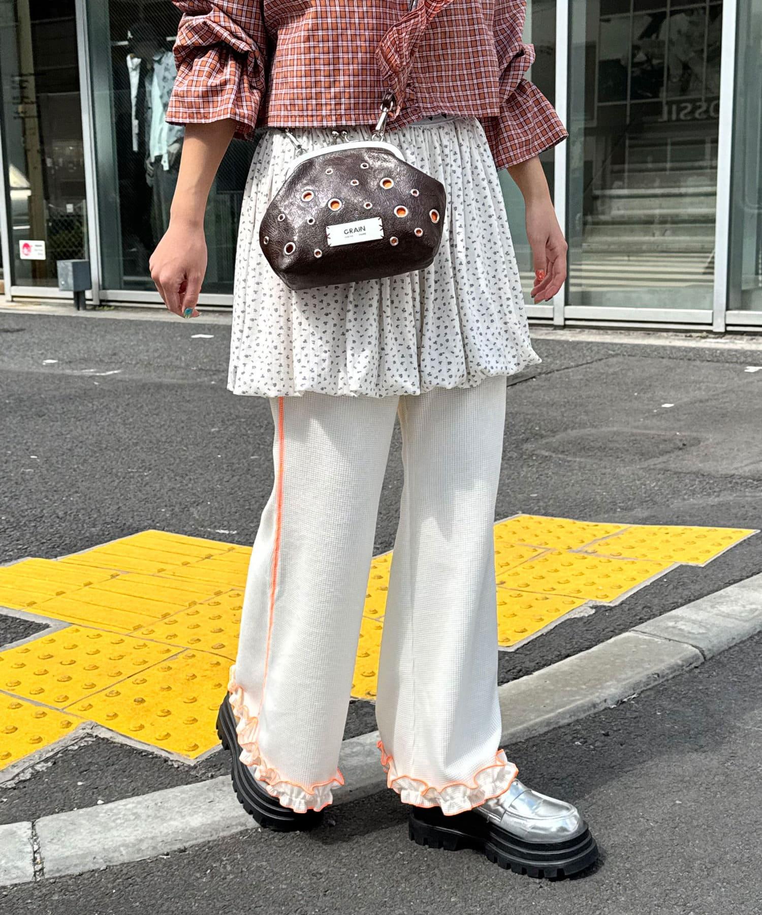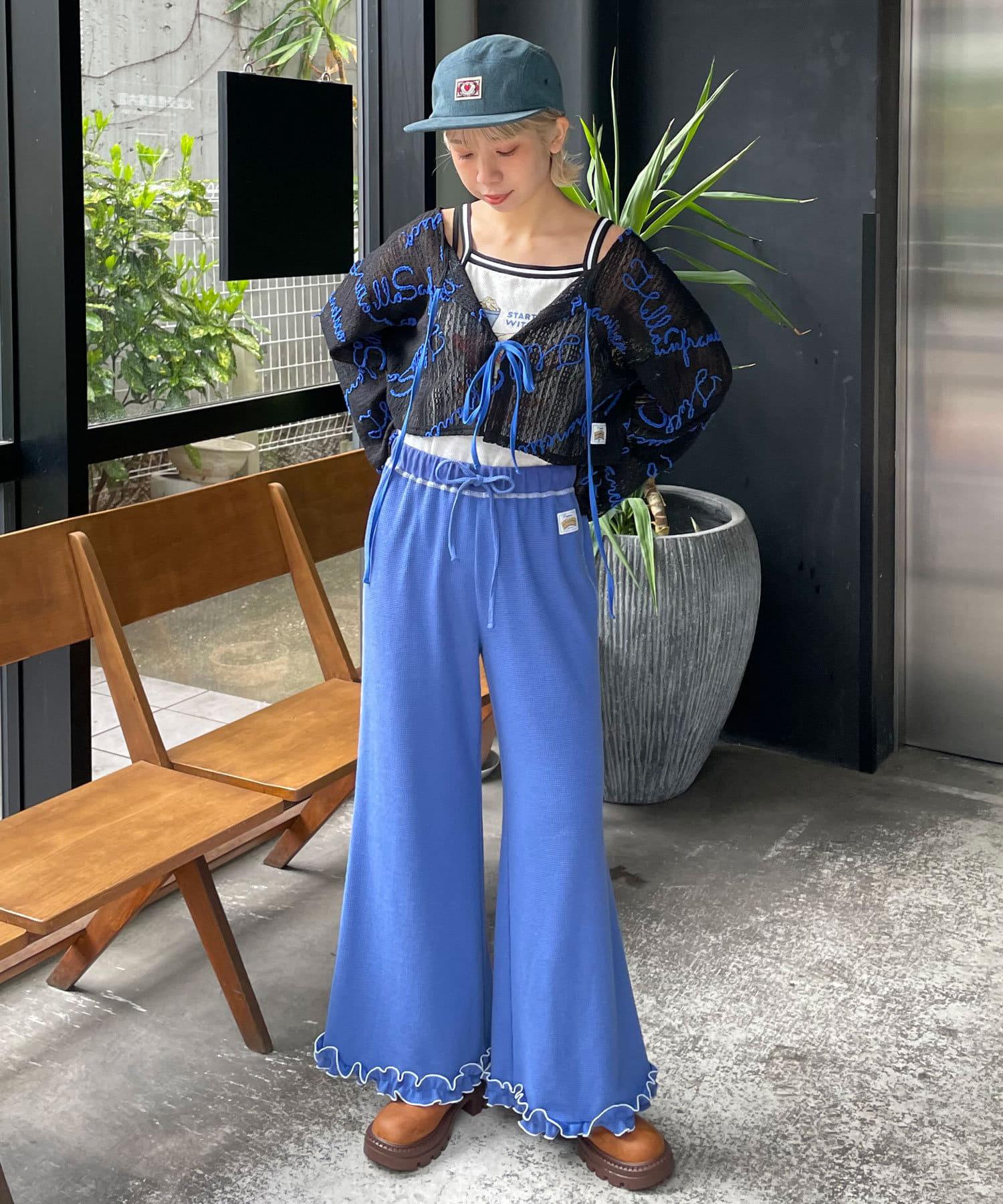 喇叭廓形適度展開,使腿部線條更加簡潔,下襬處的圓潤流蘇更添點睛之筆。腰部完全鬆緊設計,穿著毫無壓力。