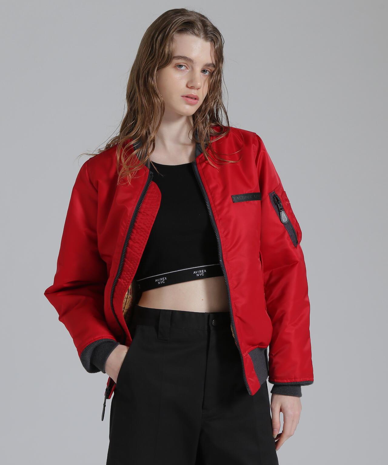 特別版 MA-1 配有 50 週年紀念 SIGNATURE 大徽標貼片,從 AVIREX 檔案中重新印製,採用大徽標貼片設計,標準厚尼龍外層面料,內襯採用 AVIREX 熟悉的 MAP 圖案。外層材料是標準的厚尼龍材料,內襯採用了 AVIREX 飛行皮革中熟悉的 MAP 圖案。雖然是紀念款,但可以作為標準款長期使用。AVIREX WOMAN] 該系列將正宗軍裝的功能性和設計感投射到女式休閒裝上。該系列面向聰明、自由、好奇、高貴和活潑的成年職業女性,是一個具有個性和永恆性的女裝品牌。