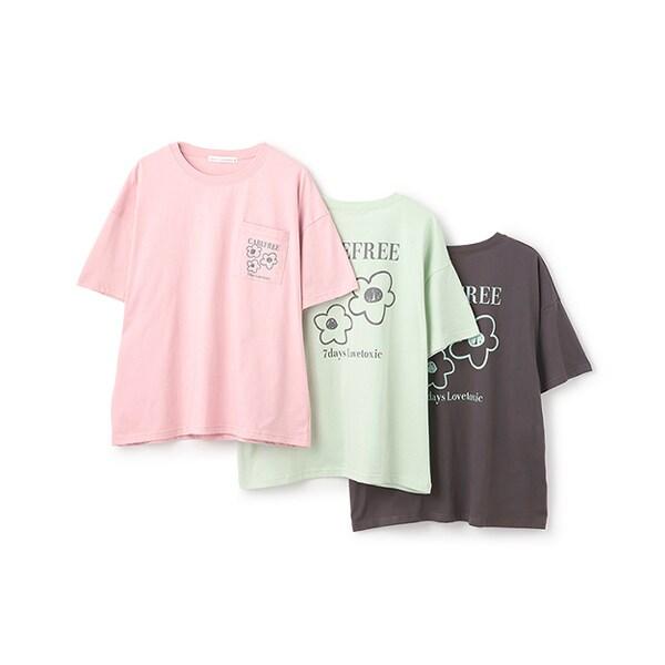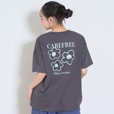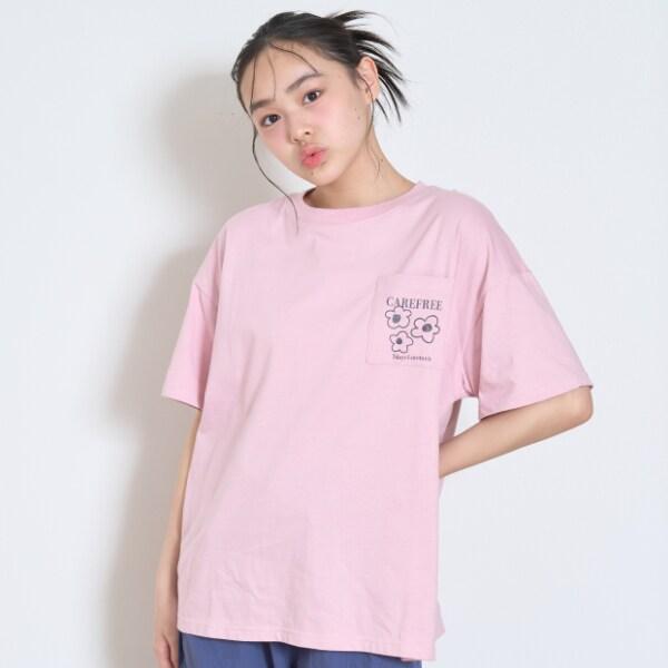 【7days】【純棉100%】花卉口袋寬鬆T恤