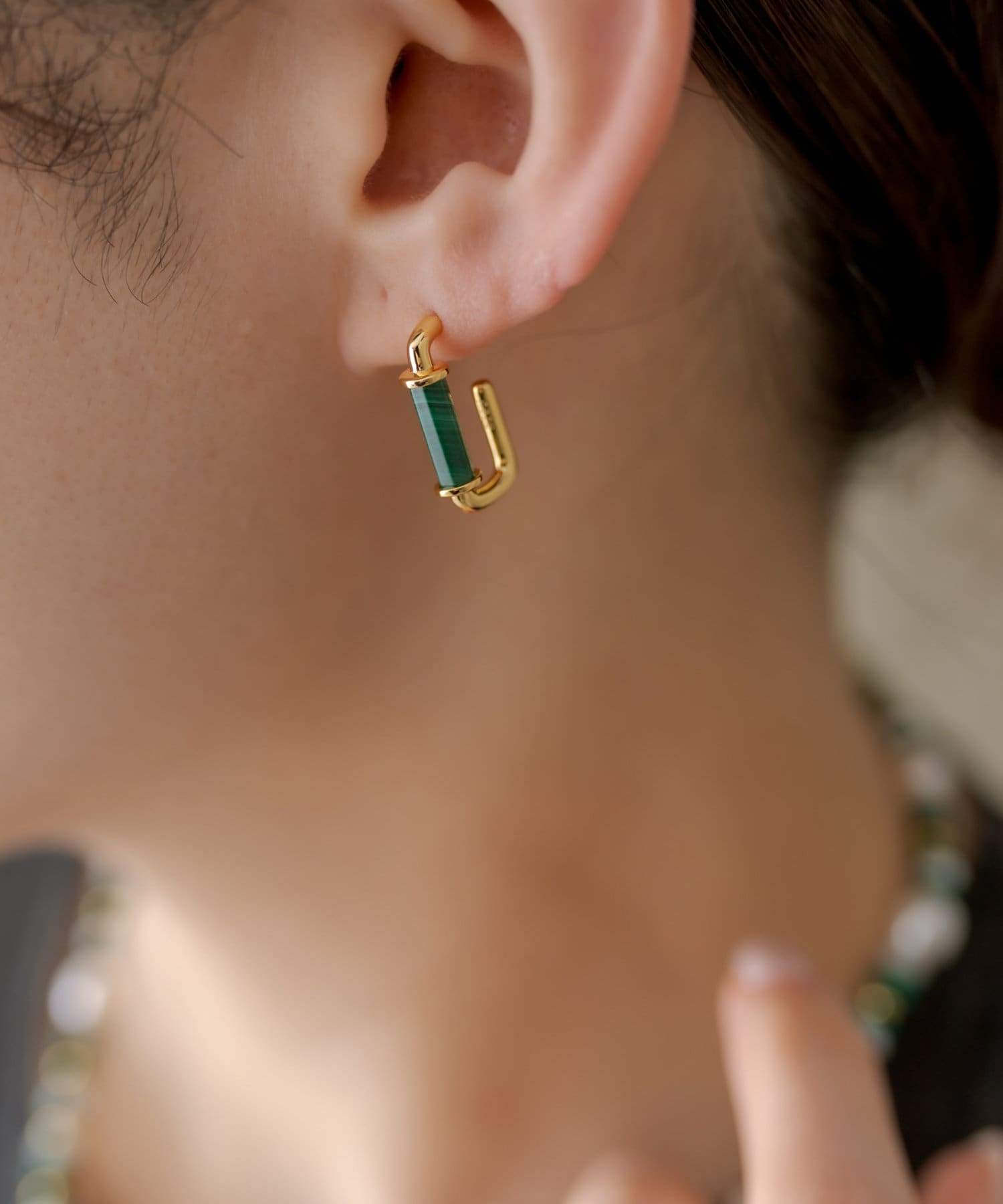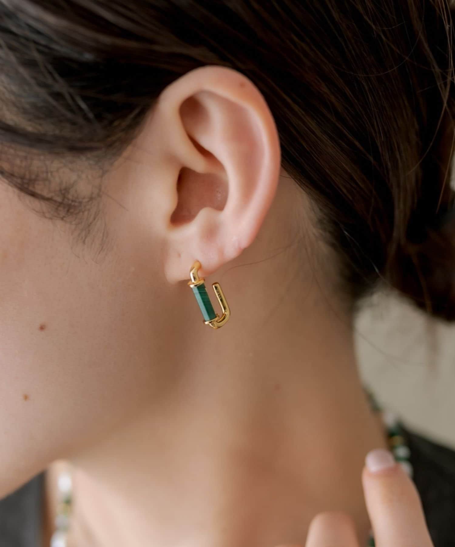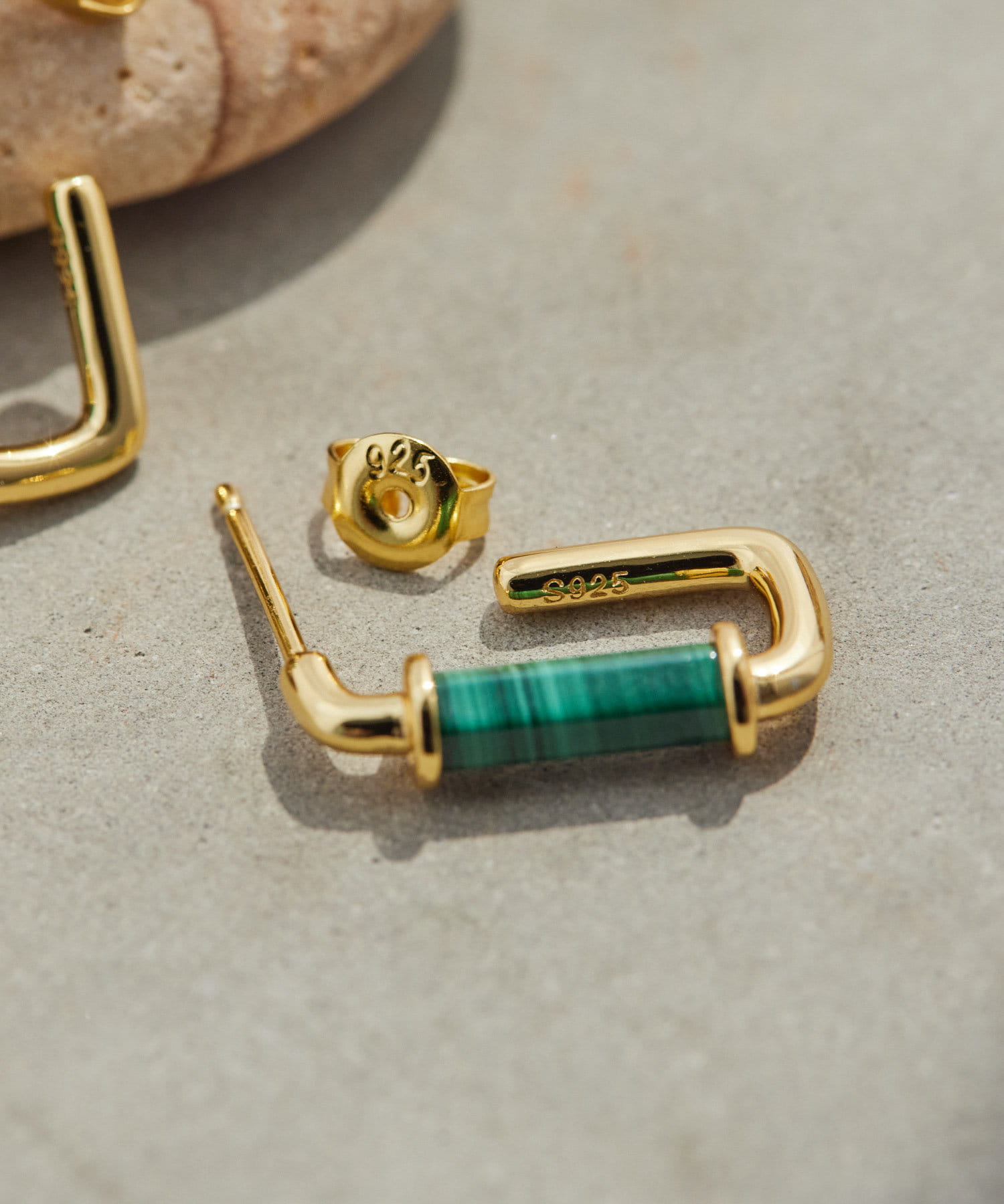 "925純銀材質/銀色耳釘" 綠色方形耳環