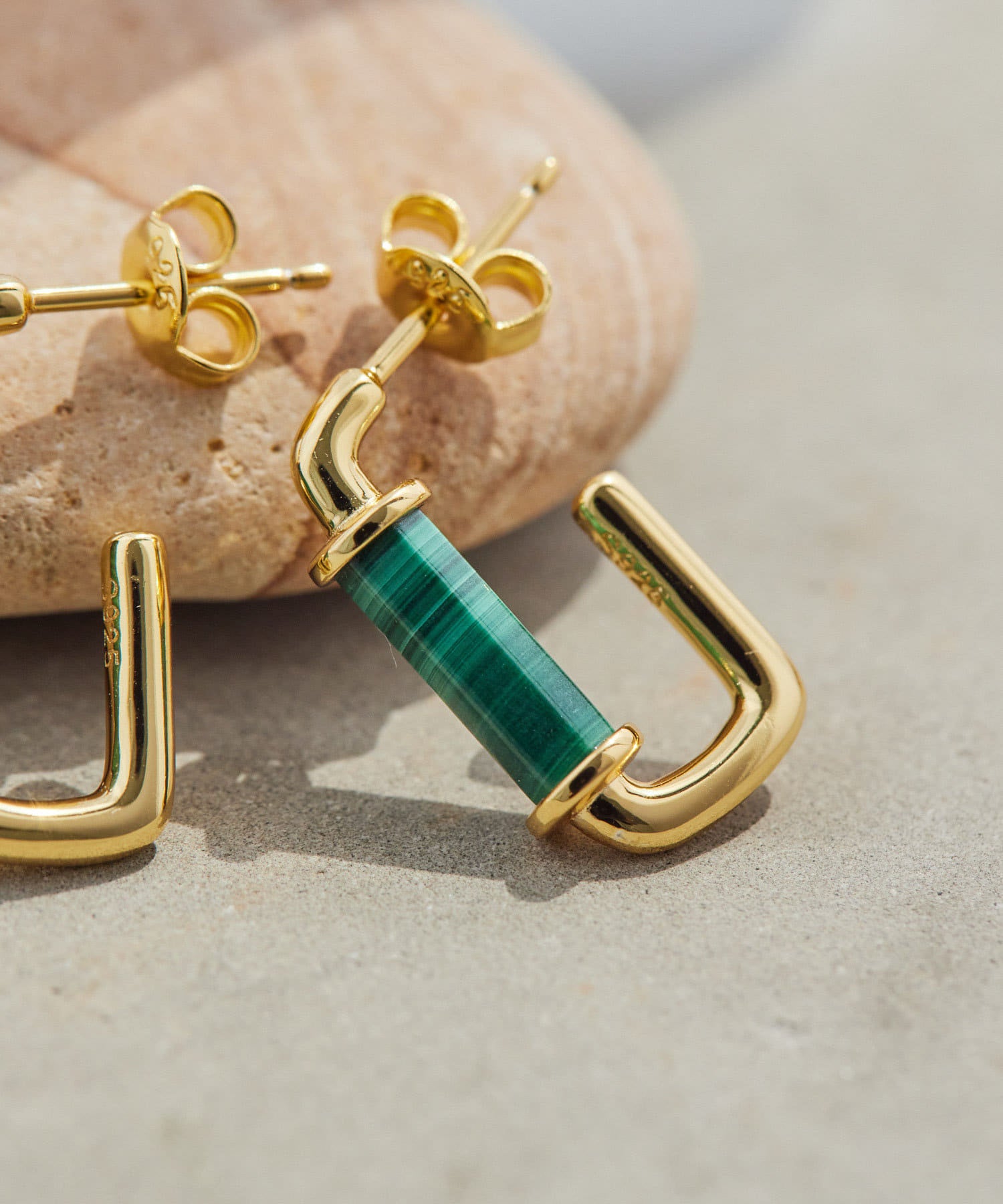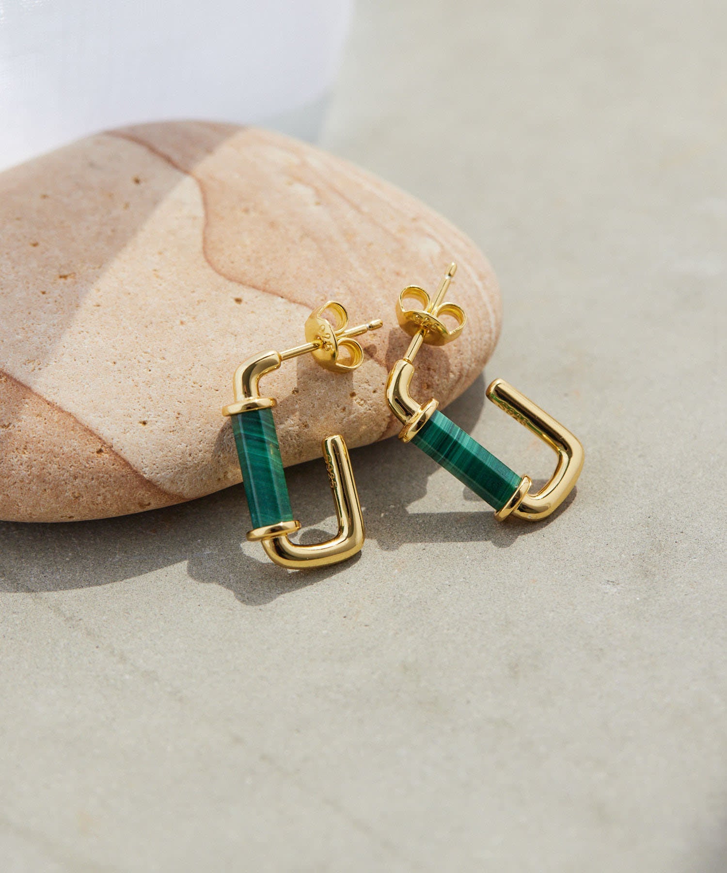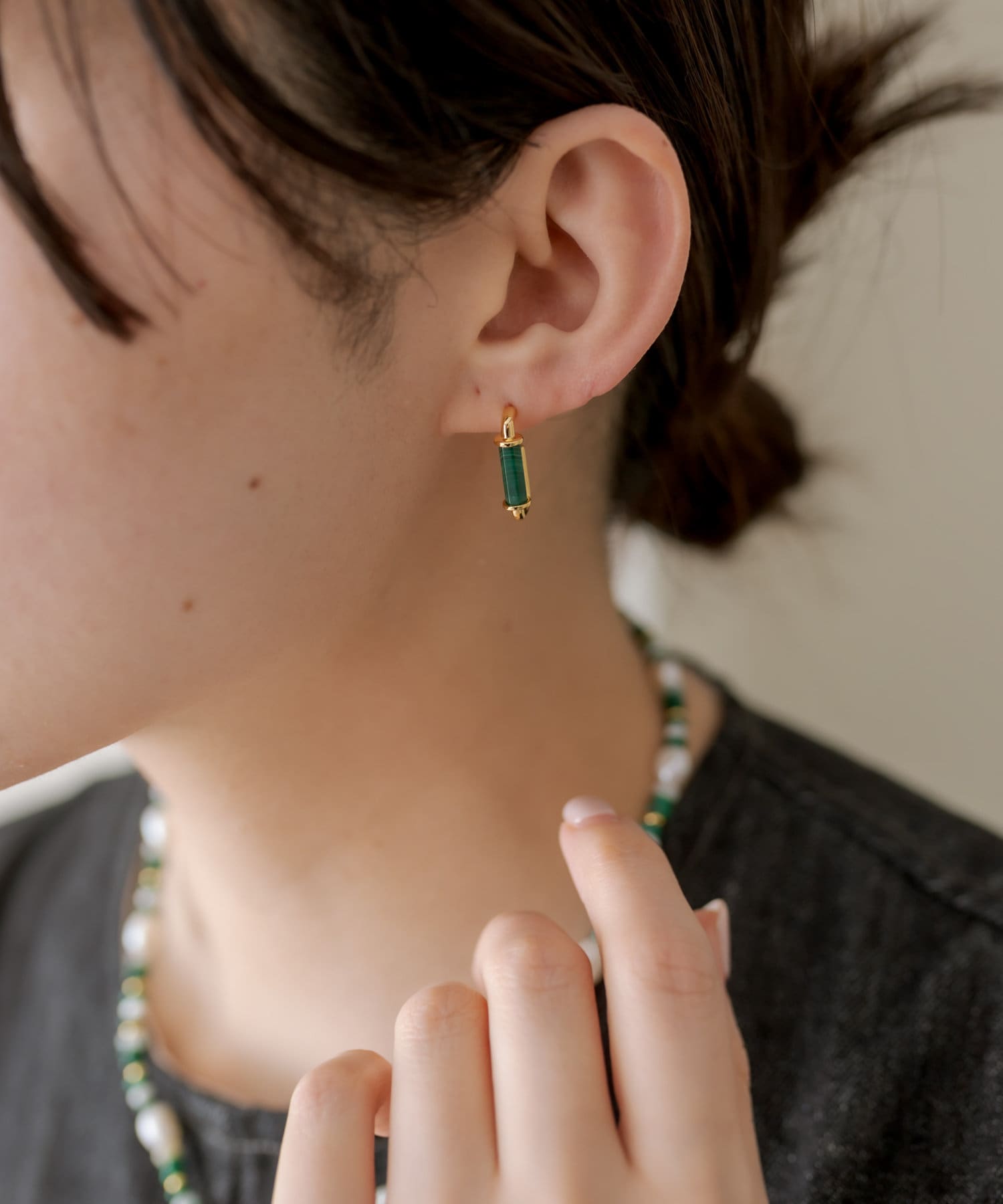 "925純銀材質/銀色耳釘" 綠色方形耳環