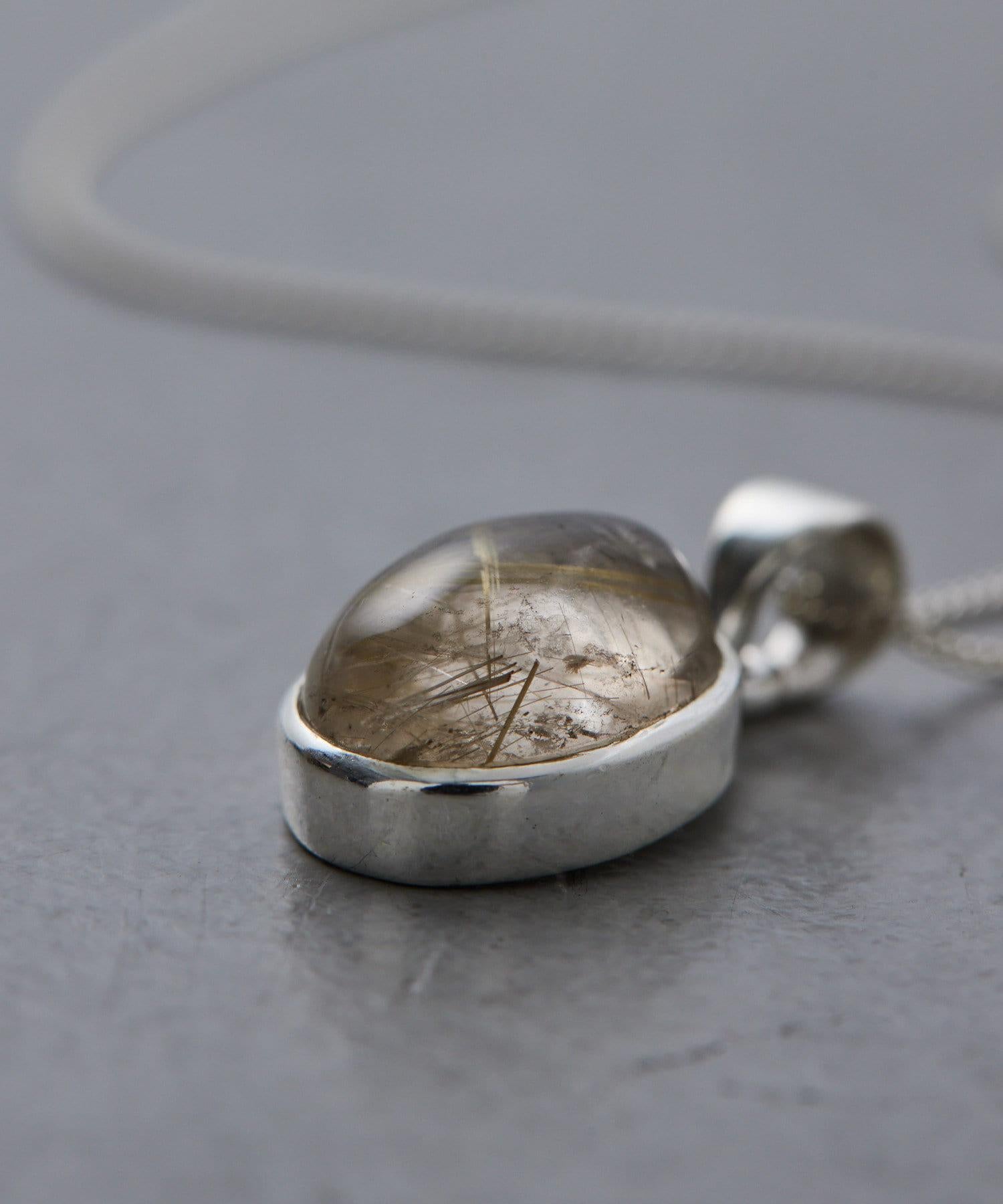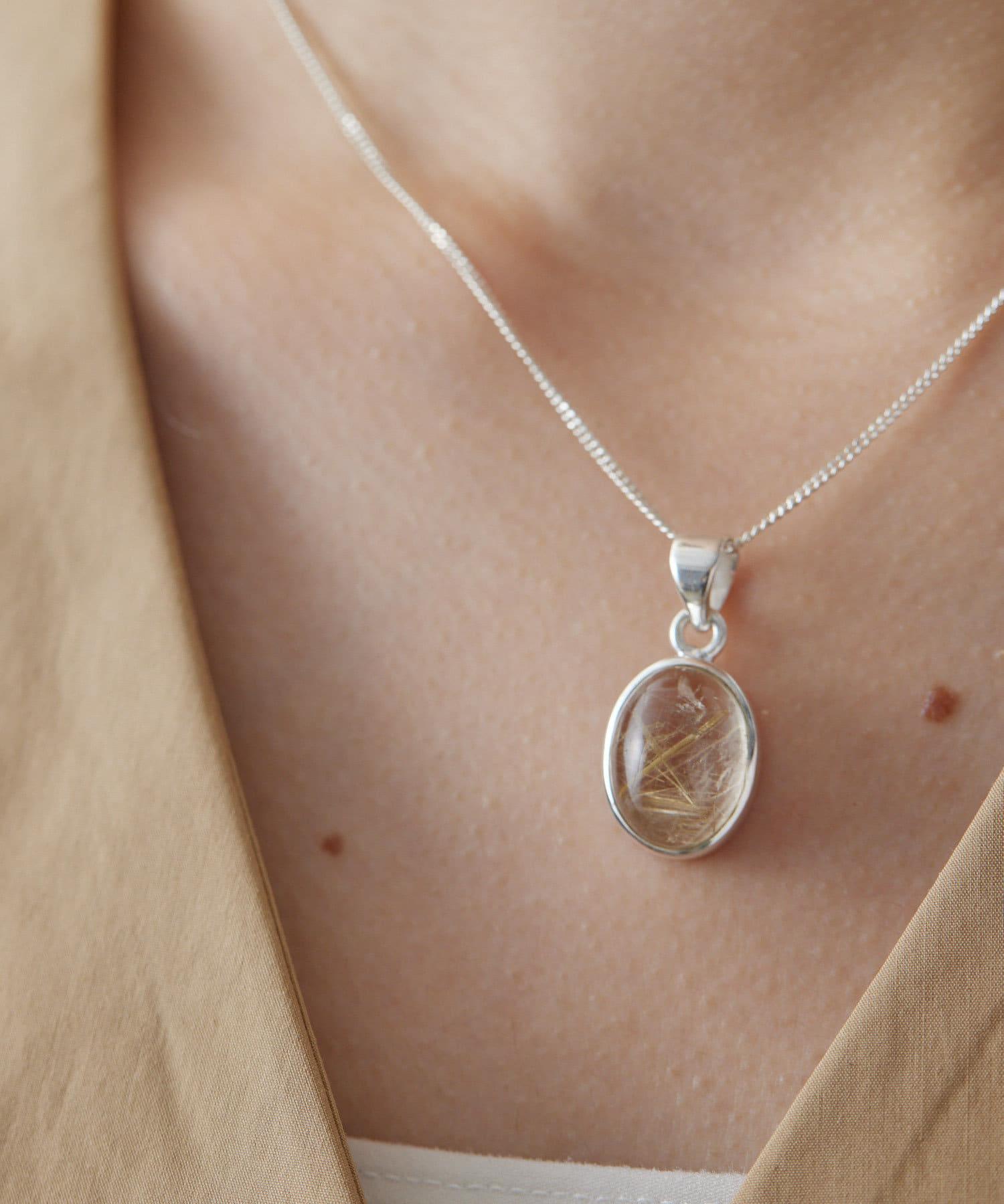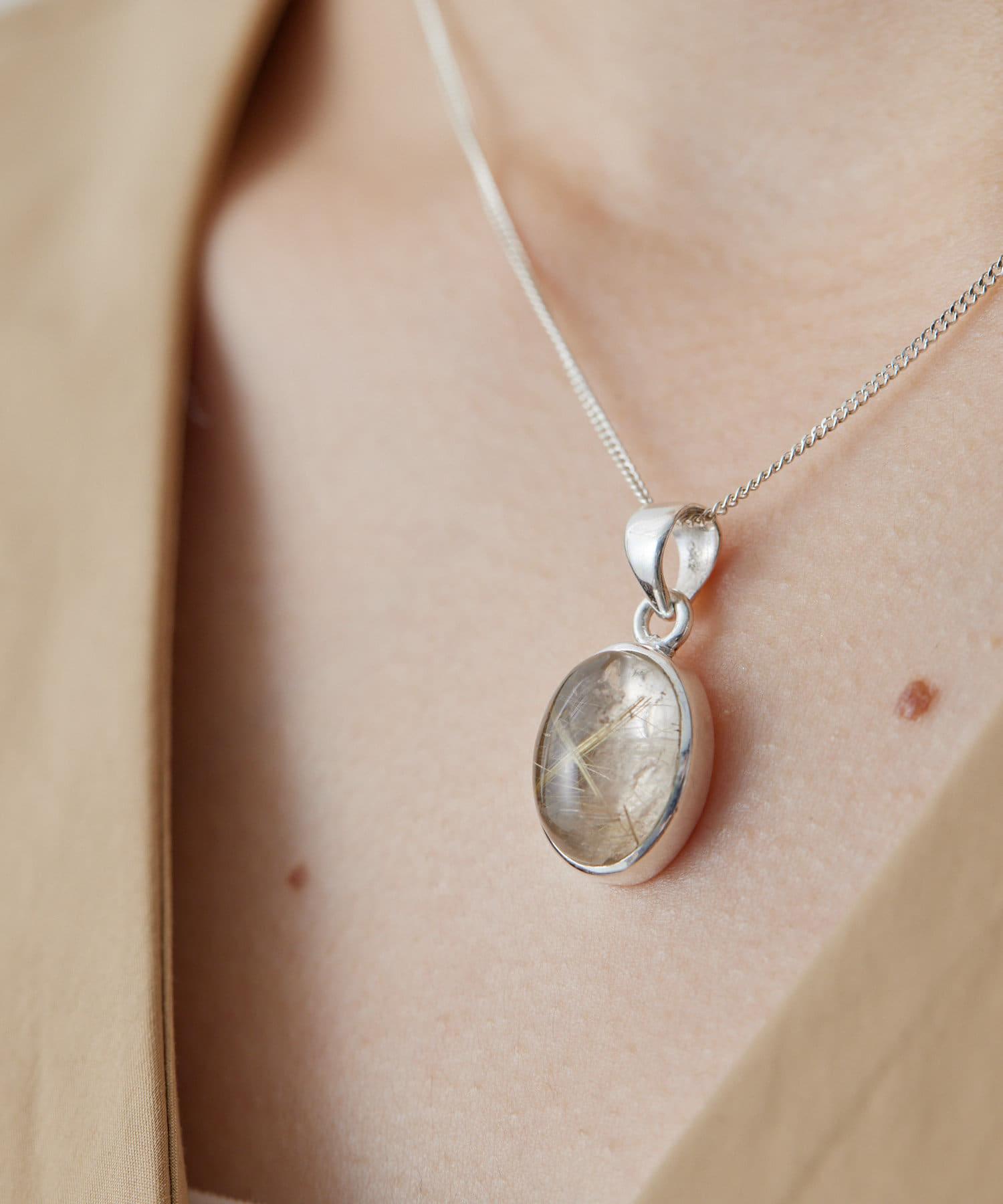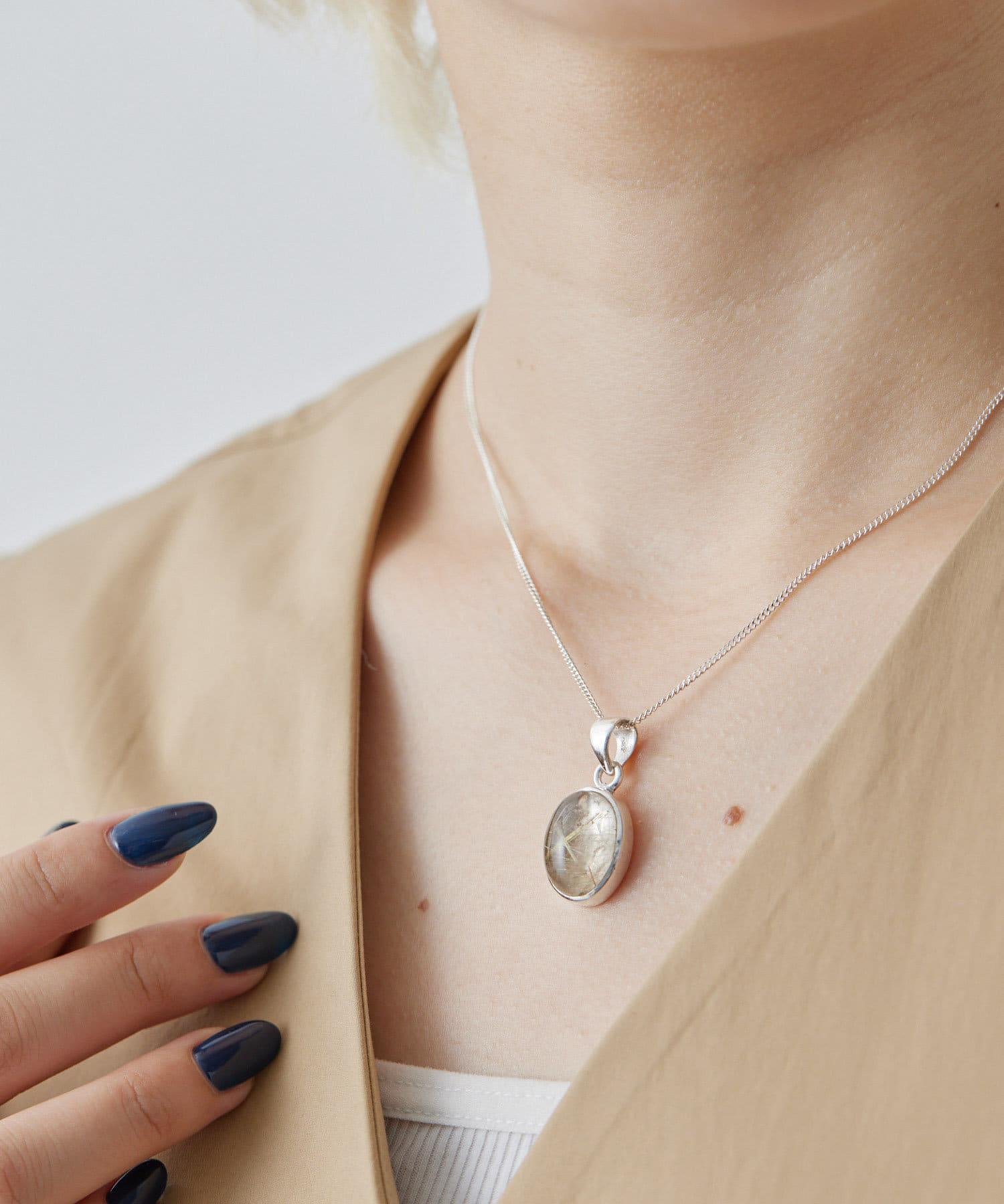 天然材料凹凸不平的外觀和極光般的閃耀讓項鍊顯得高貴典雅。