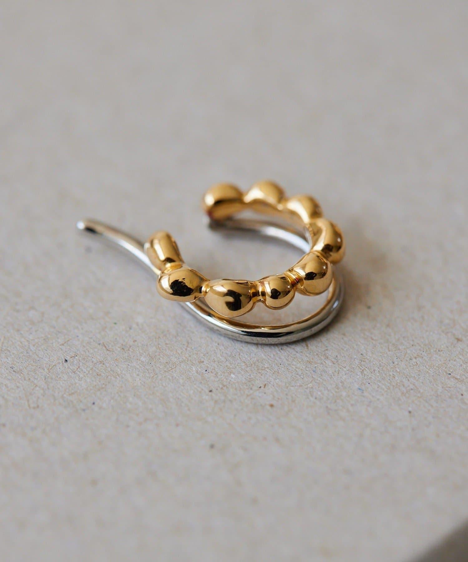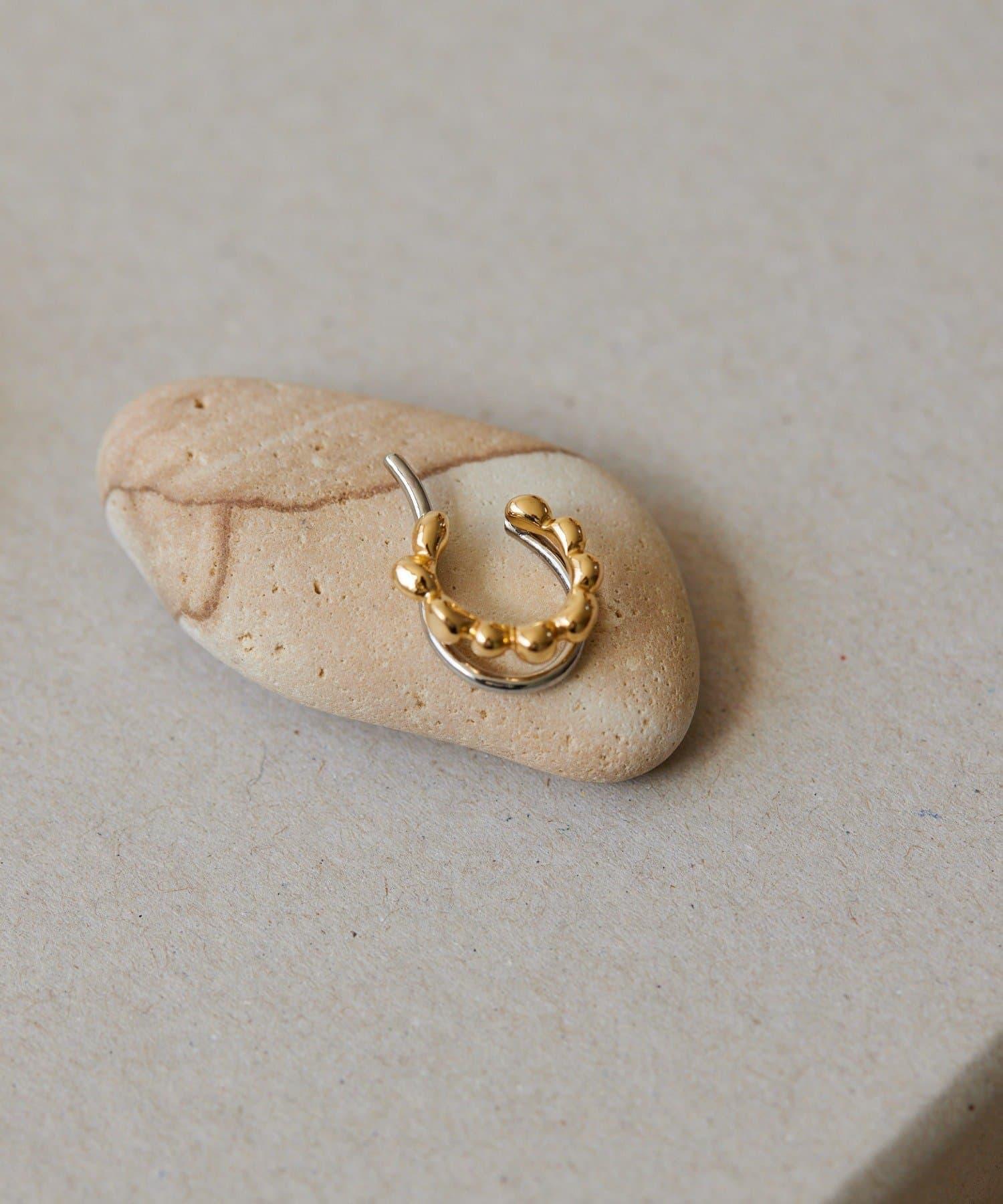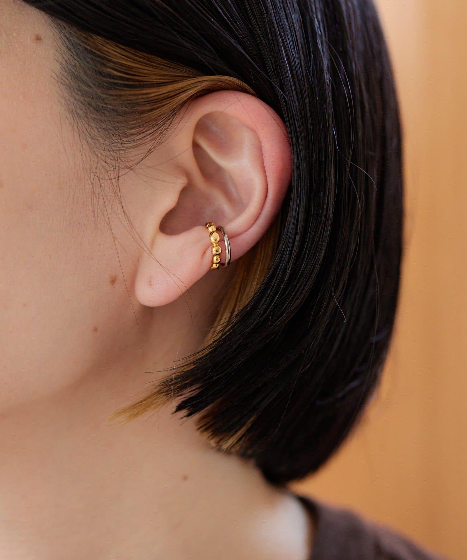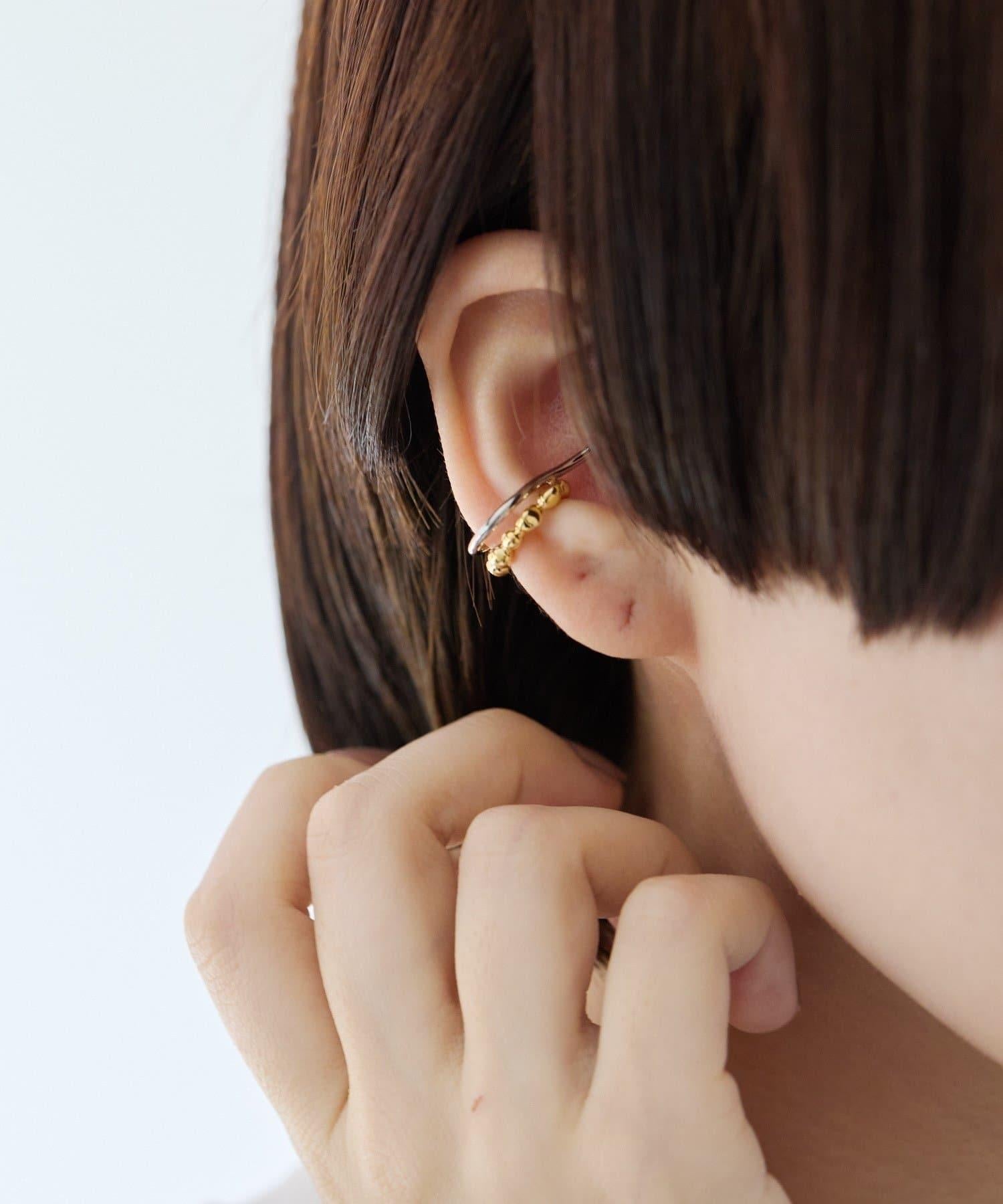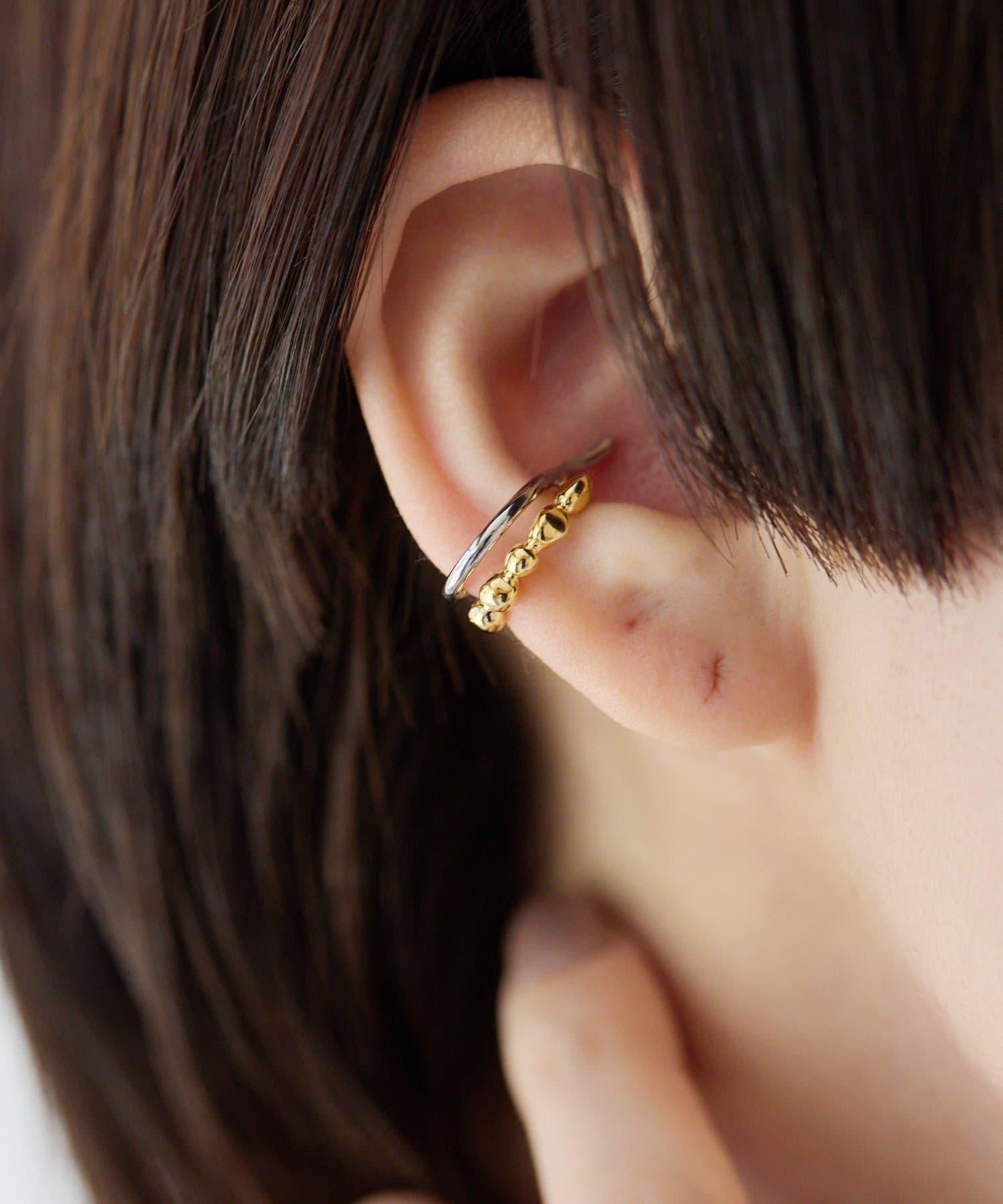 耳罩由兩個不同氛圍的耳環組成。神秘的造型營造出兩個耳環的錯覺。