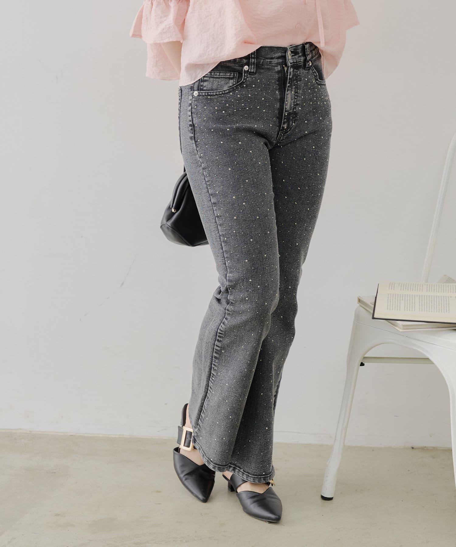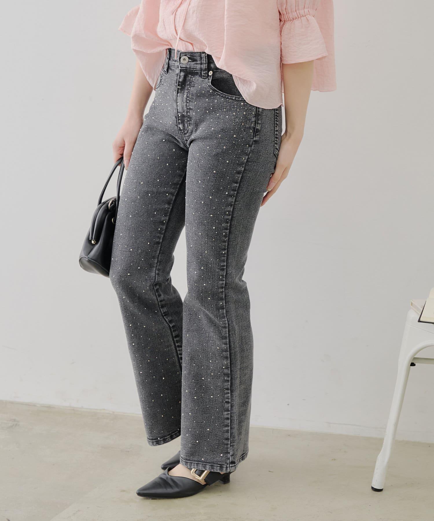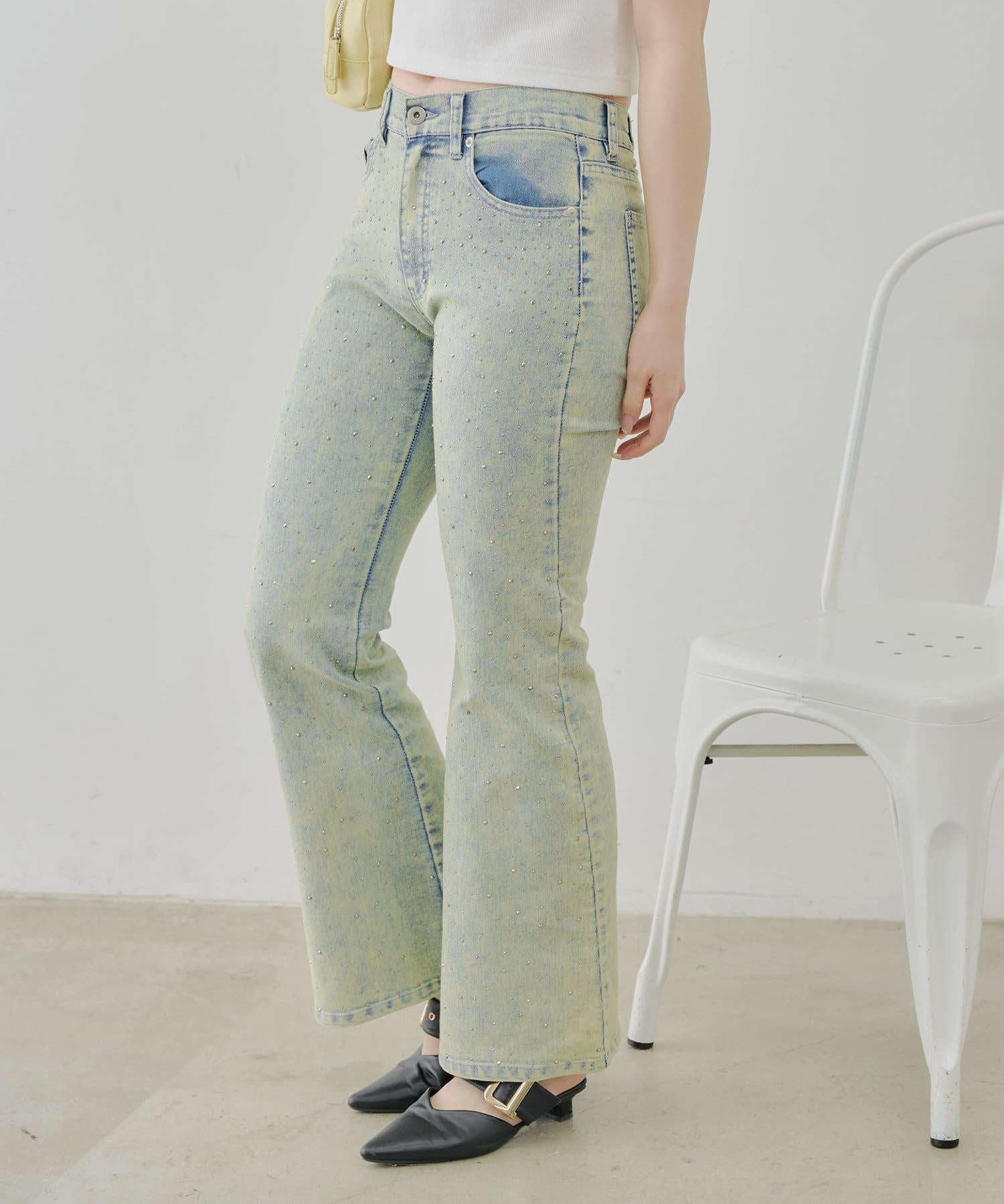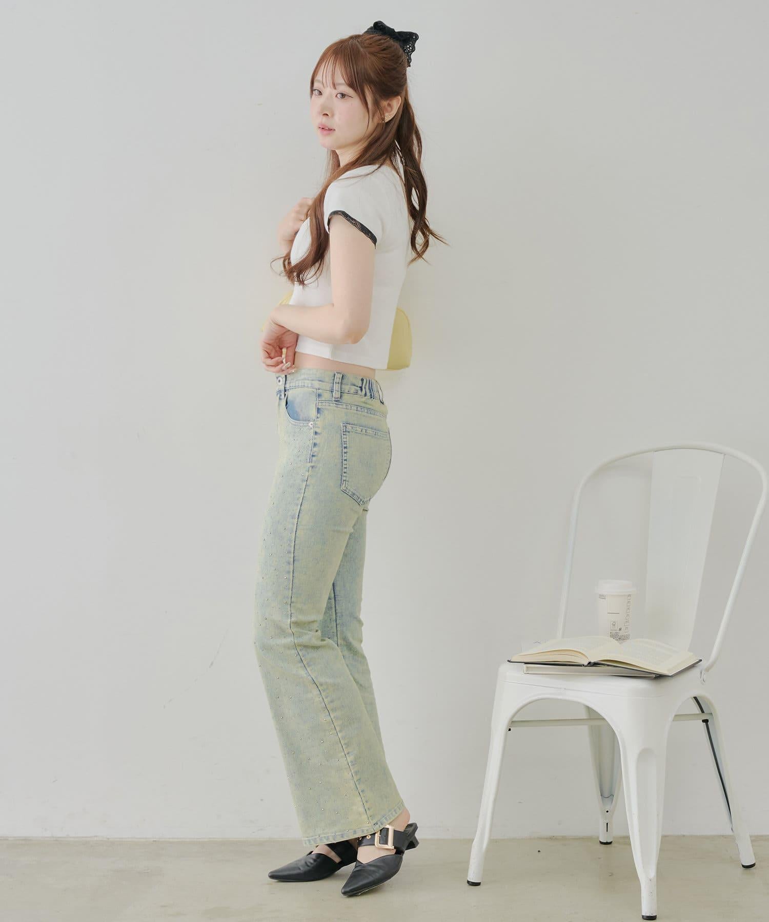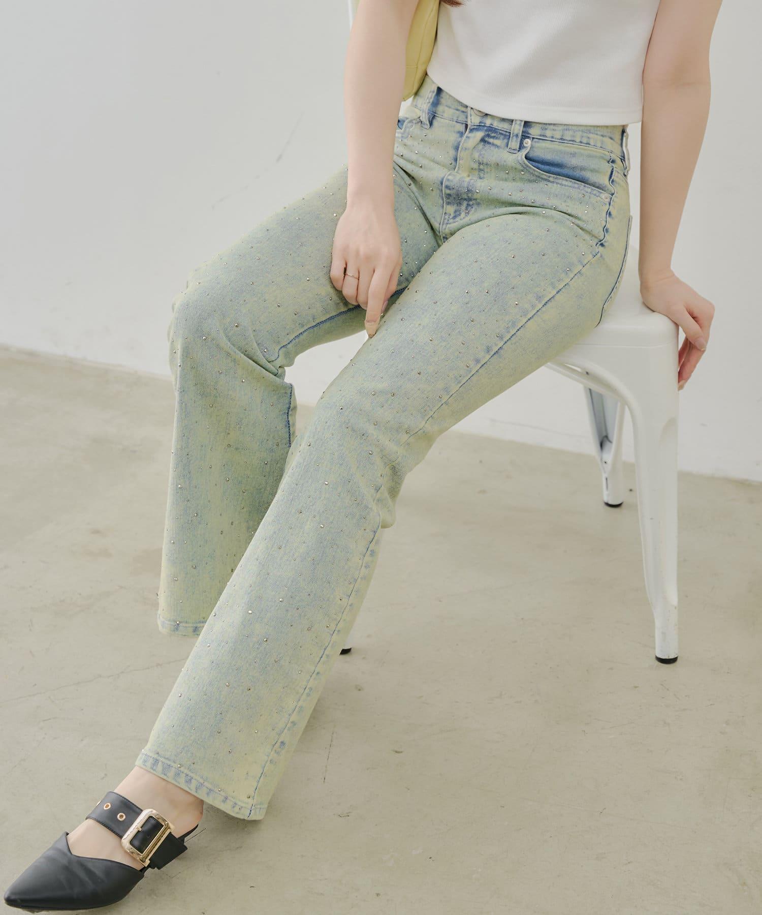 【@_chipi2x精選】鑲有石頭的牛仔闊腿褲