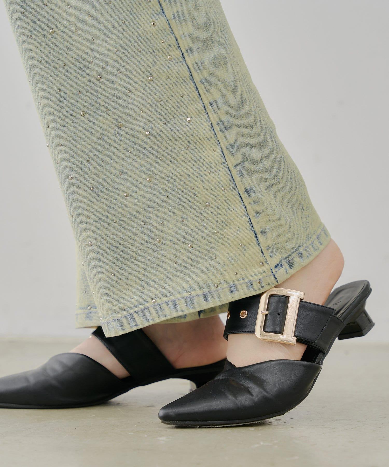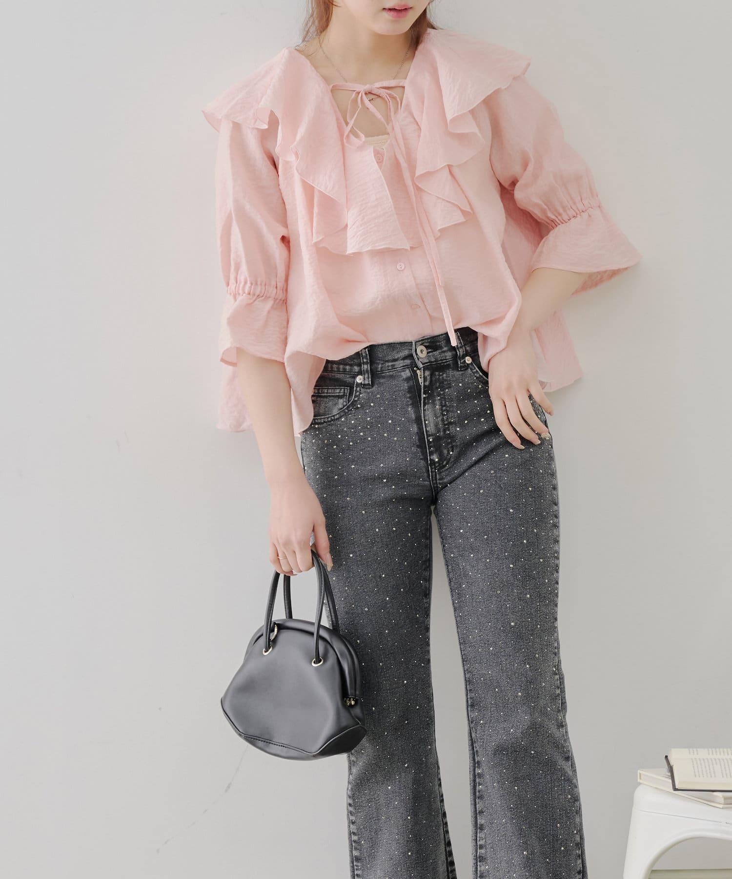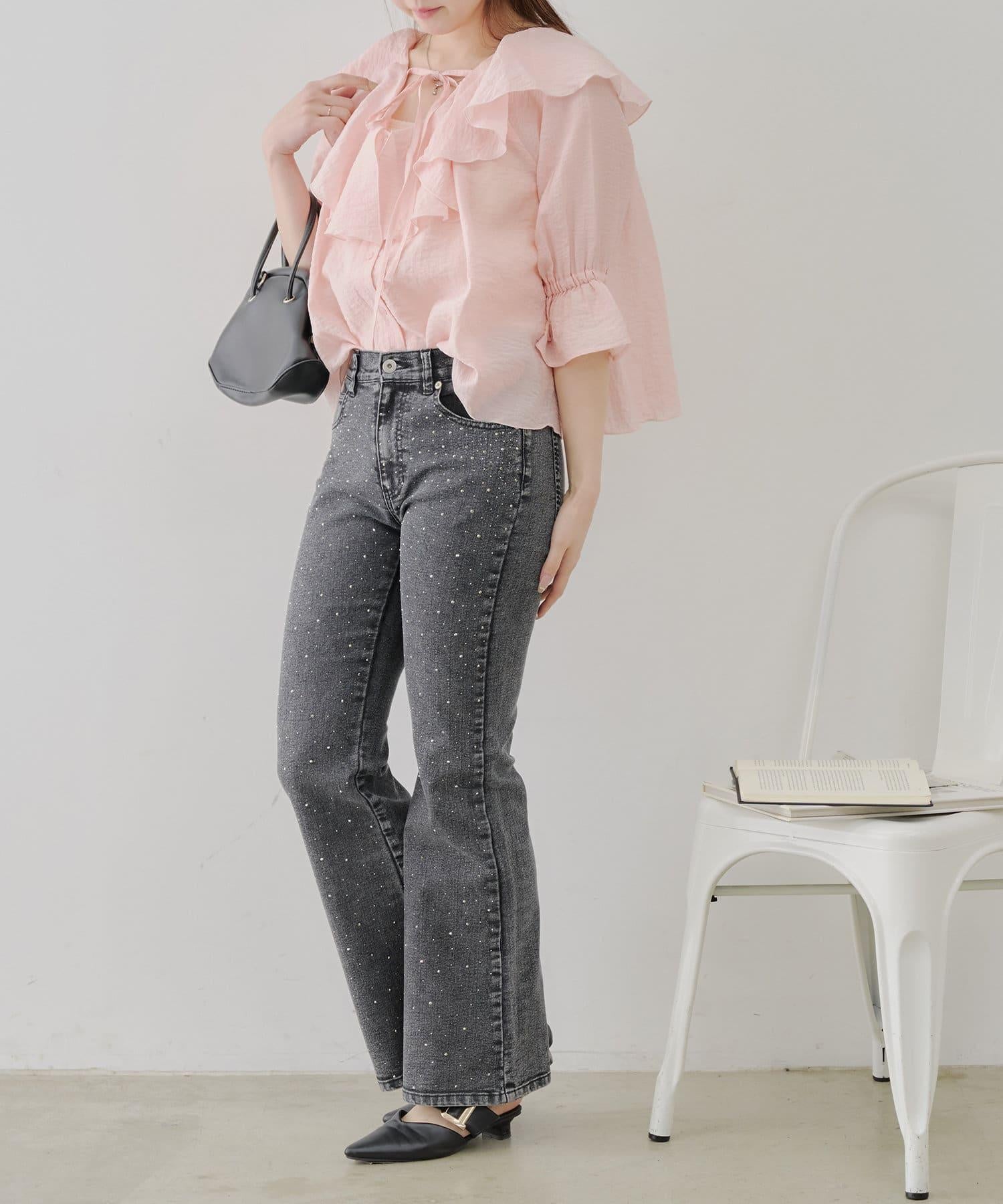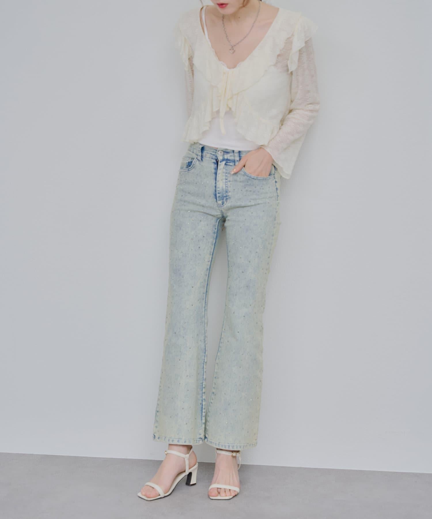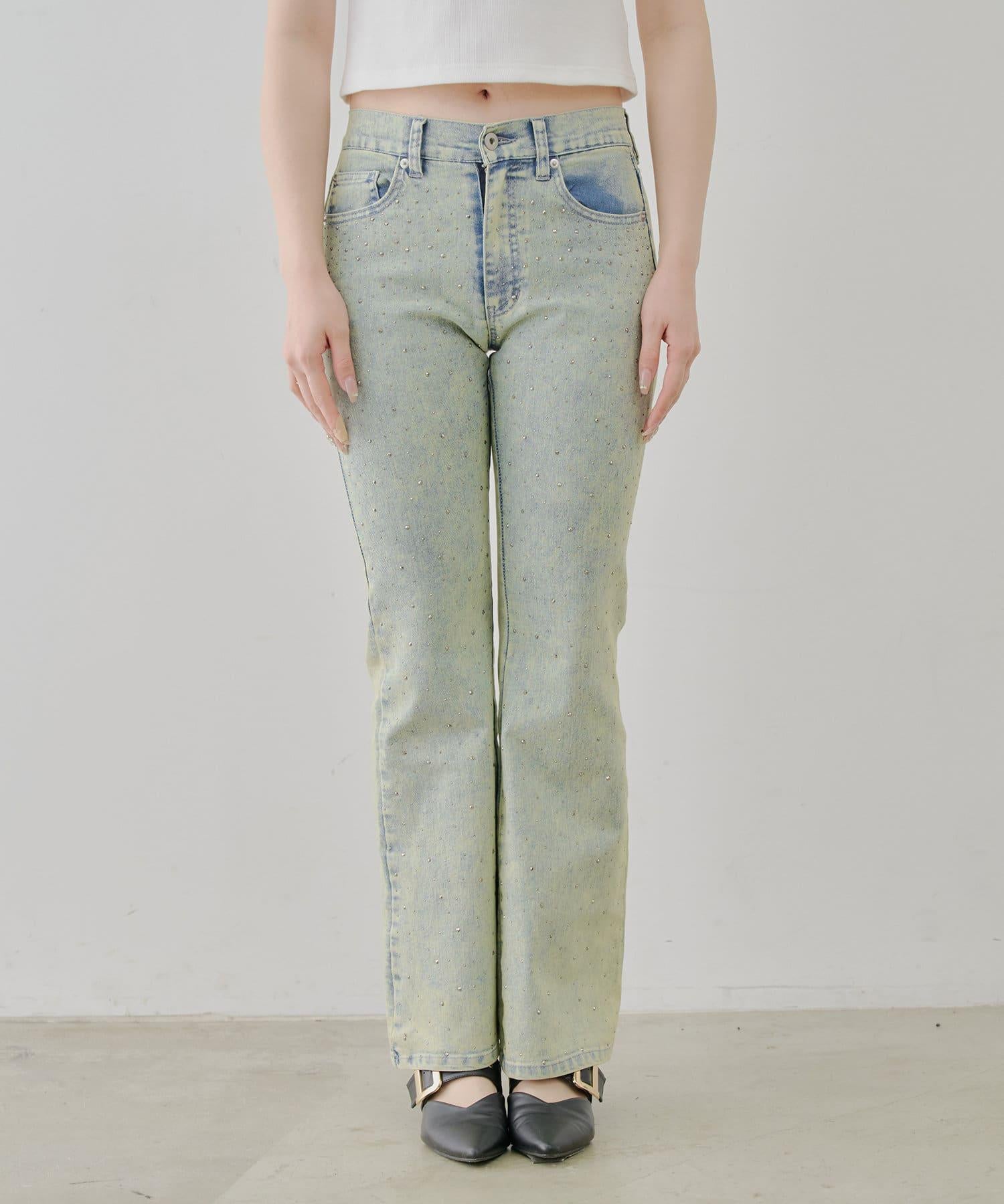 【@_chipi2x精選】鑲有石頭的牛仔闊腿褲