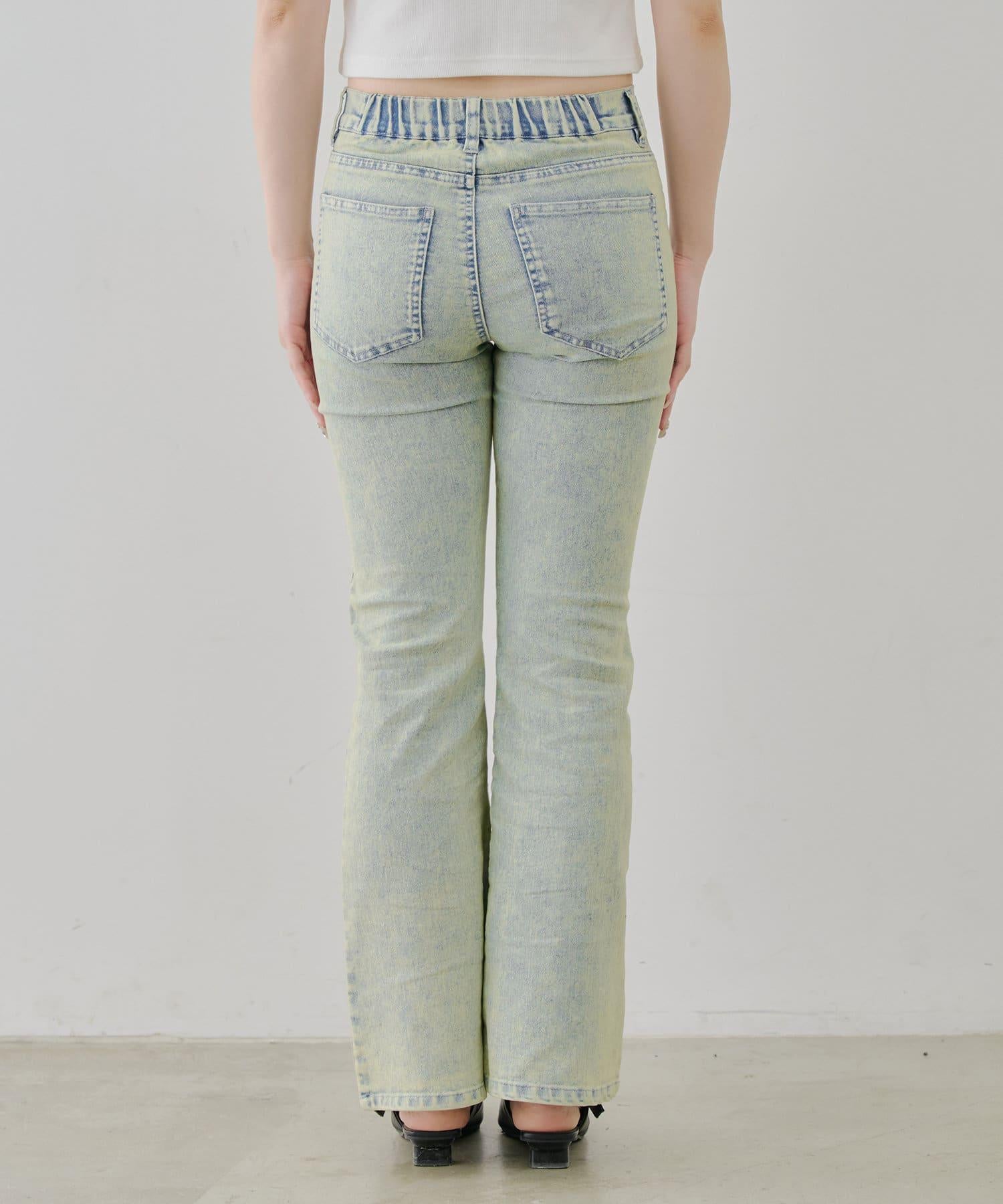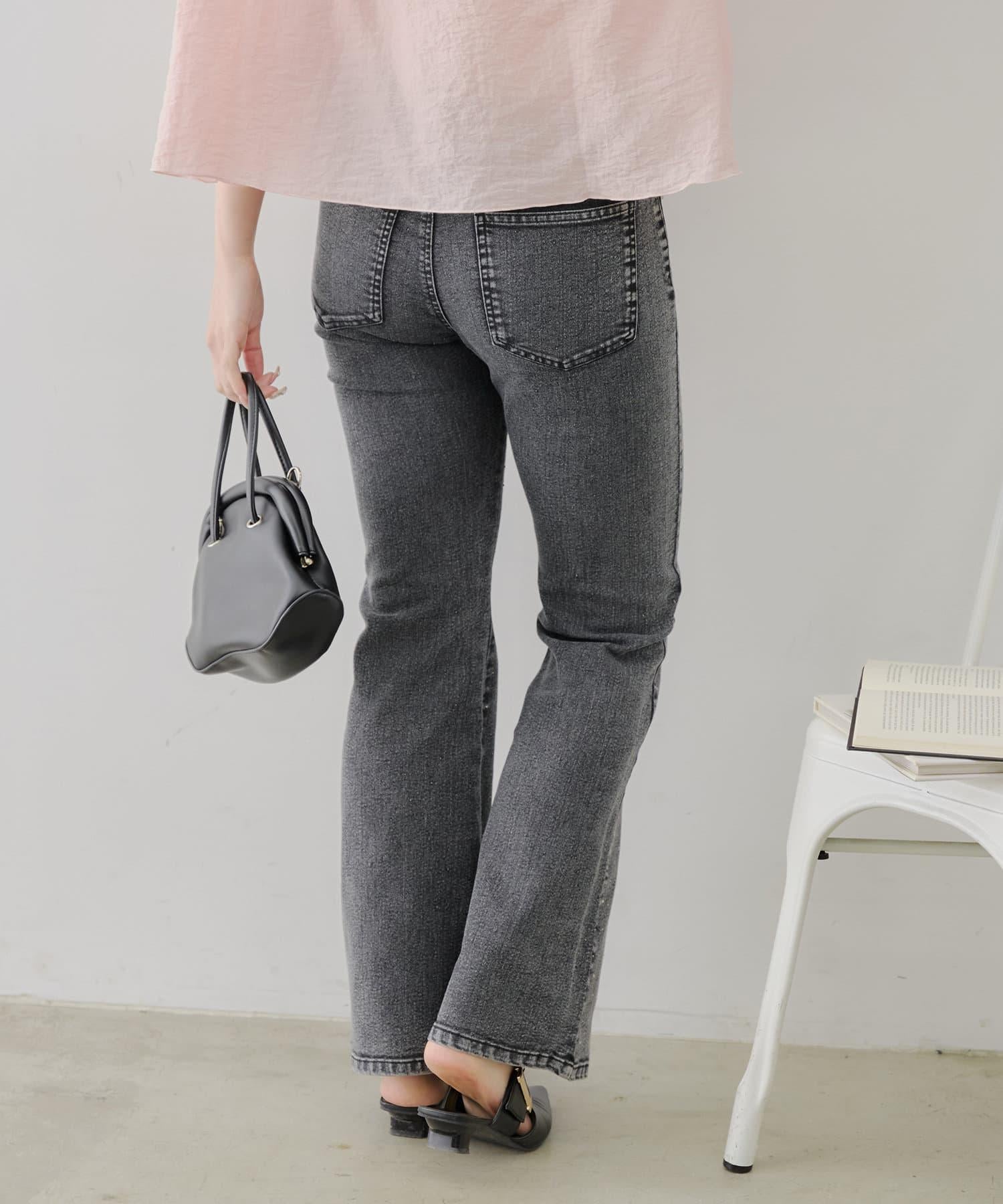牛仔長褲採用適度的喇叭廓形,使腿部線條更加優美。