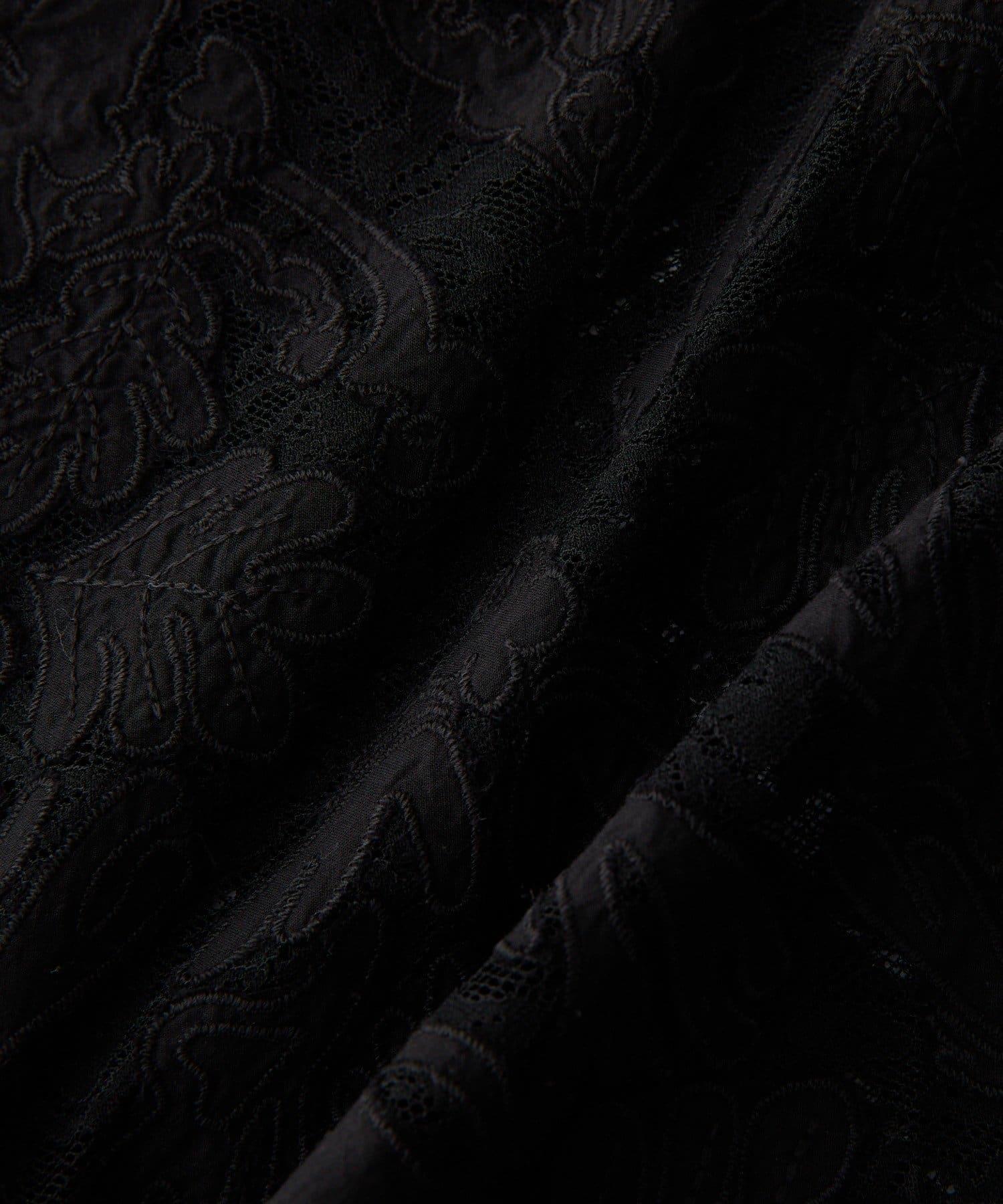 原創面料,使用棉質草坪在蕾絲底布上進行鏤空刺繡。