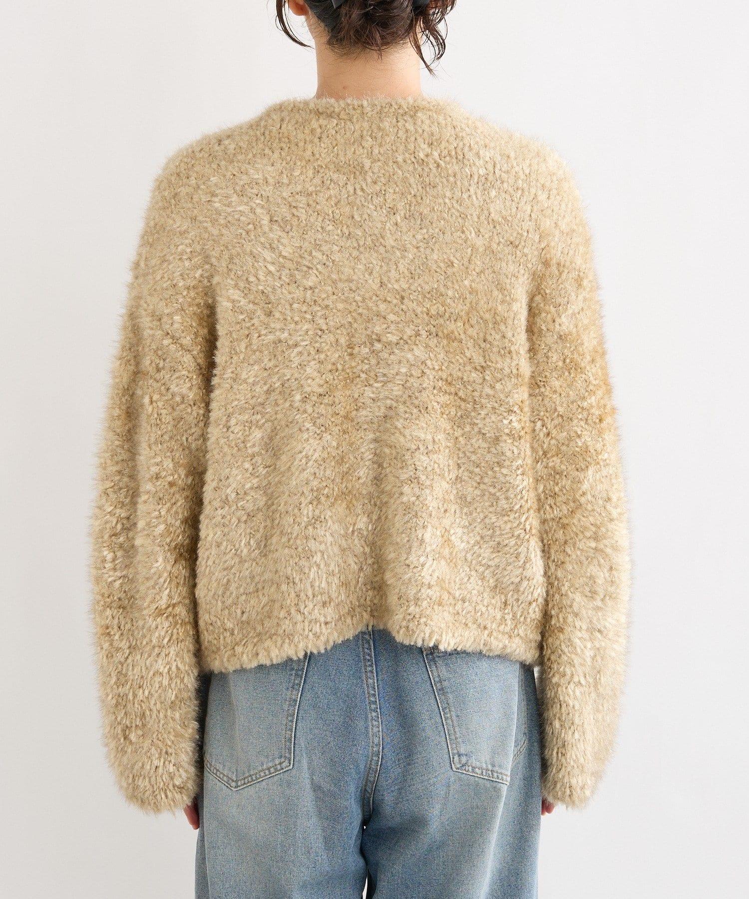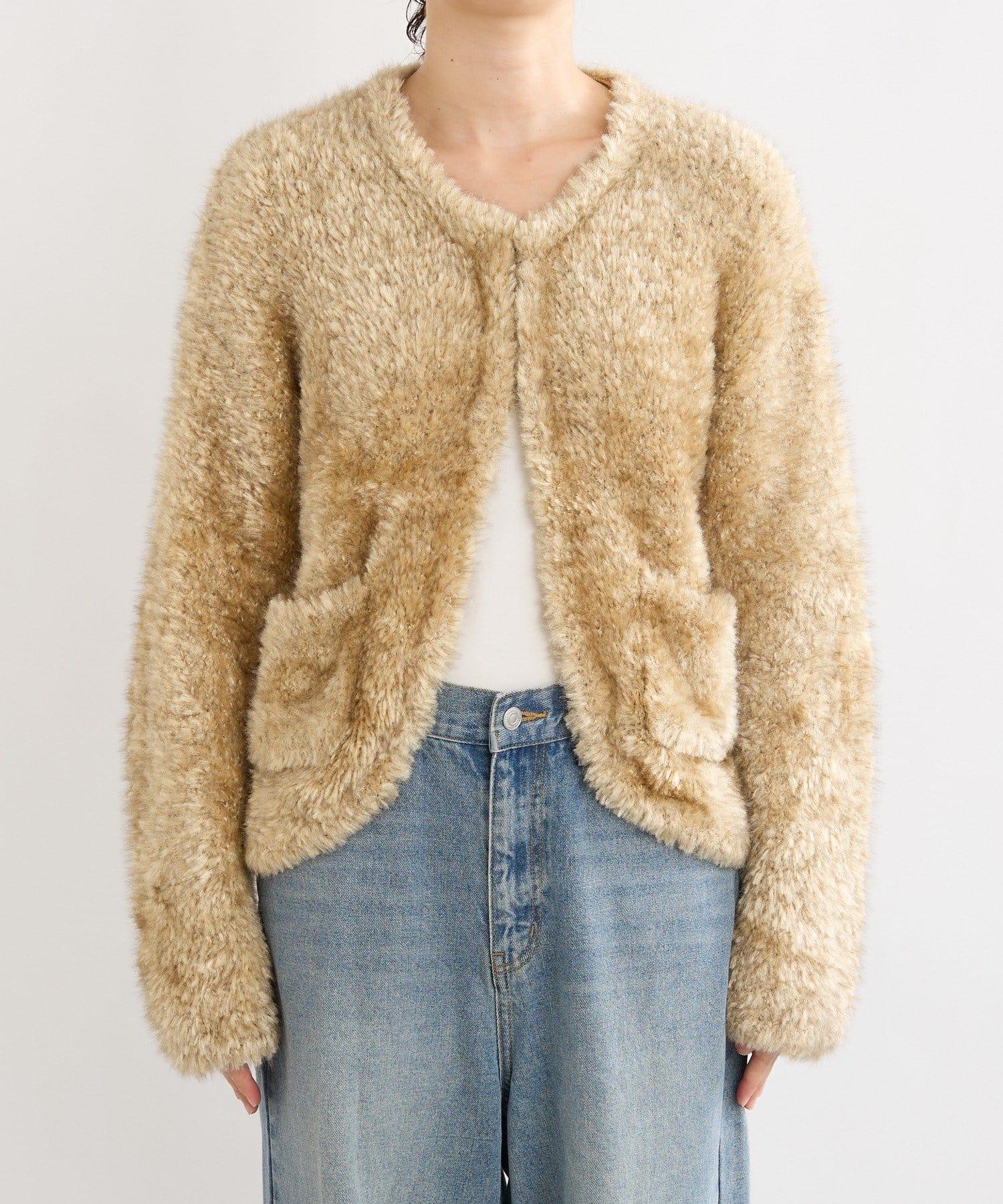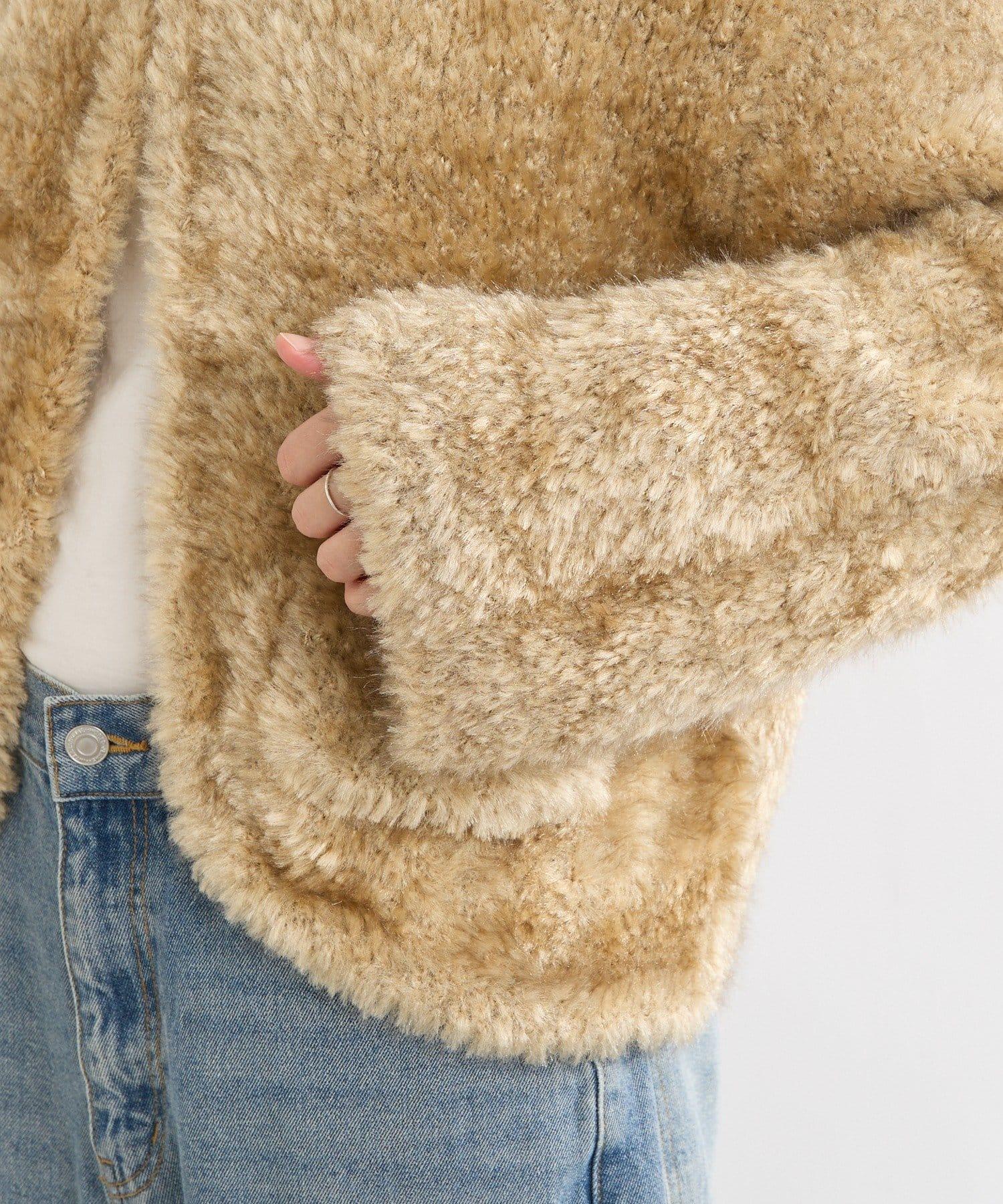 一款具有皮草外套質感的針織外套。