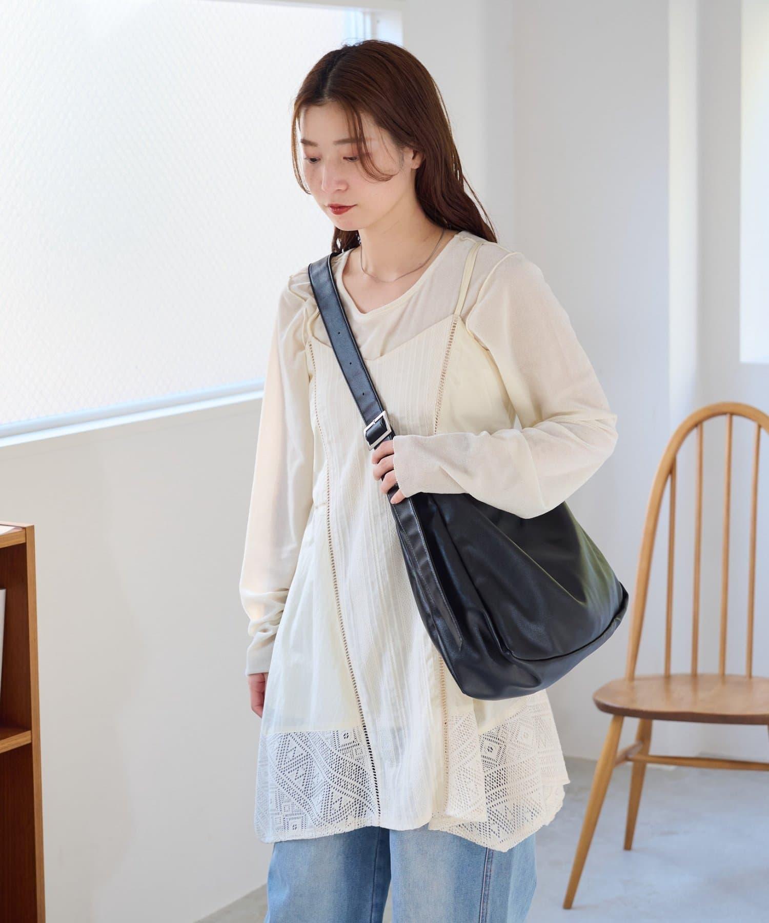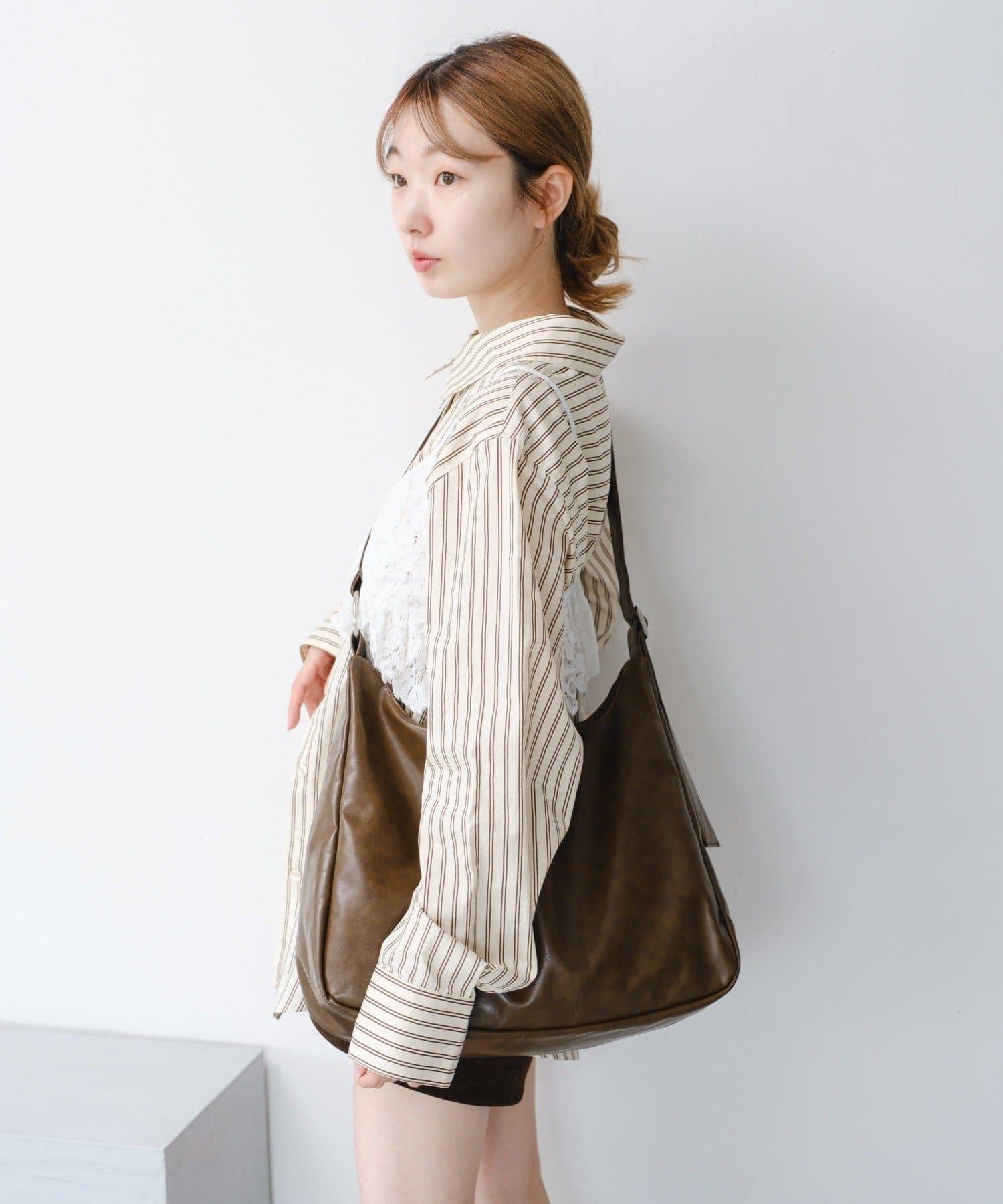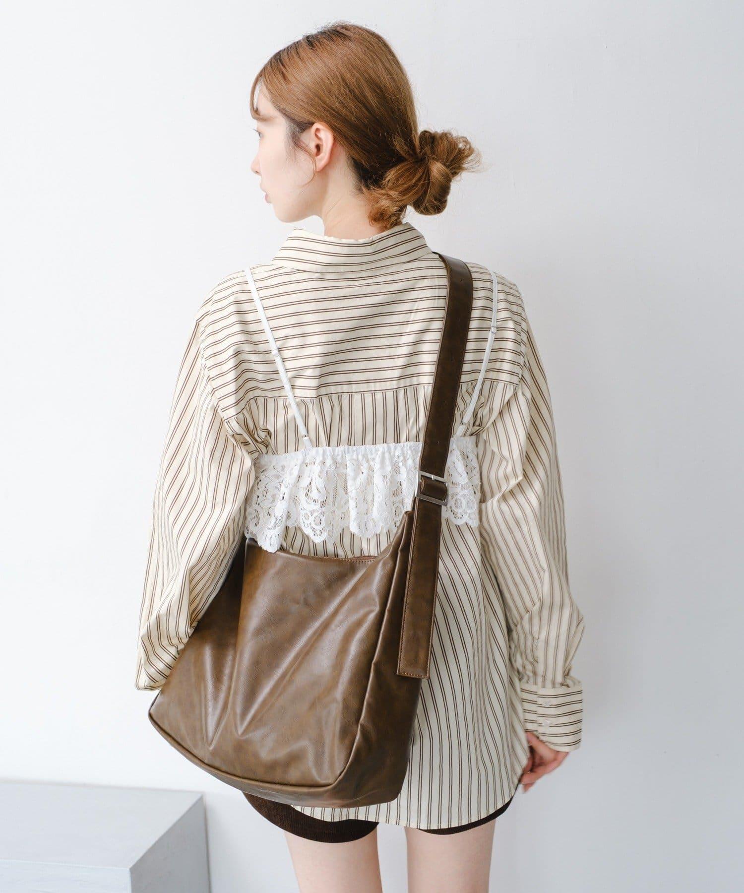 這是一款仿皮單肩包,可根據個人喜好調節長度,從斜挎到單肩都可以。