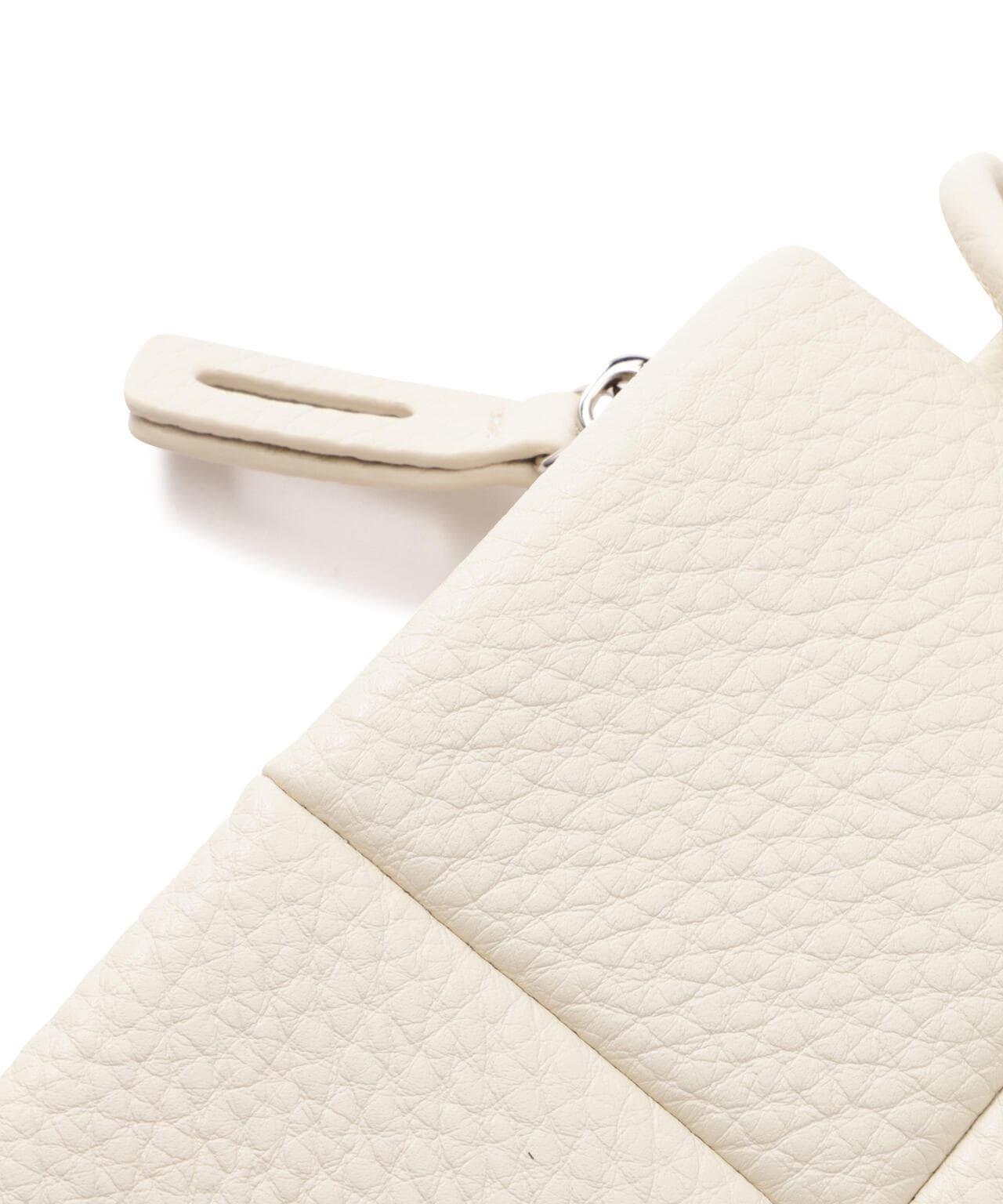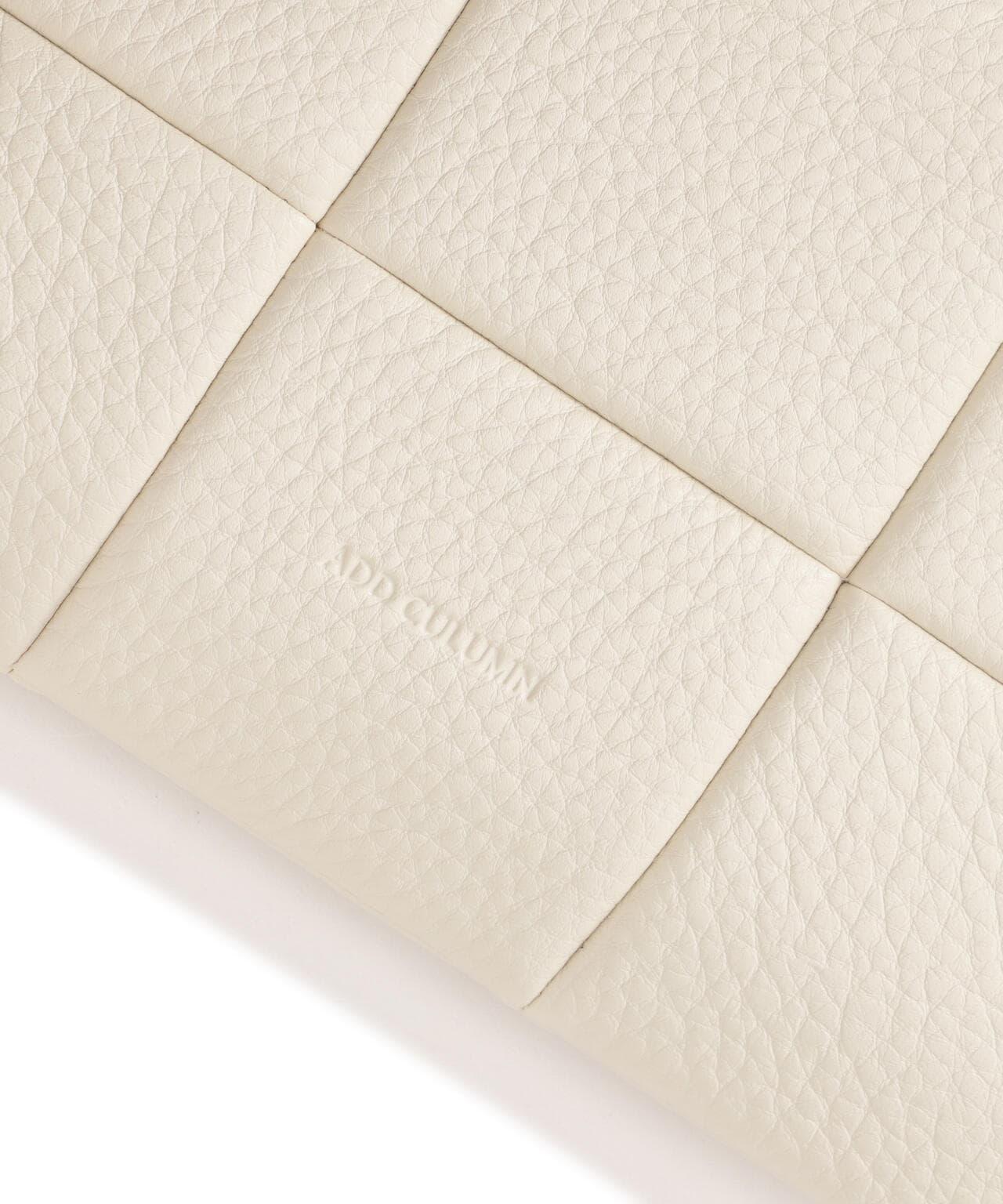 PUFF 系列是 ADD CULUMN 的品牌標誌之一,其 "蓬鬆 "質感和格子圖案由精心挑選的核心材料製成。PUFF - MULTI SHLD E 是一款融合了包袋和錢包元素的概念產品。內部設有紙幣、硬幣和卡片隔層,還可放置智能手機。肩帶可以取下作為錢包使用,也可以原封不動地放在包裡。材質為柔軟的粒麵皮。袋口:1 個隔層