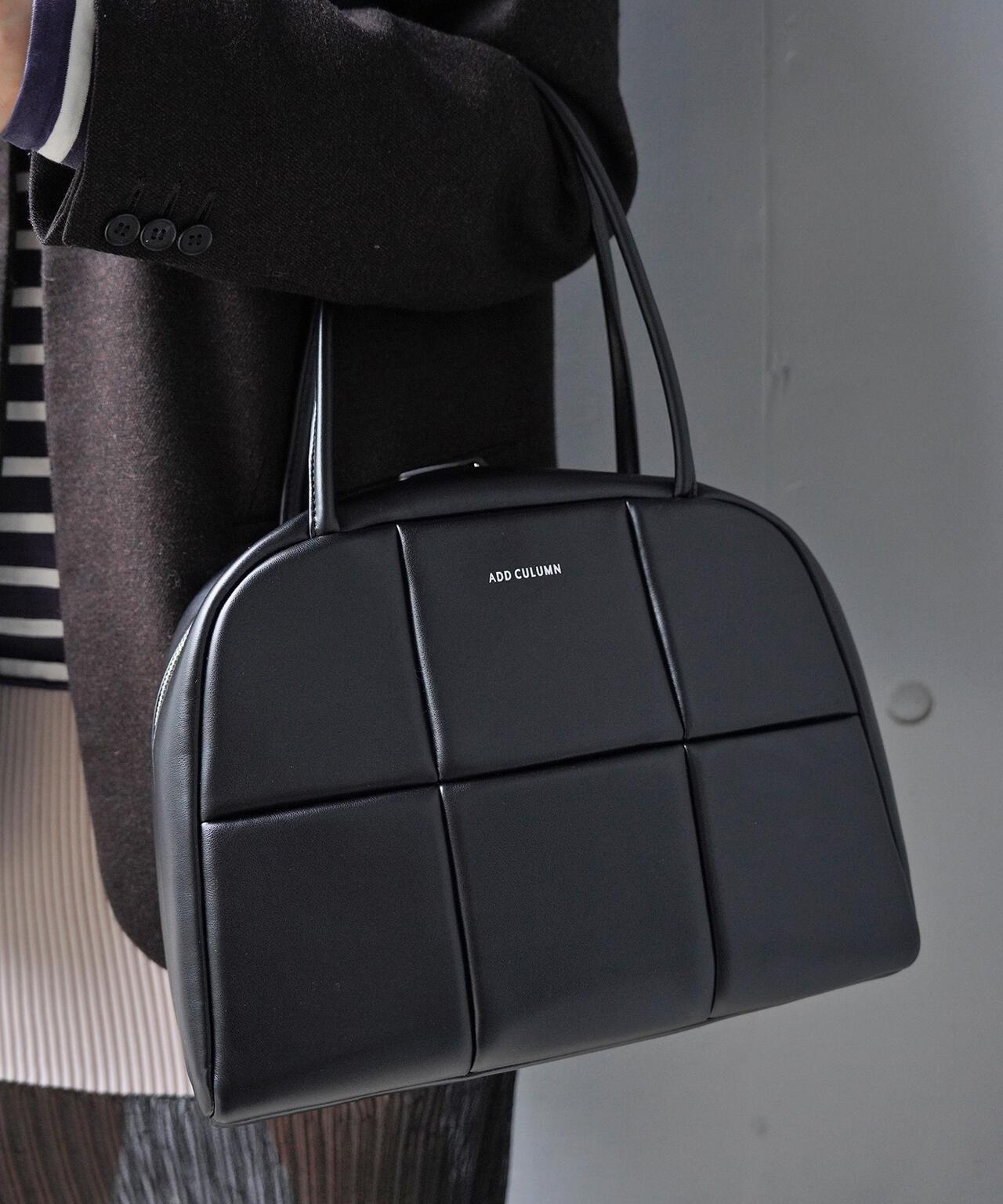 作為 ADD CULUMN 的品牌標誌之一,"PUFF "是一個以蓬鬆材料和細節的格子圖案為特色的系列。PUFF BOWLING M 是一款布加迪保齡球包造型的經典手提包。