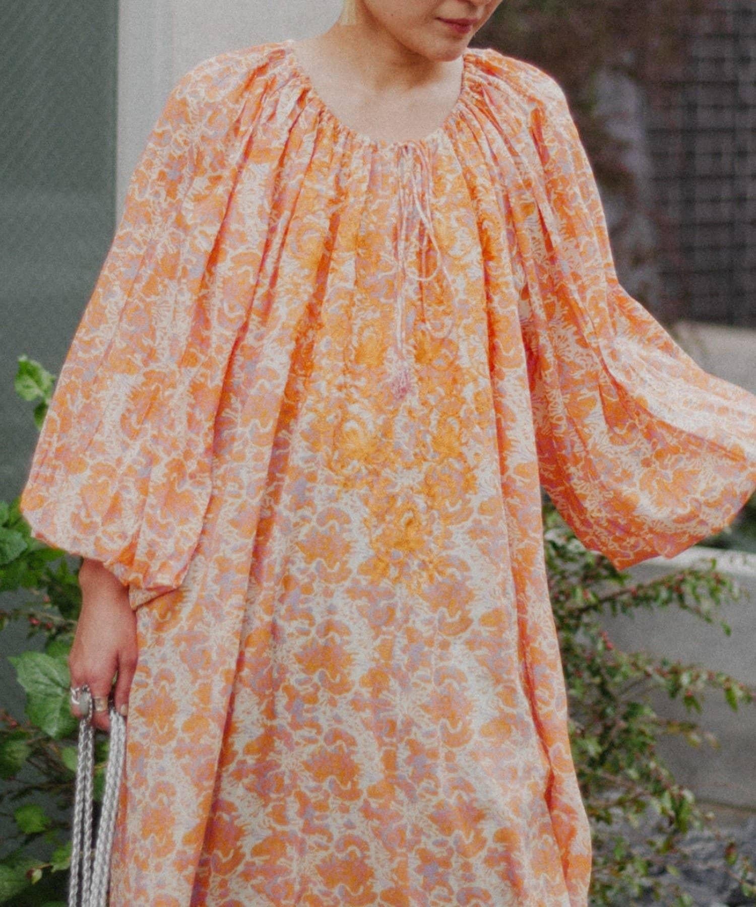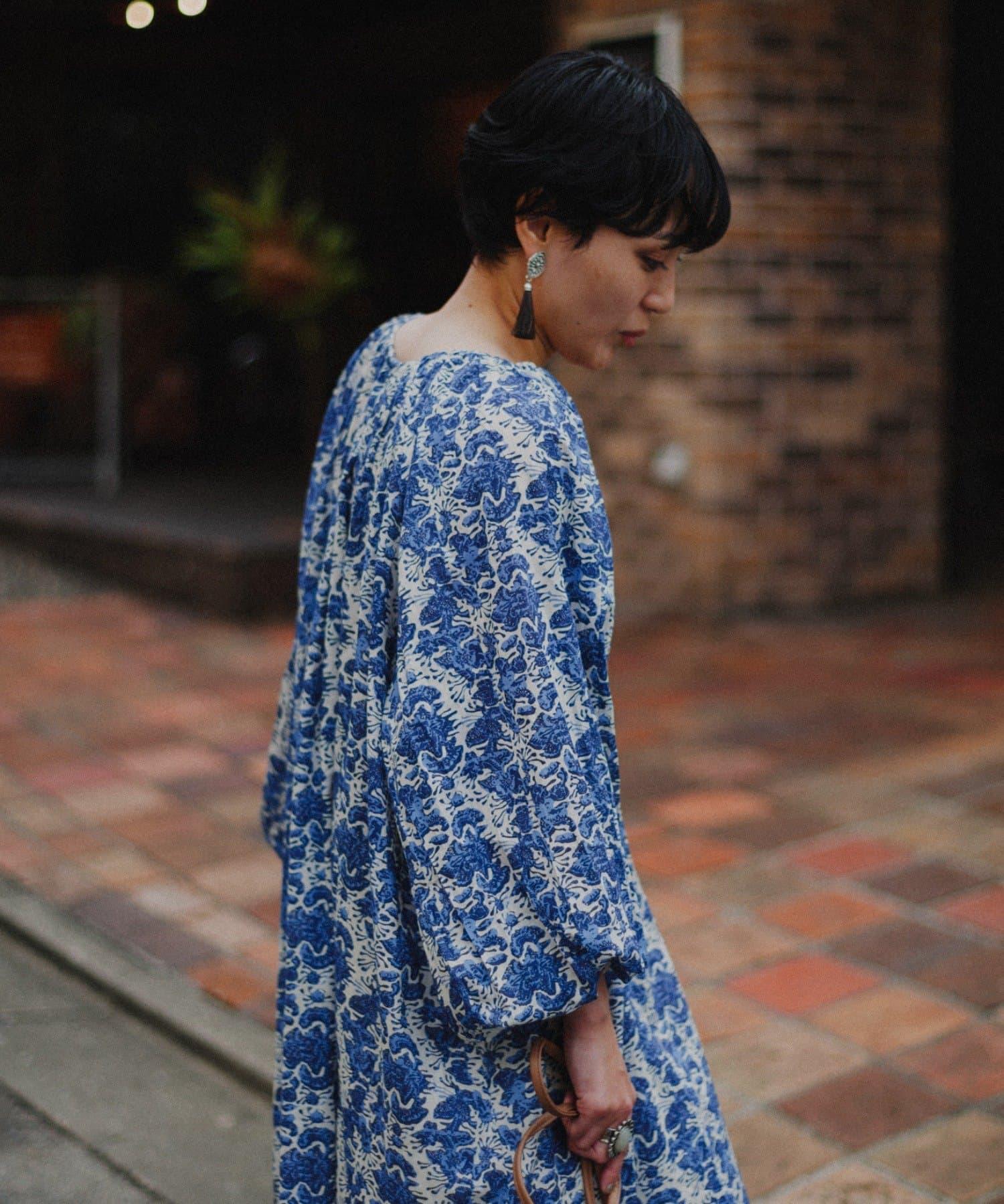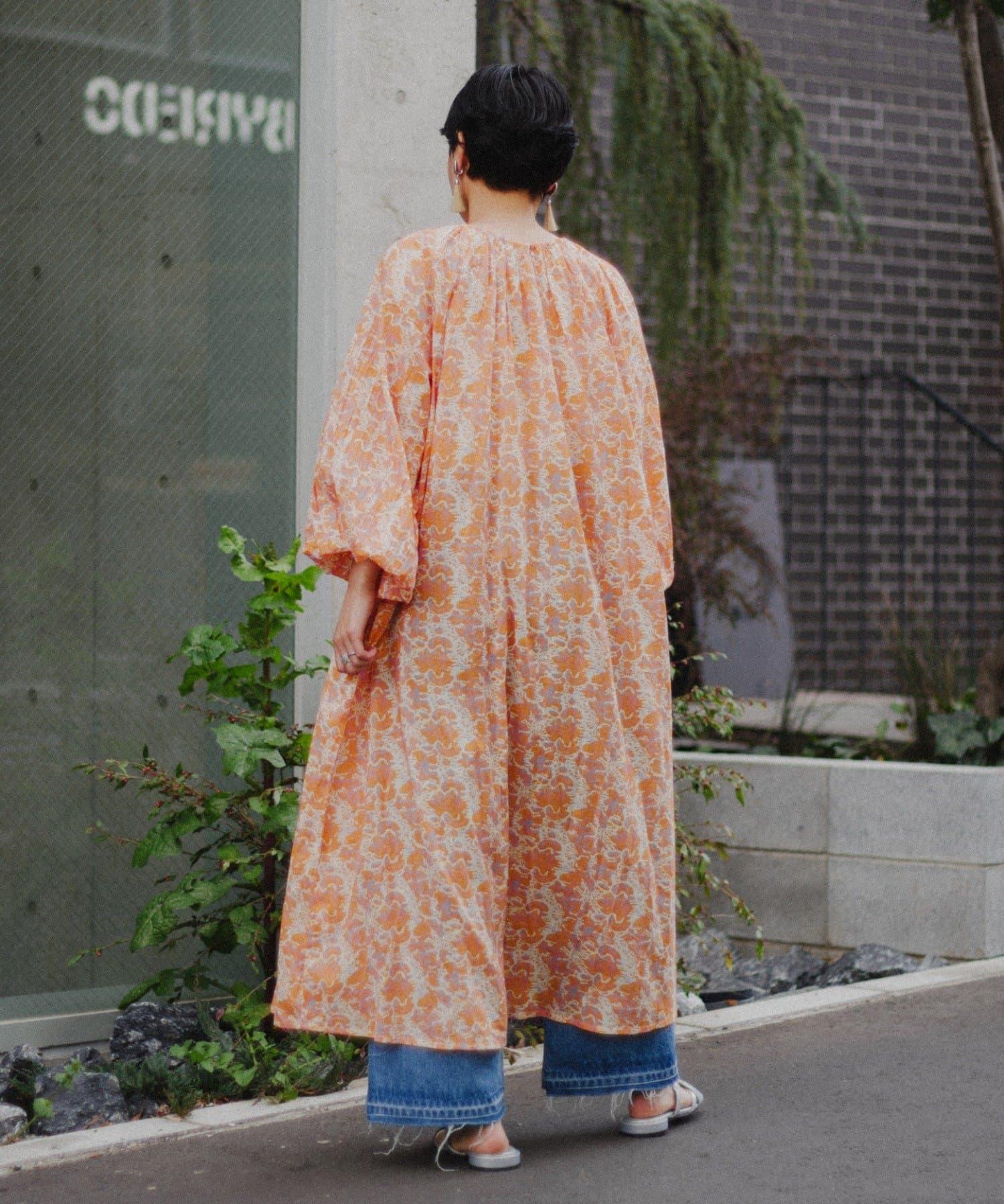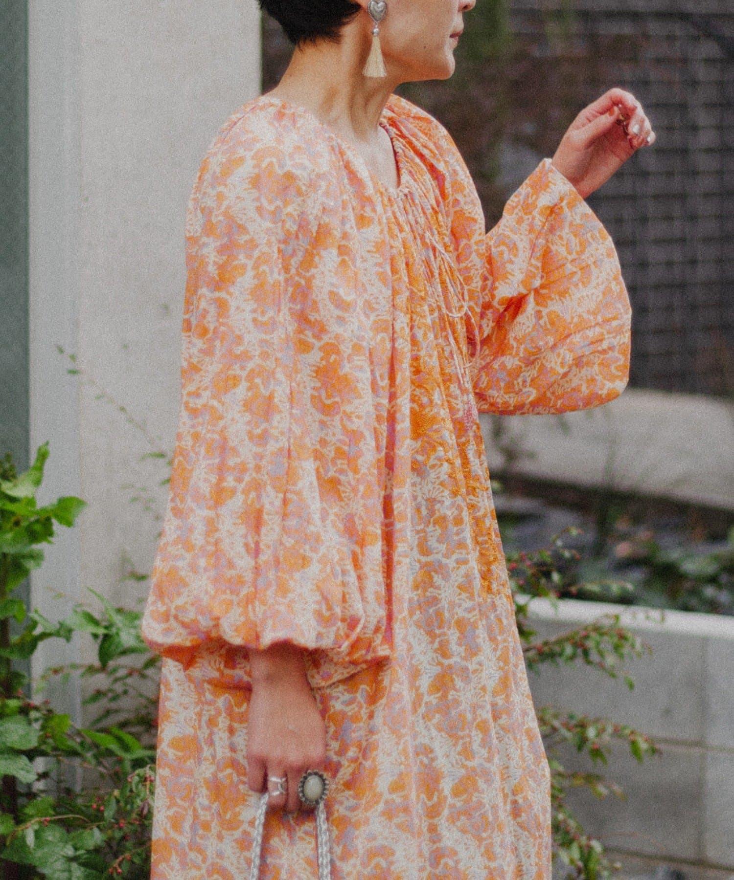 復古風格的花朵圖案和優雅細節。精緻平衡的長裙。