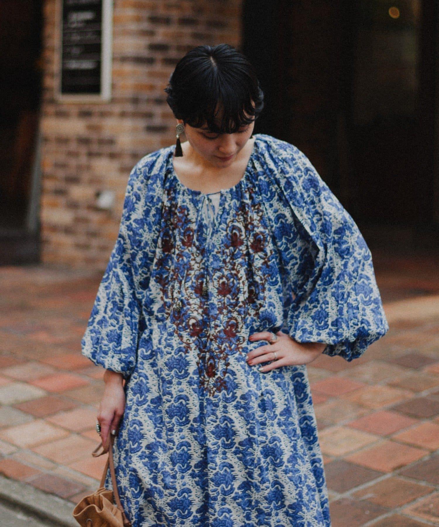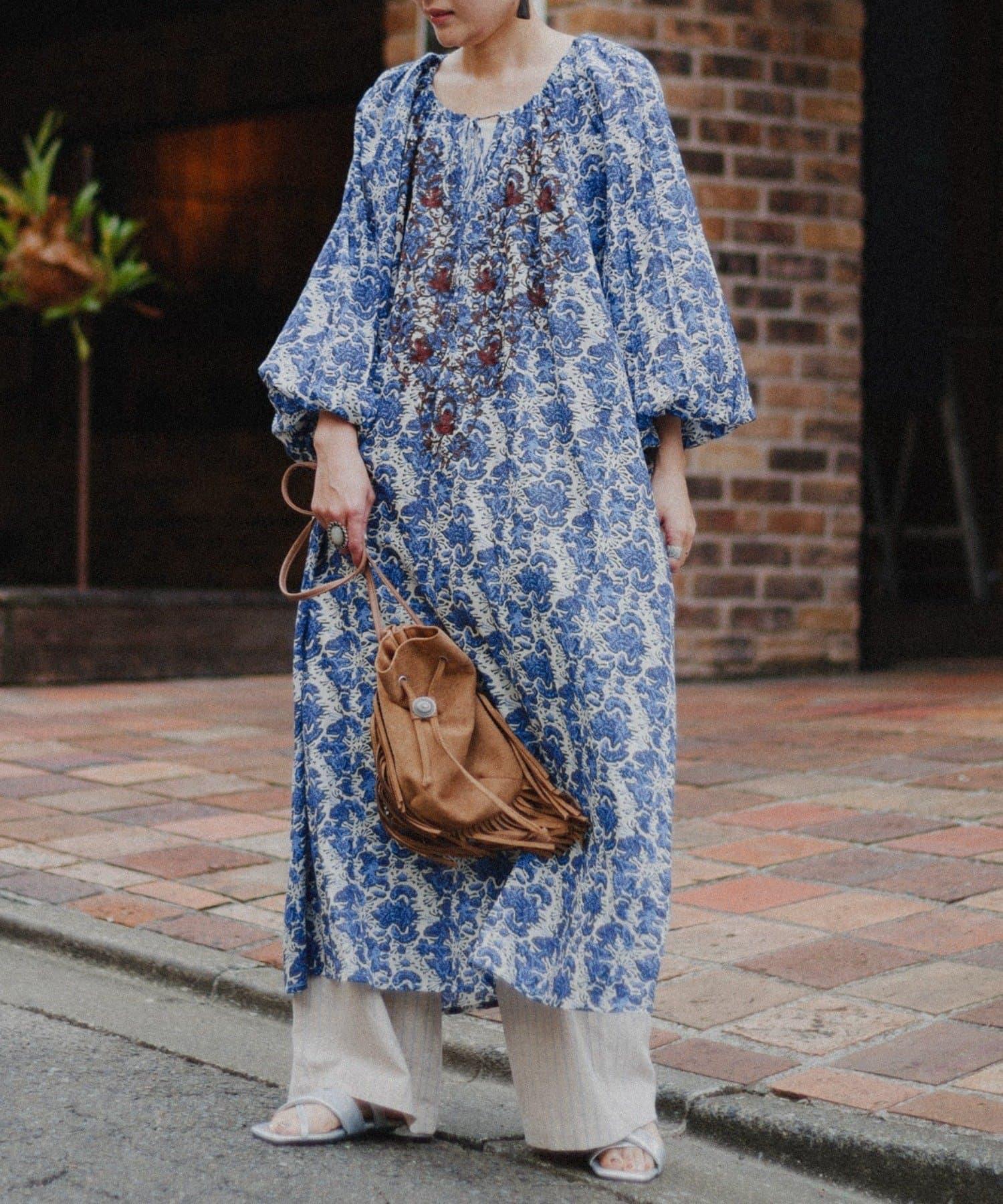 溫暖柔和的橙色印象和異域風情的藍色搭配出色的刺繡。