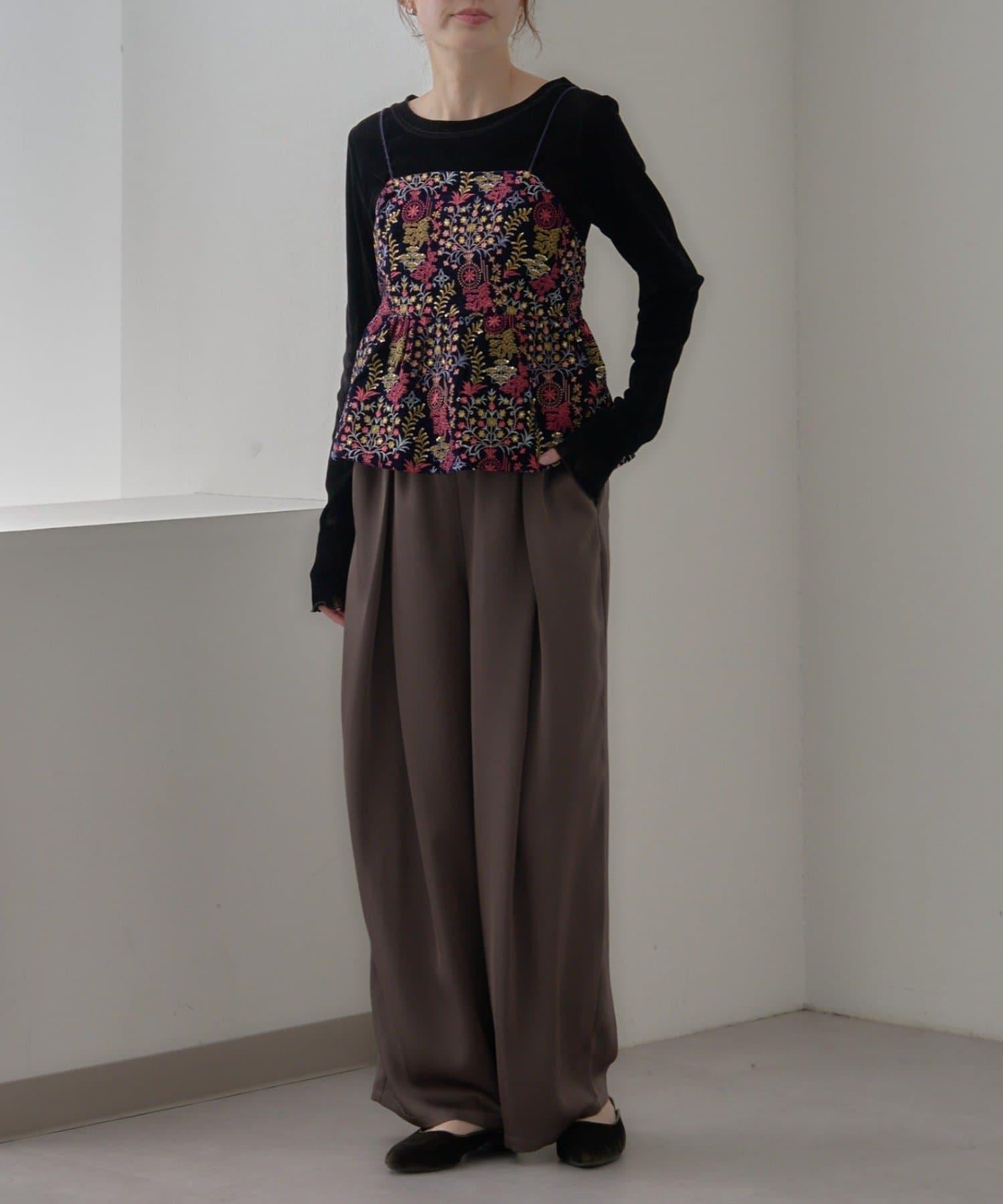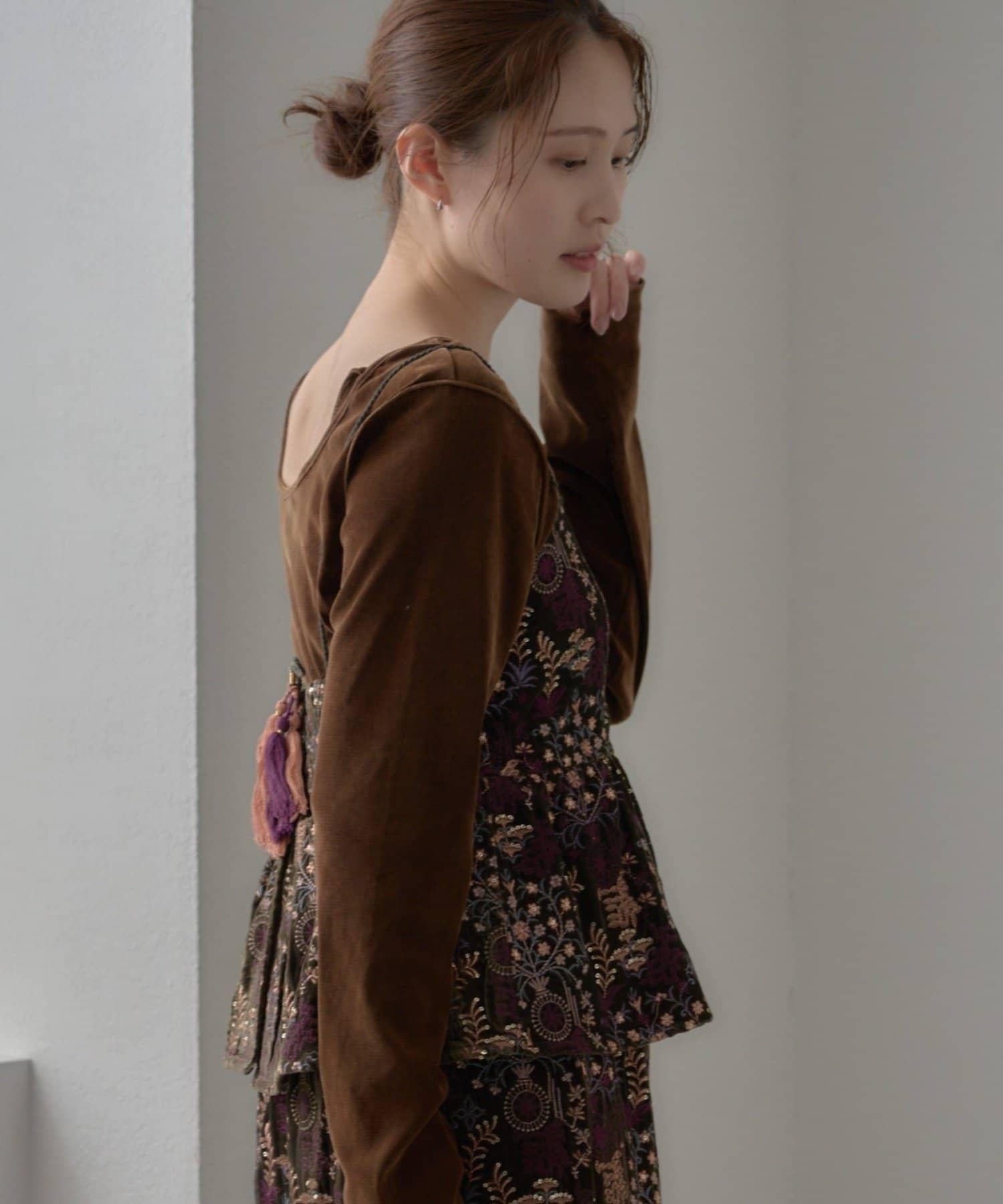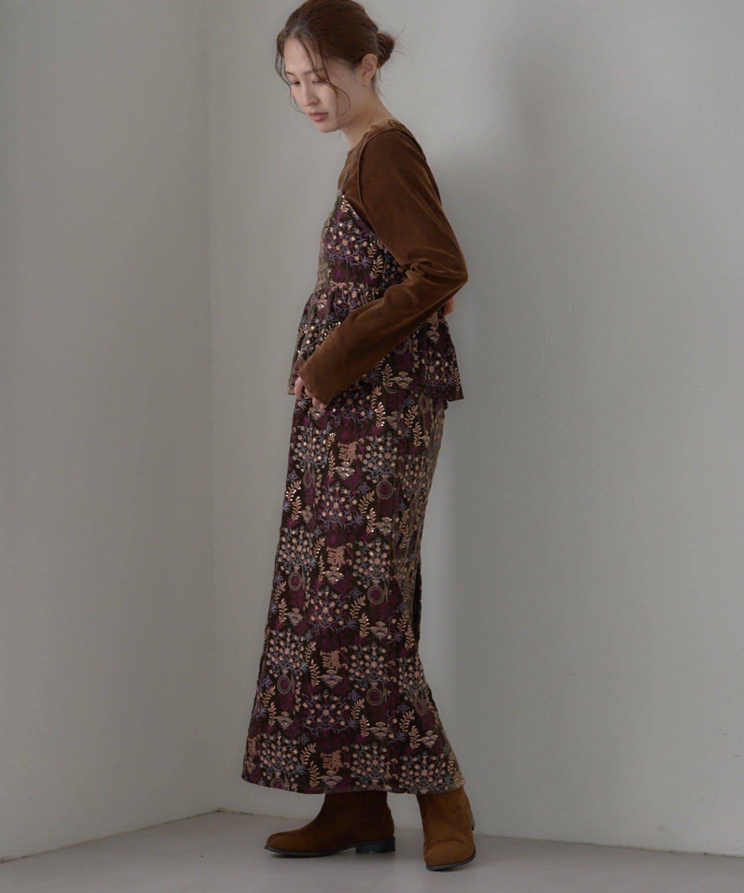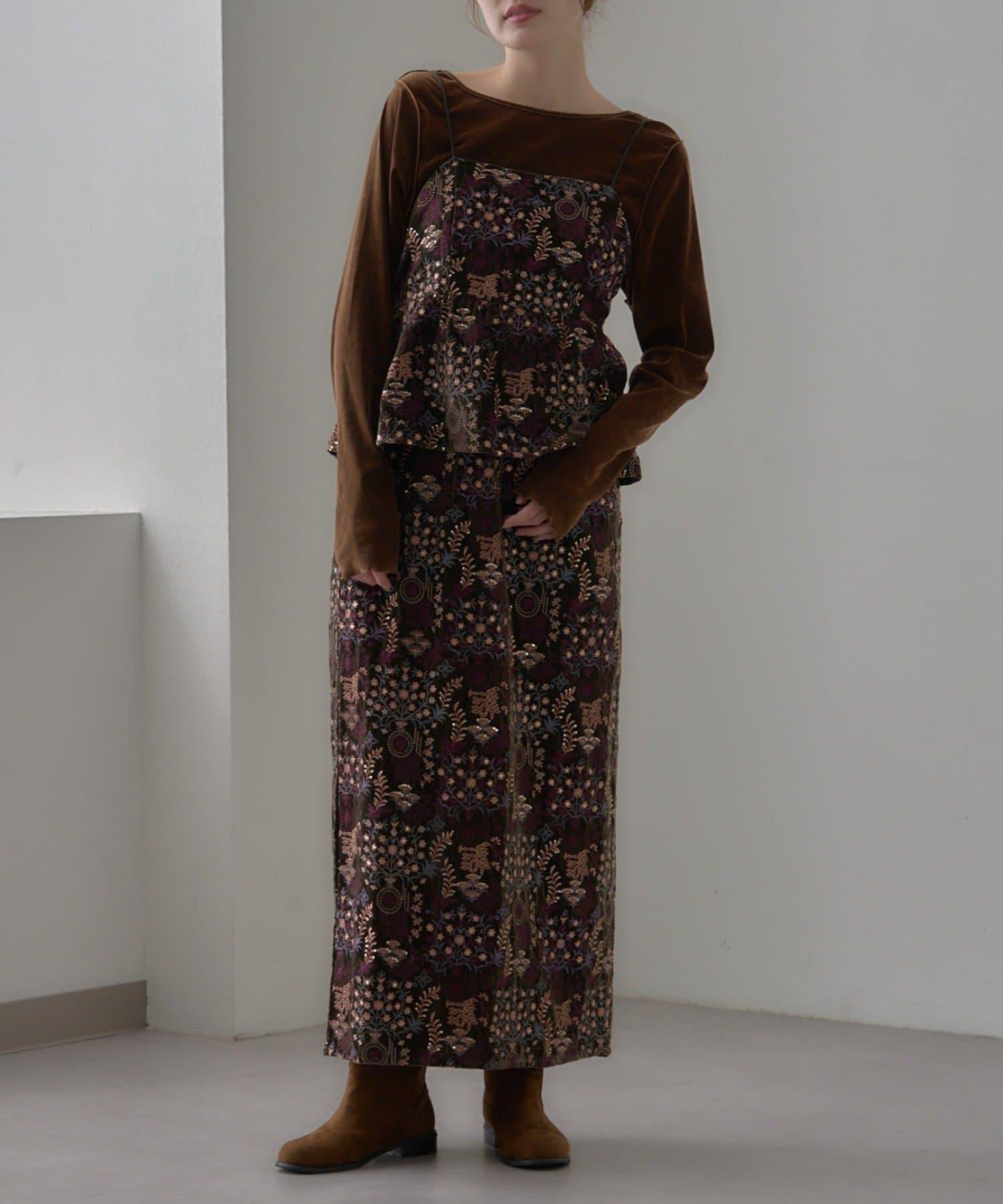 這款吊帶半身裙採用絲絨面料製成,並飾有復古刺繡,極具氣場。